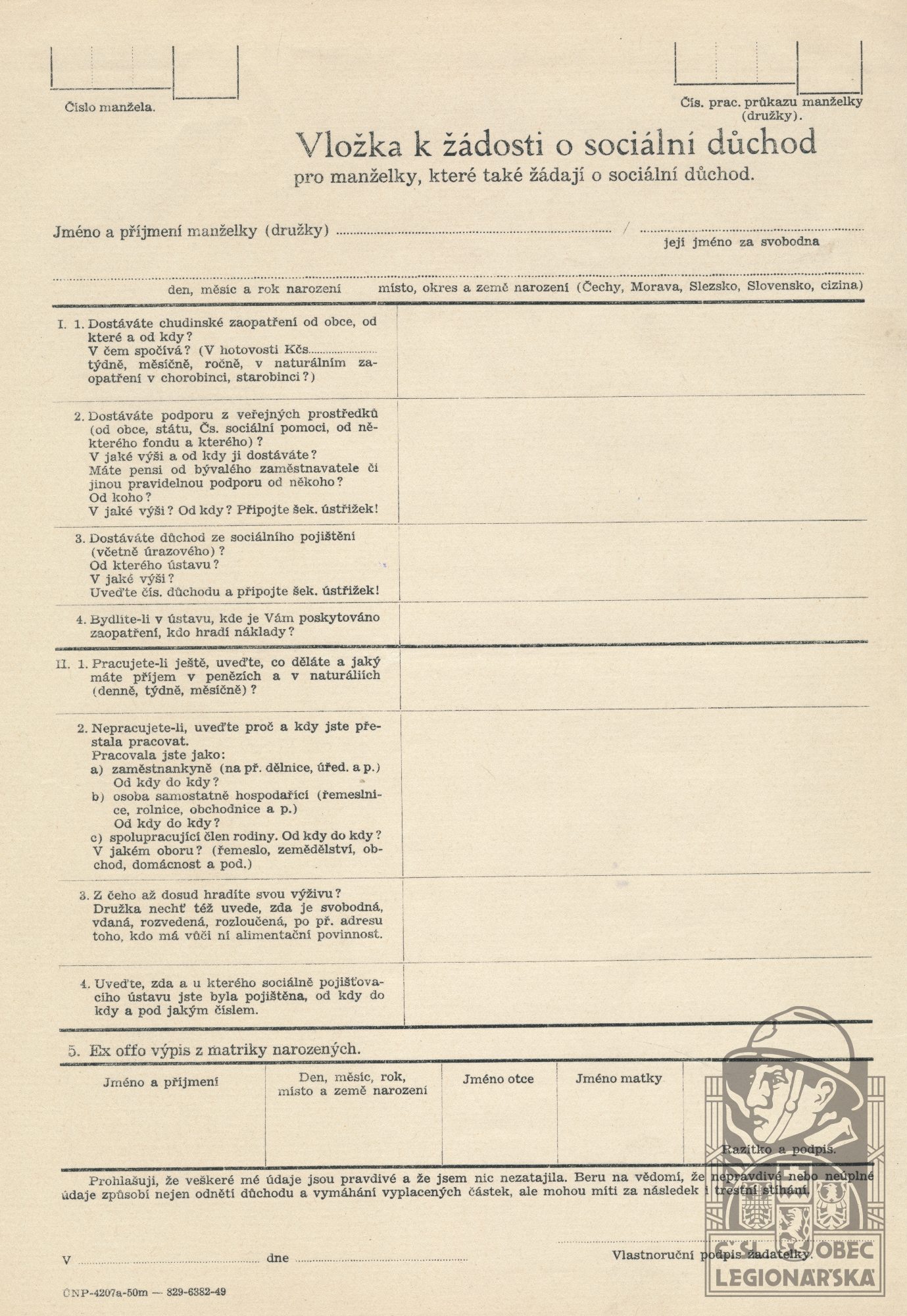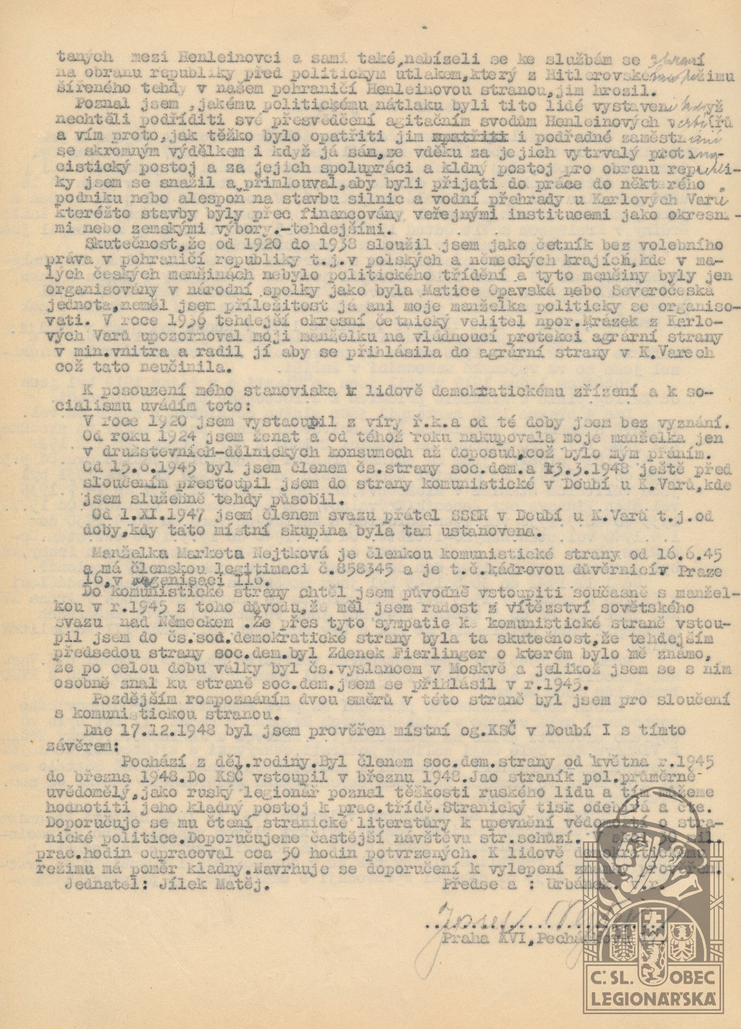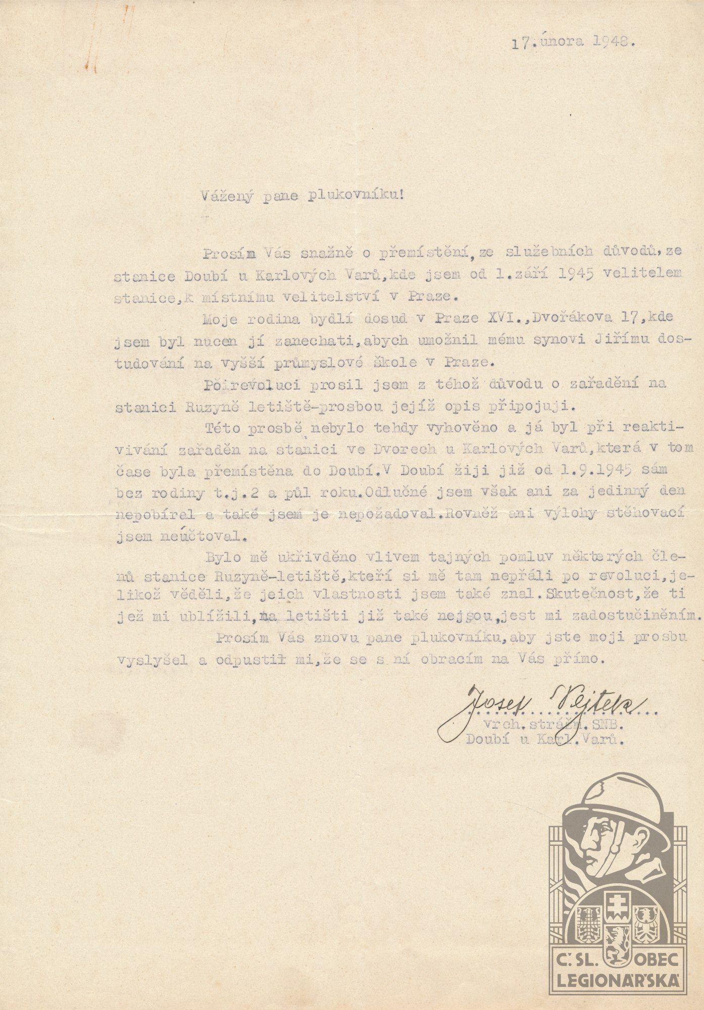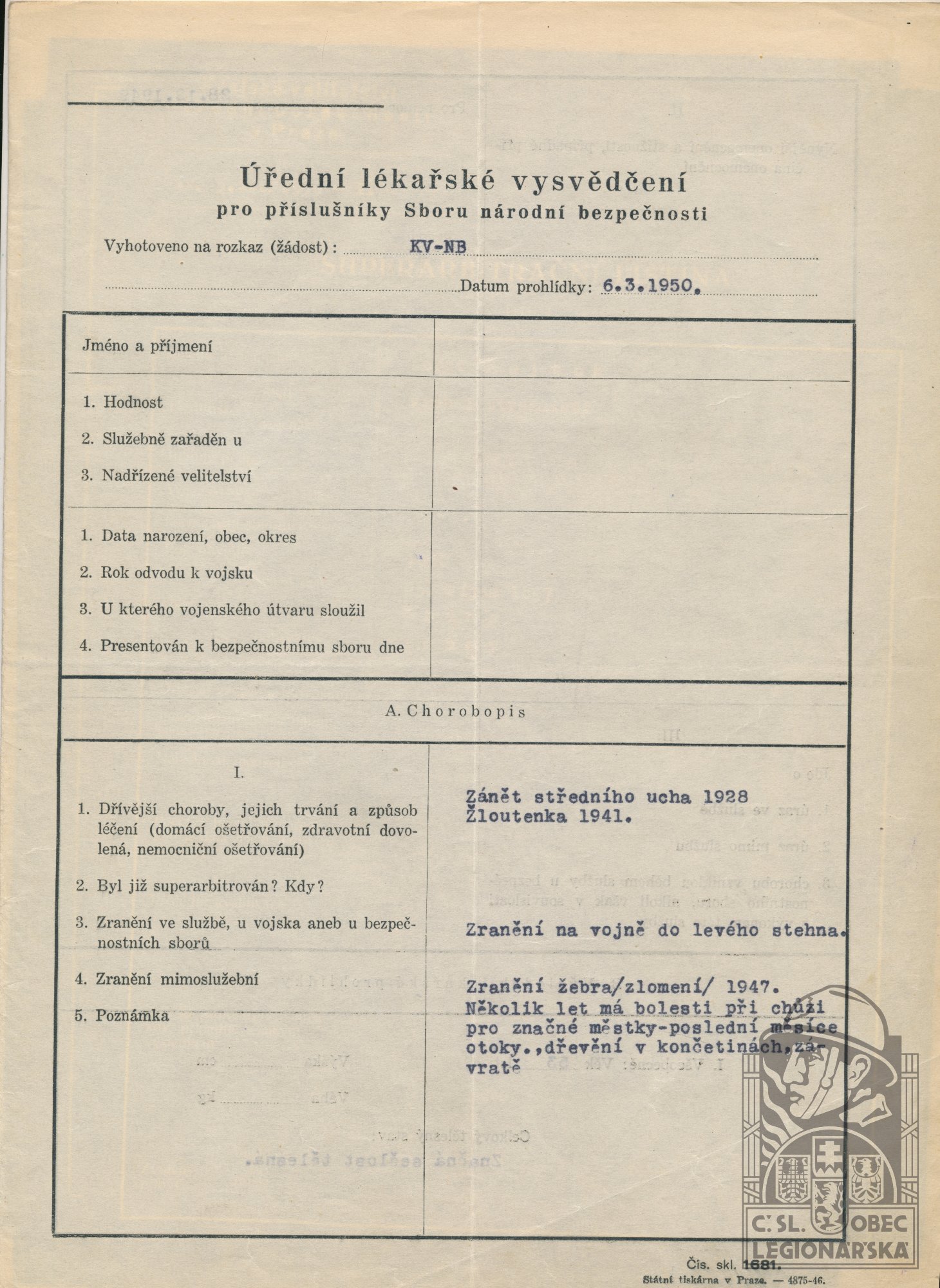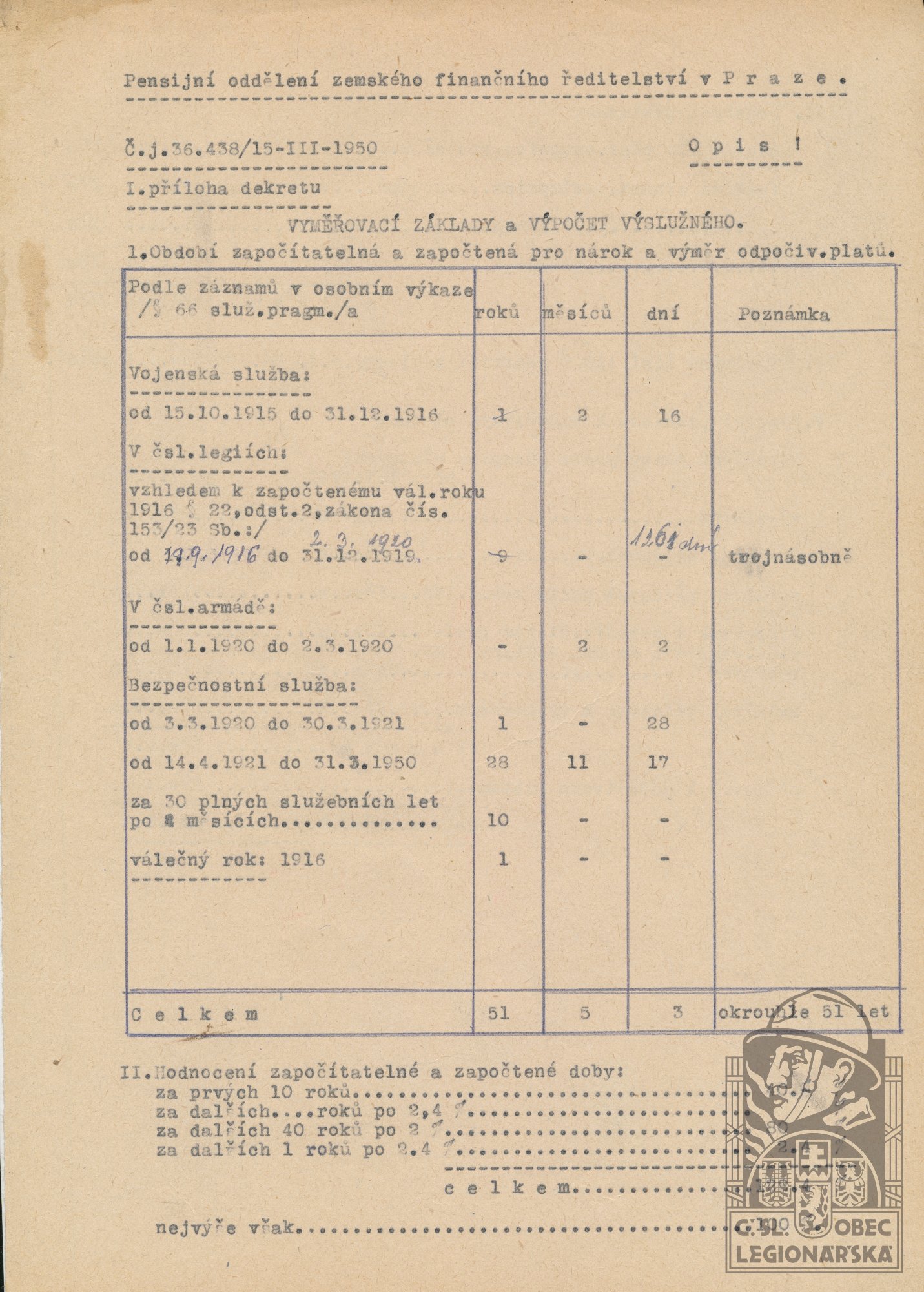 Zdroj informací: legionářský poslužný spis osobní karta legionáře
