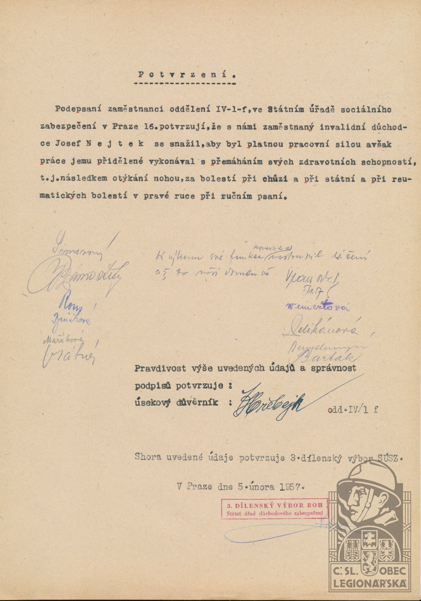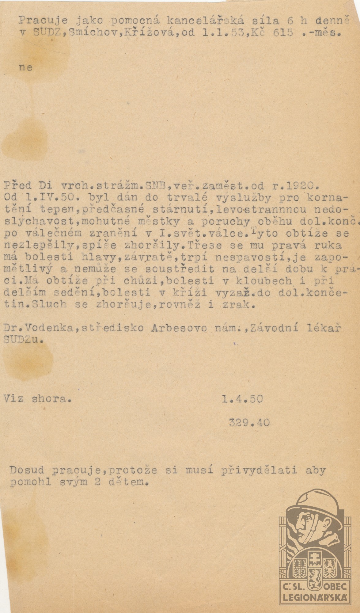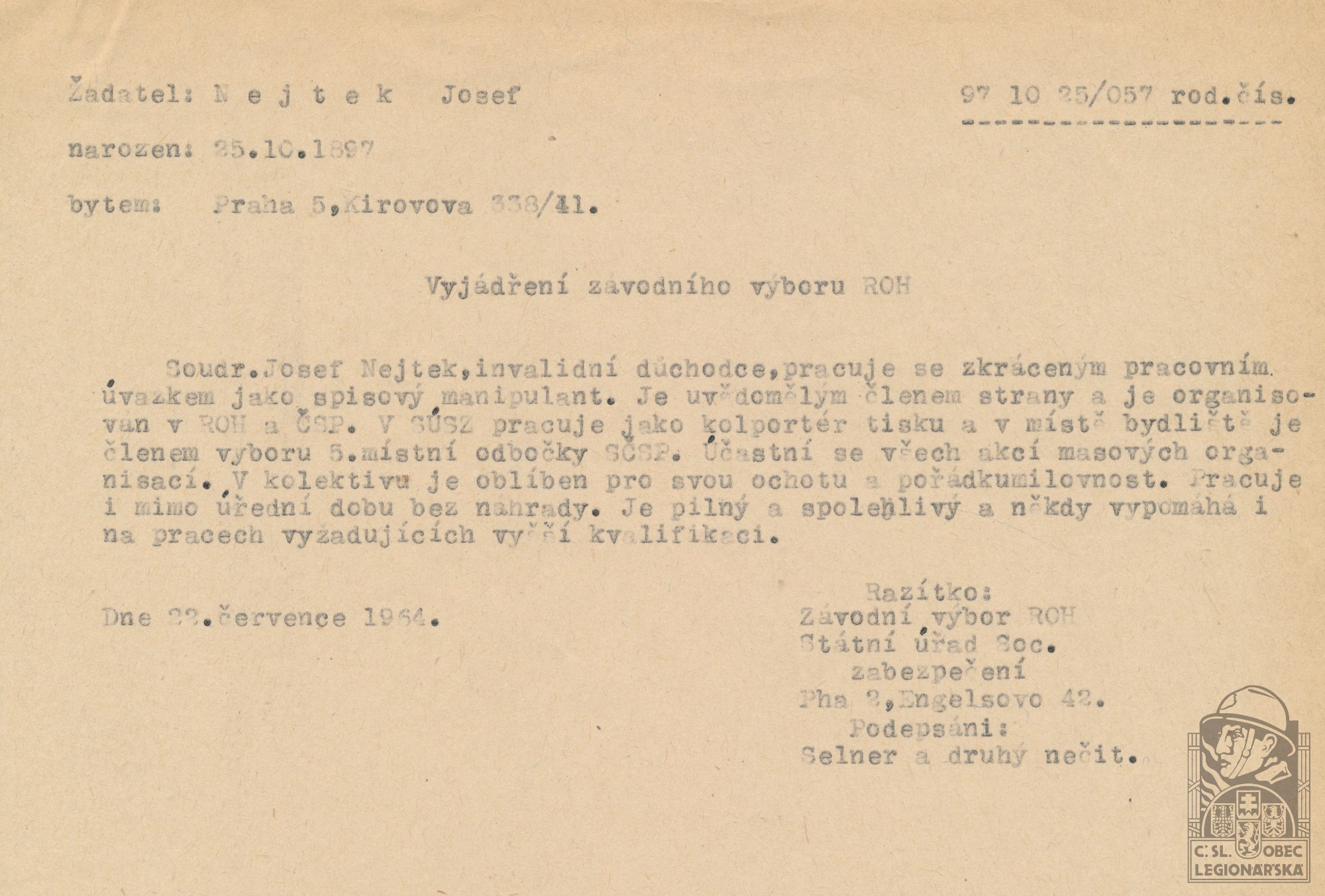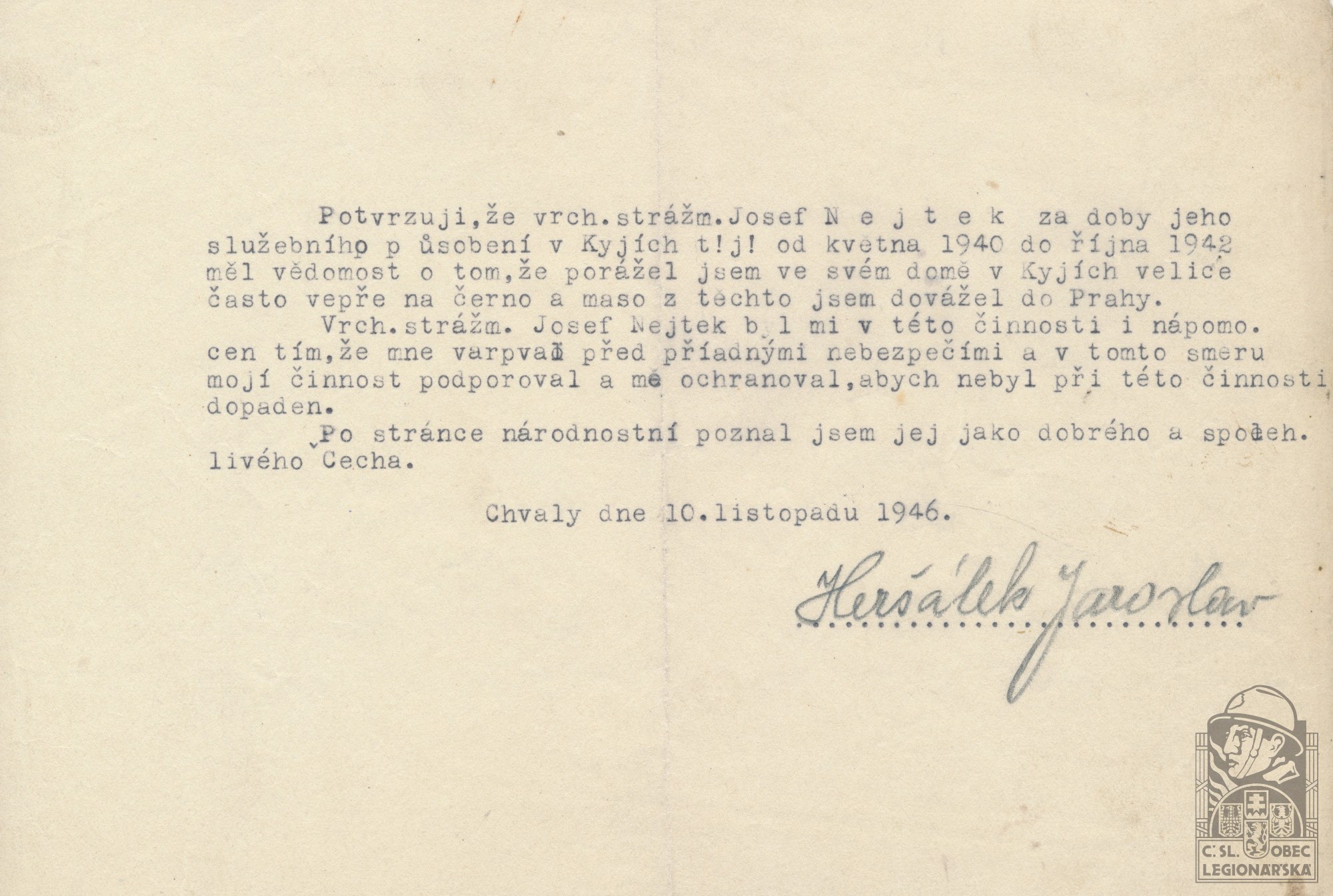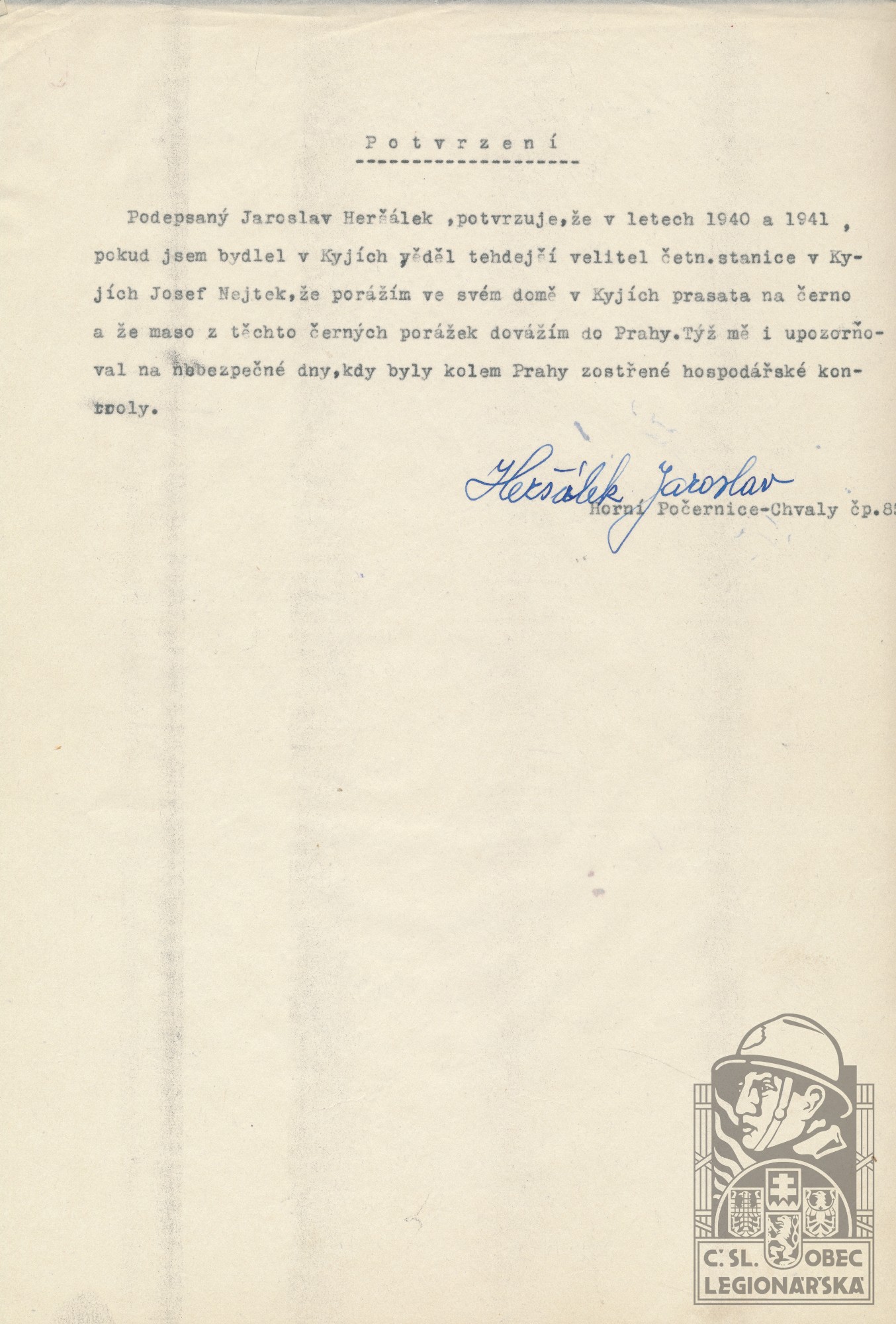 Zdroj informací: legionářský poslužný spis osobní karta legionáře