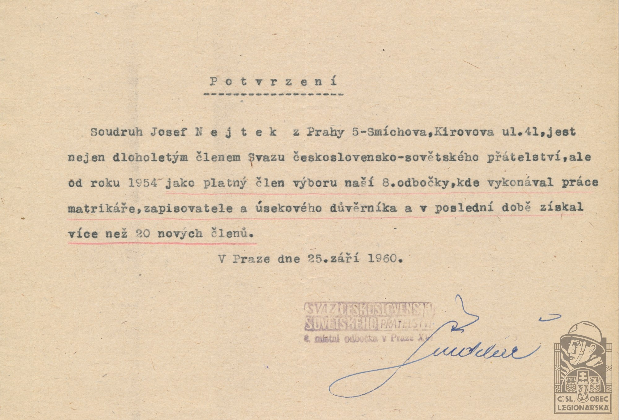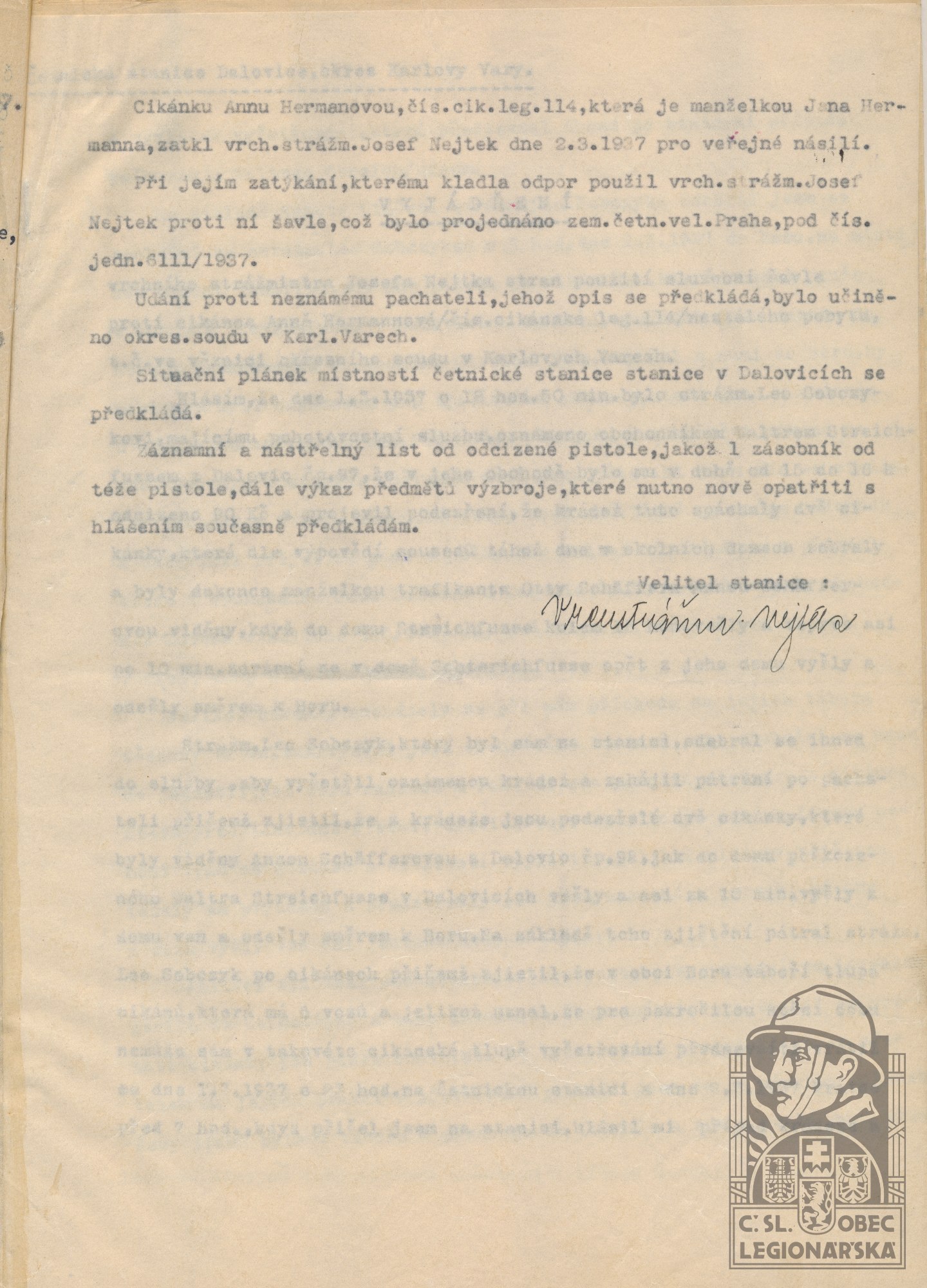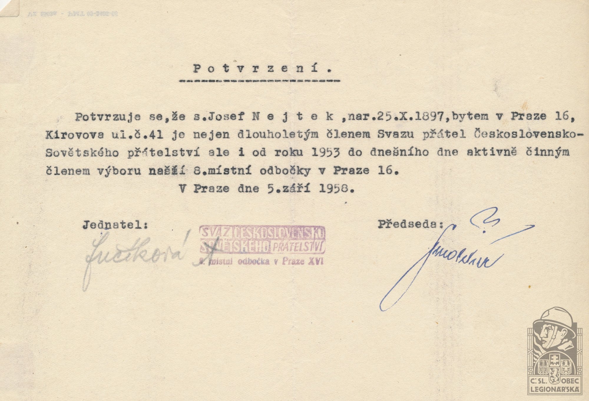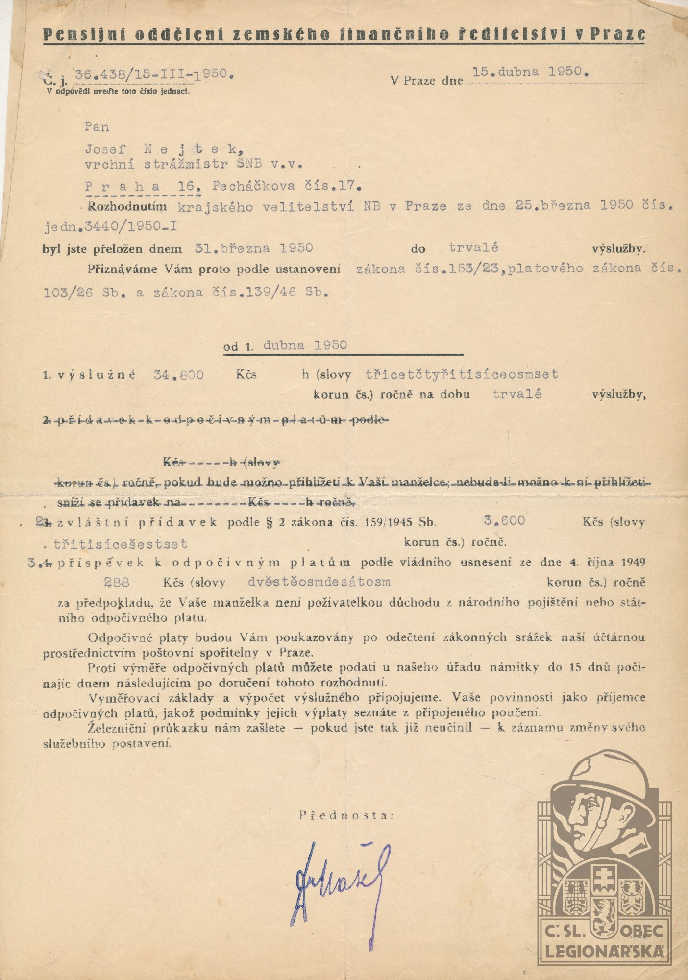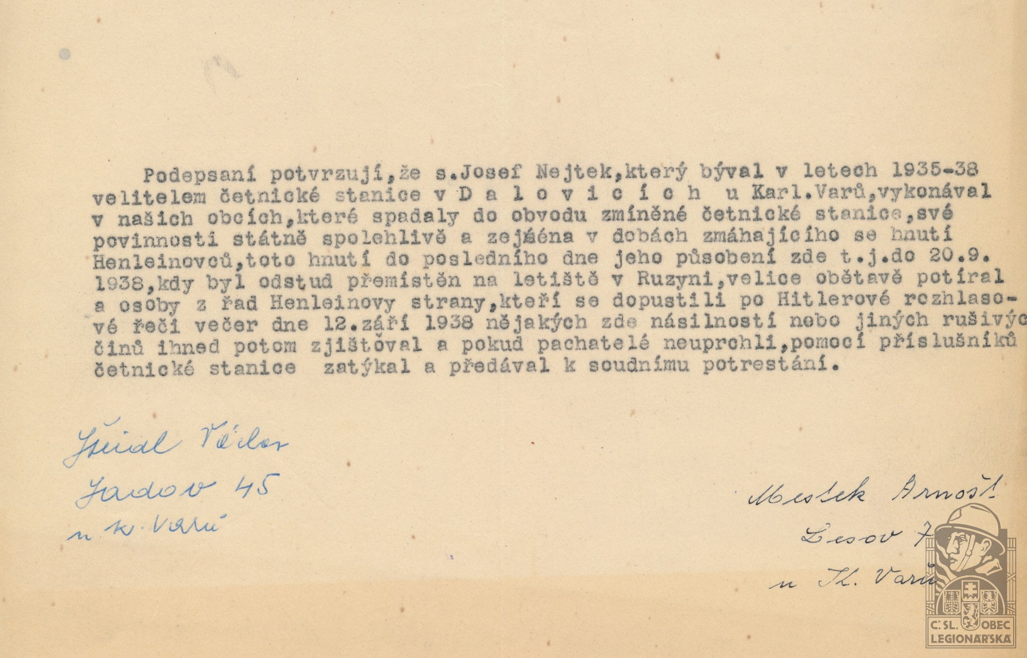 Zdroj informací: legionářský poslužný spis osobní karta legionáře