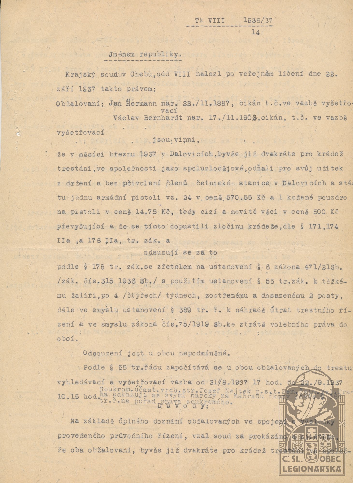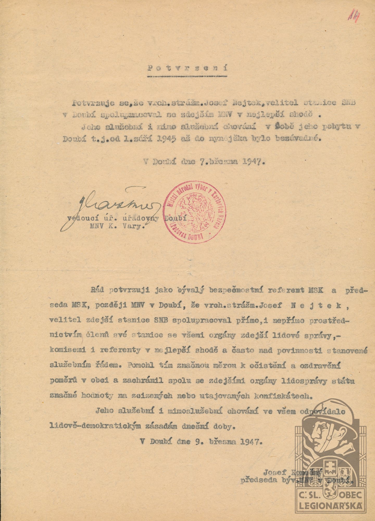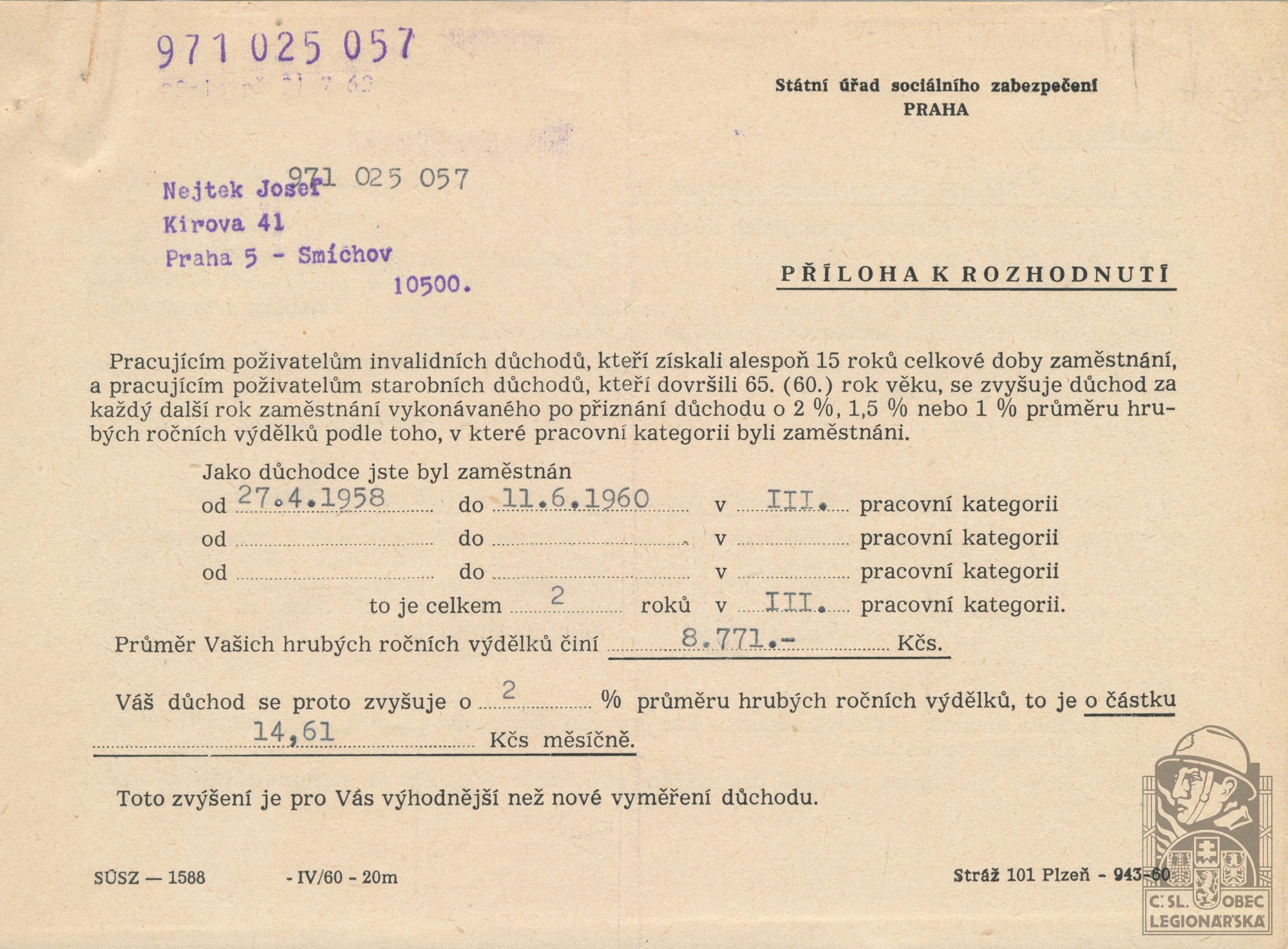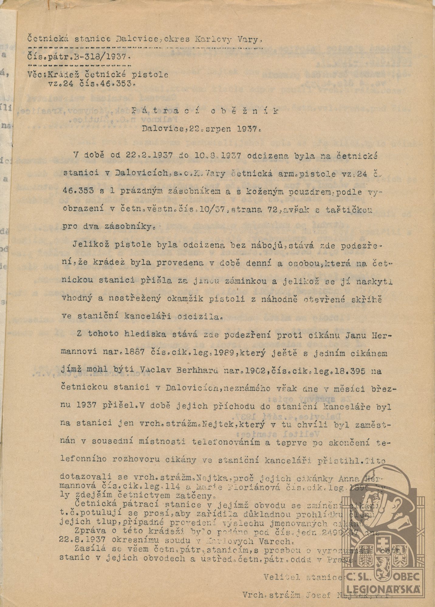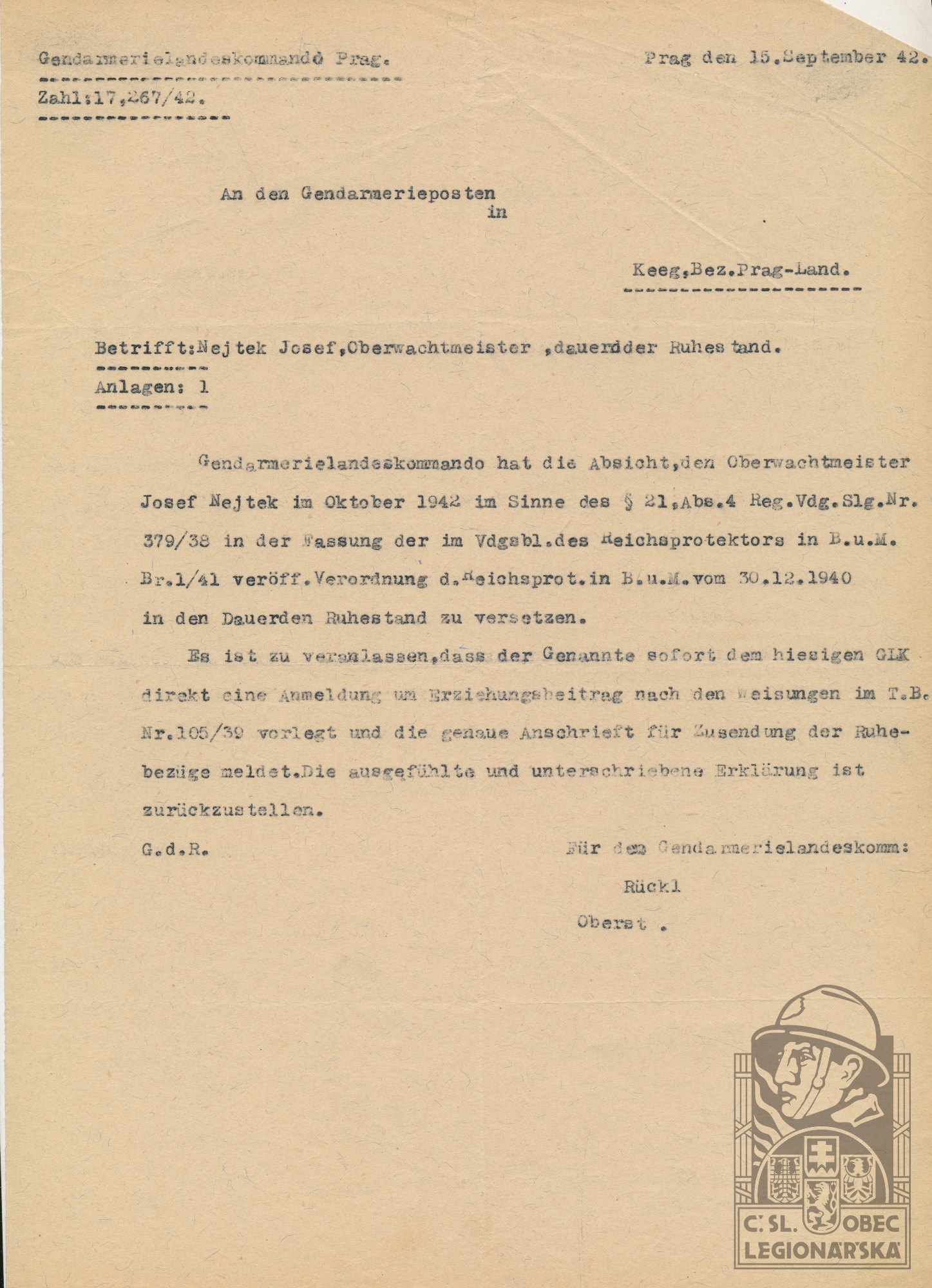 Zdroj informací: legionářský poslužný spis osobní karta legionáře