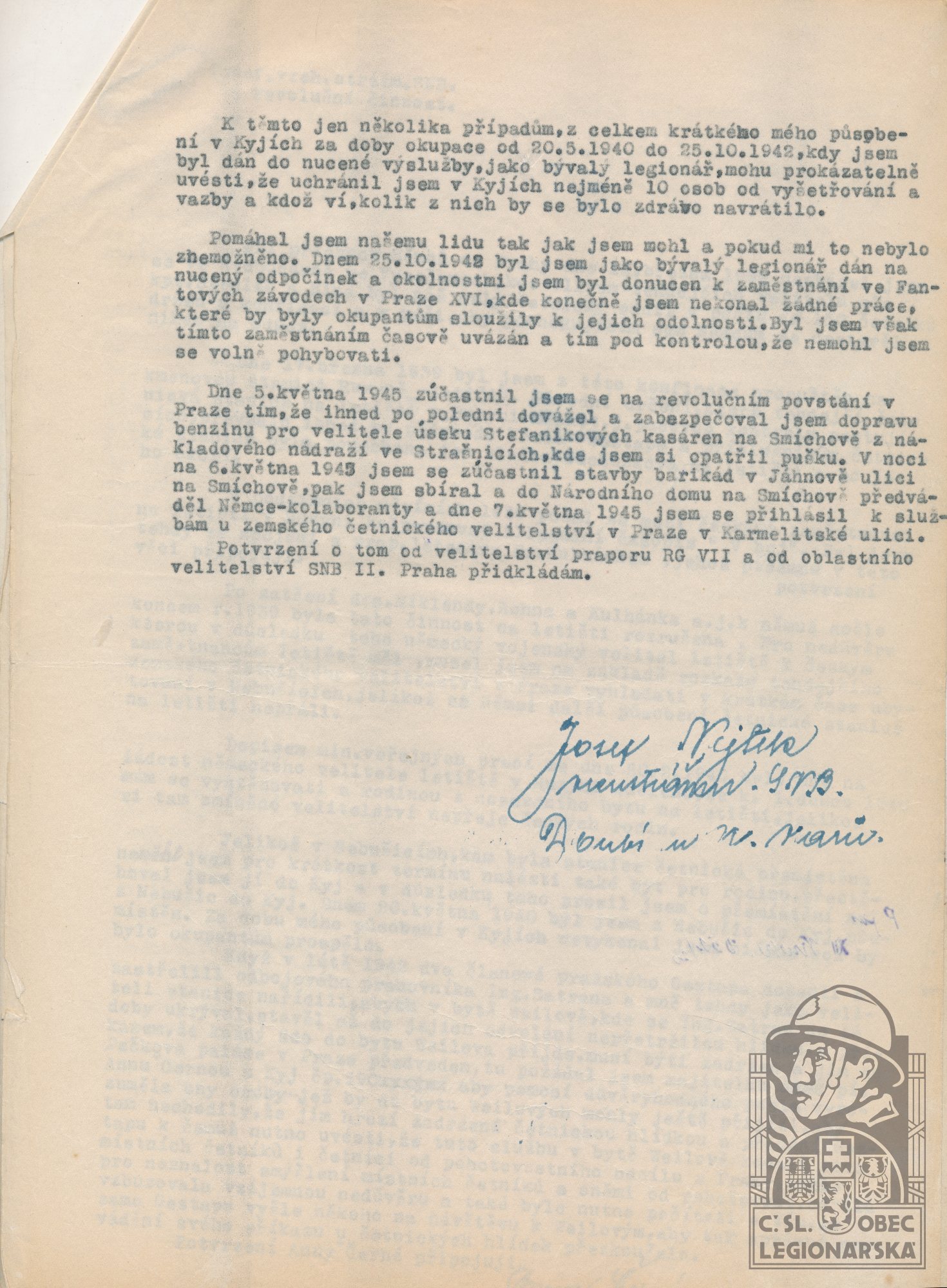 Účast v druhém odboji:5.5.1945 v Revolučních gardách