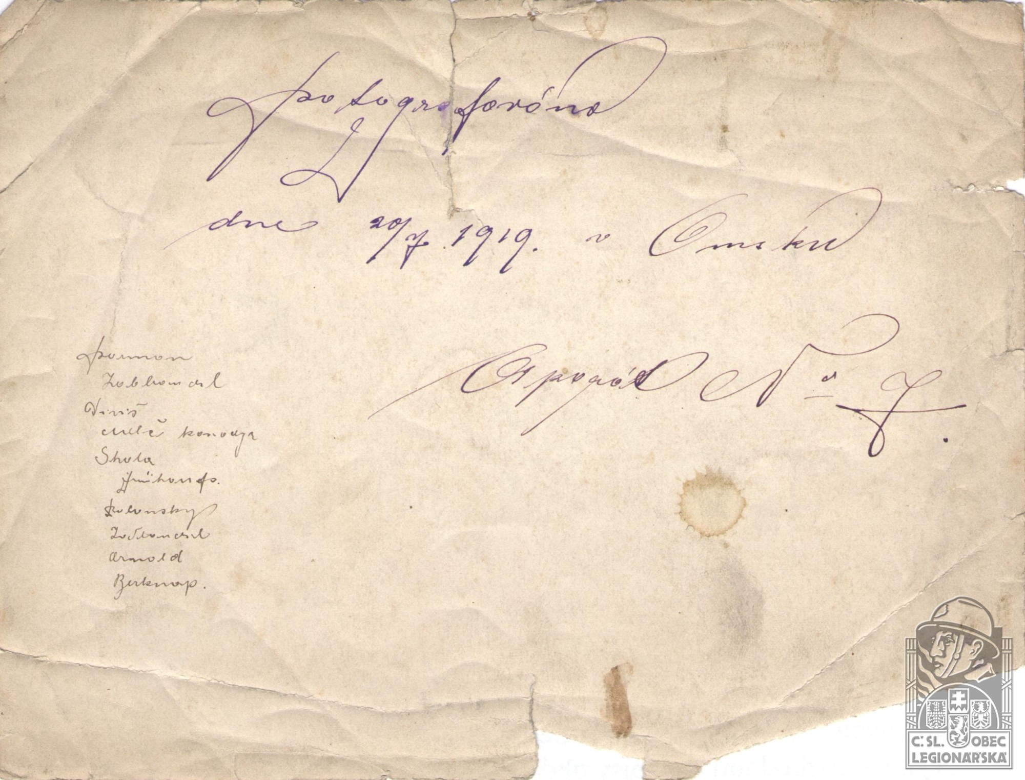 Poznámka:služba v legii od 28.7.1916 do 1.3.1920