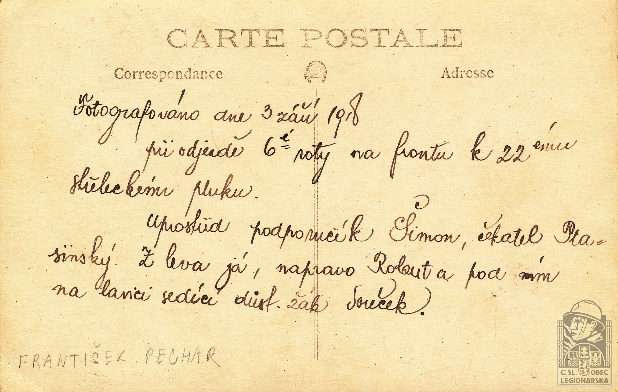 Jednotka v době zařazení:23.stř.pl. ( Čs. legie v Francii )