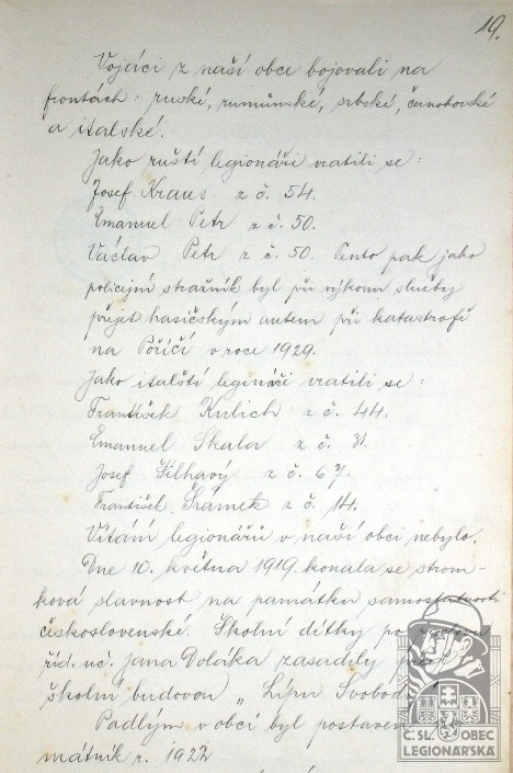 Zdroj informací: legionářský poslužný spis osobní karta legionáře