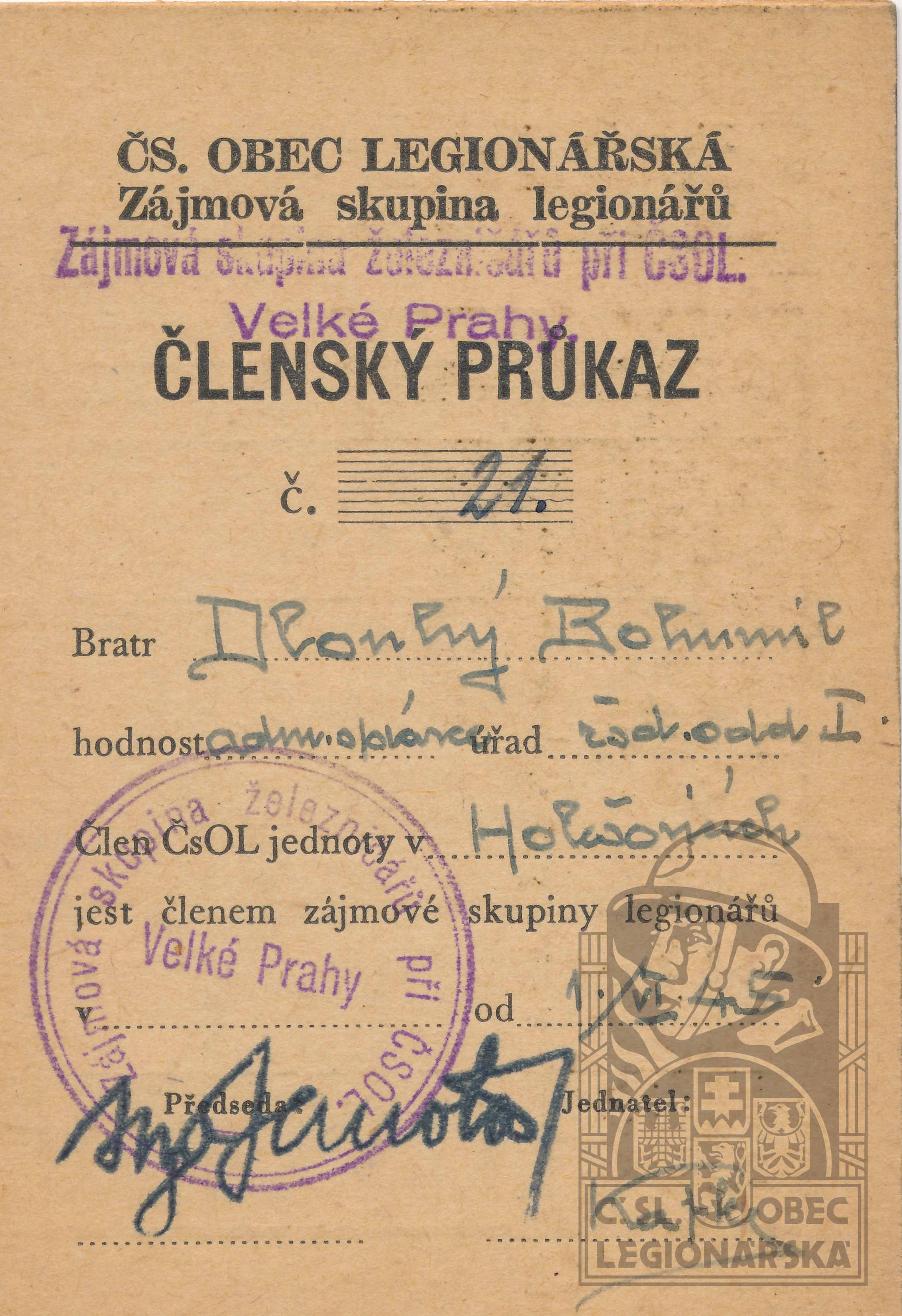 Zdroj informací: legionářský poslužný spis osobní karta legionáře