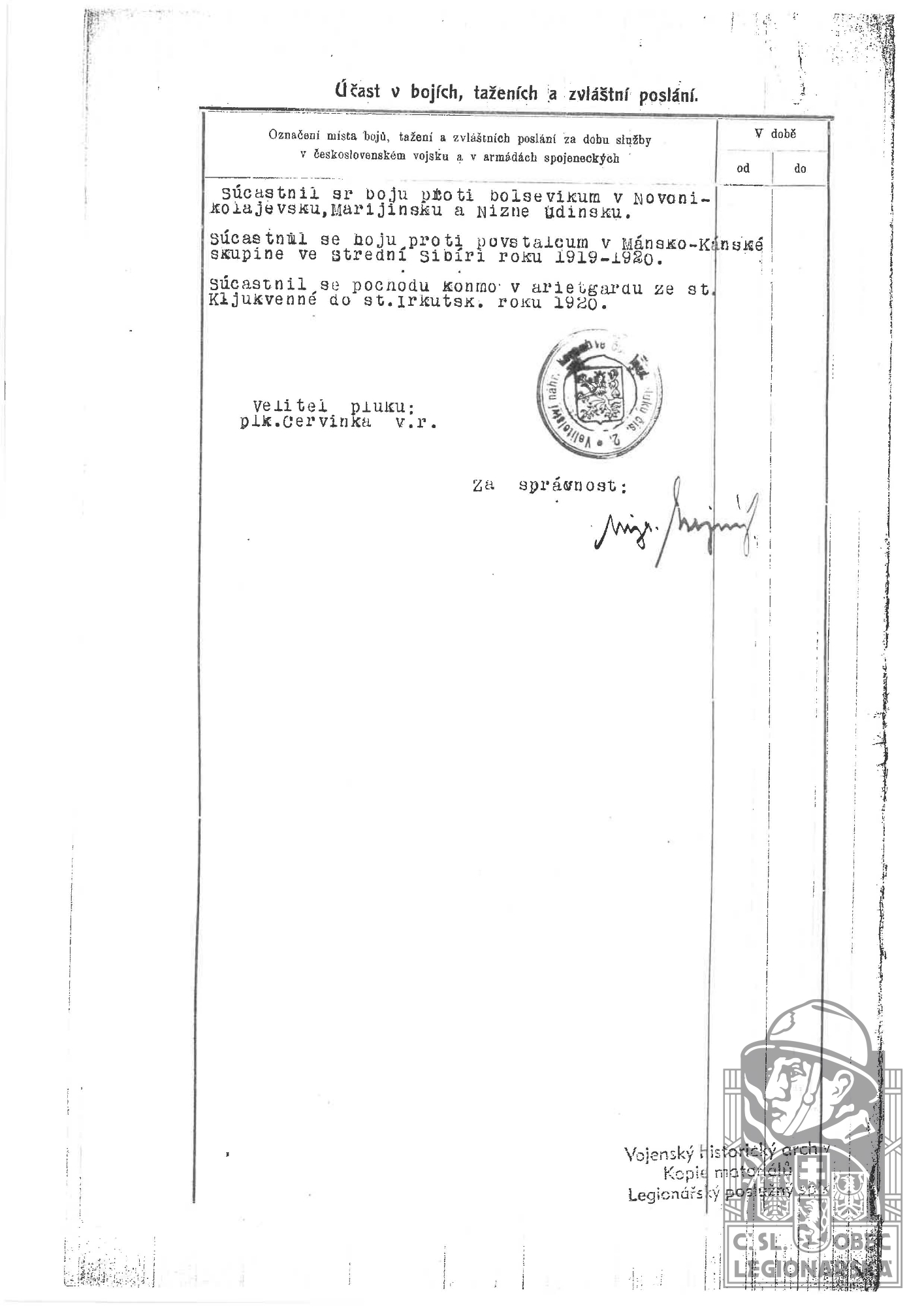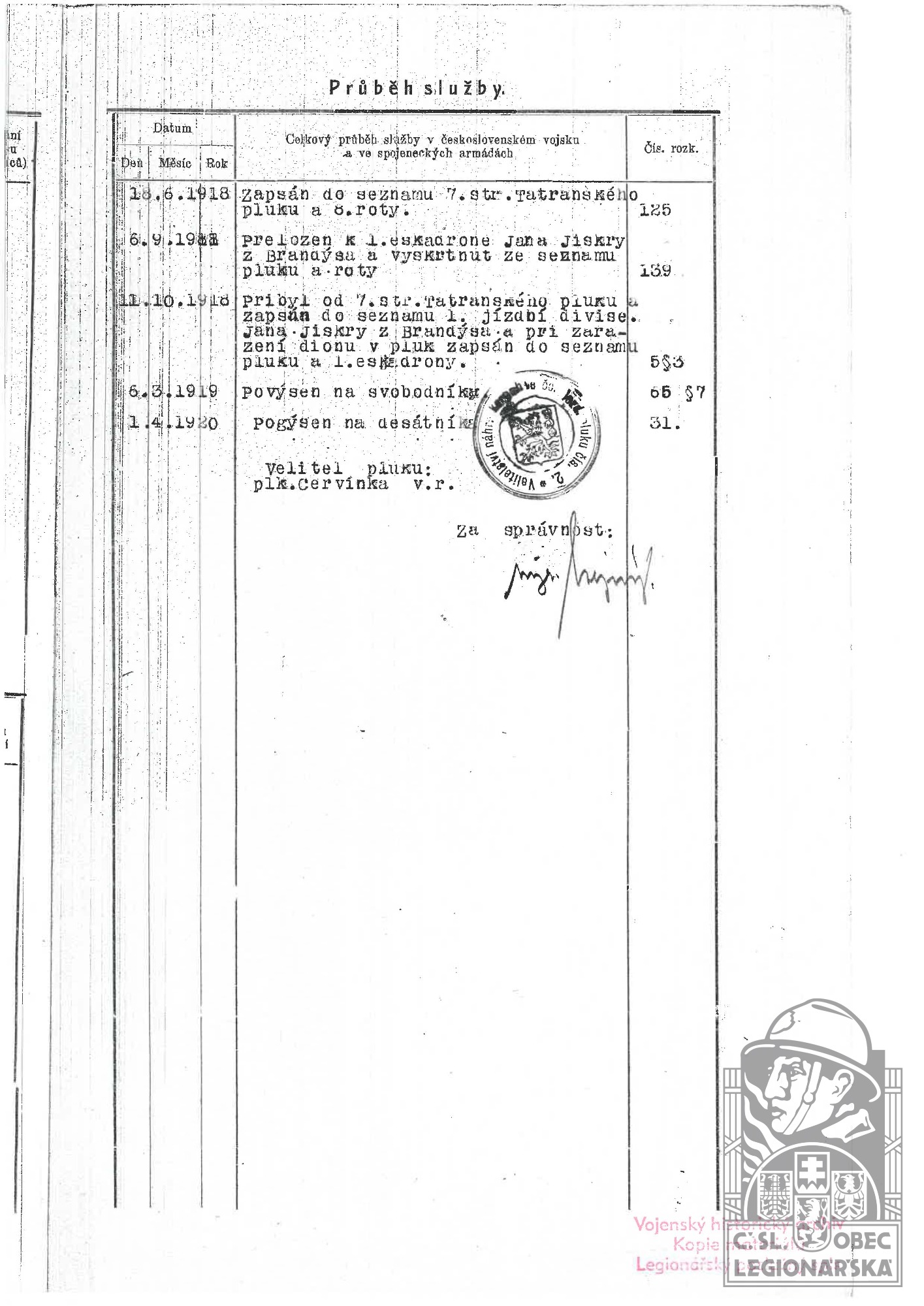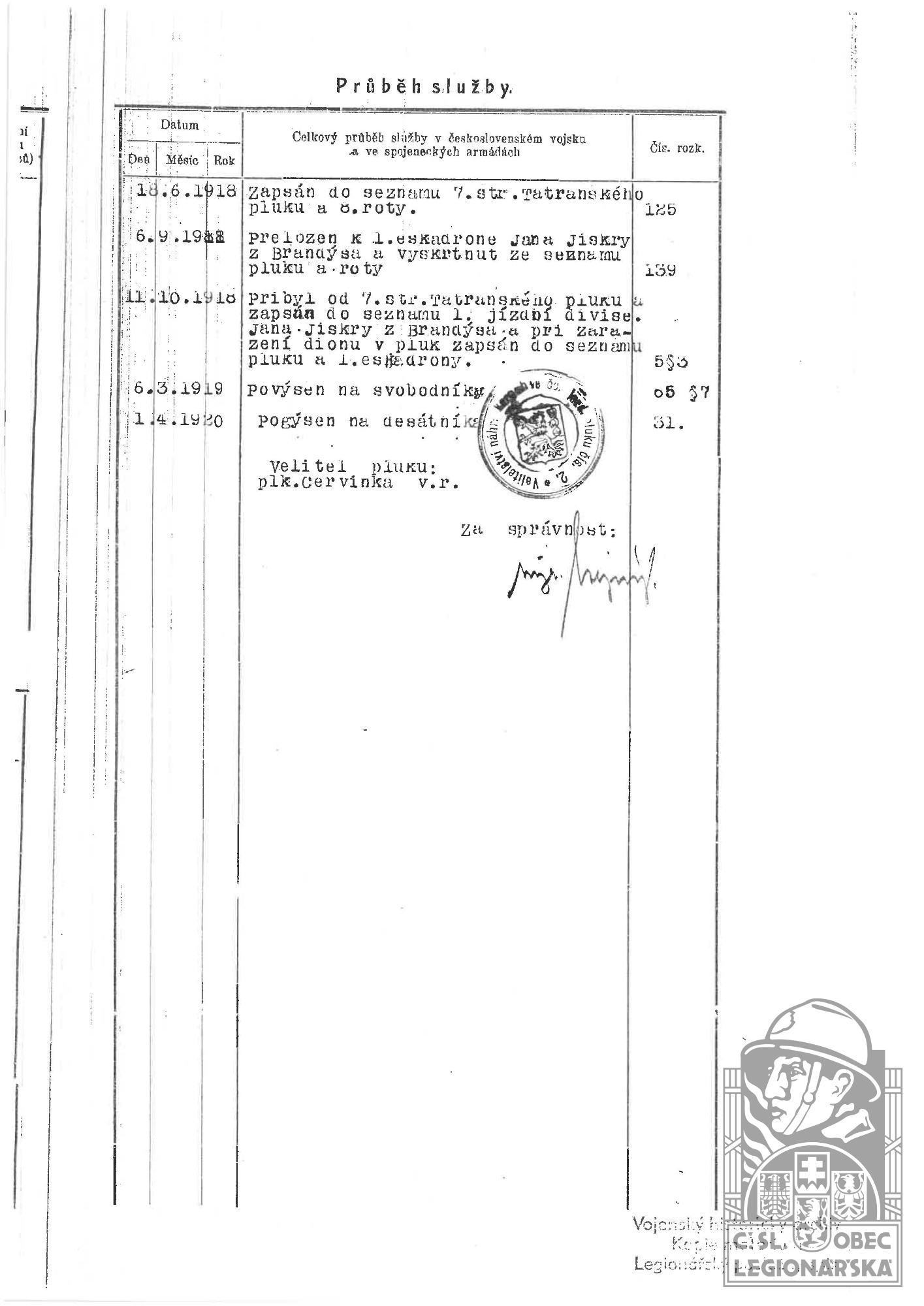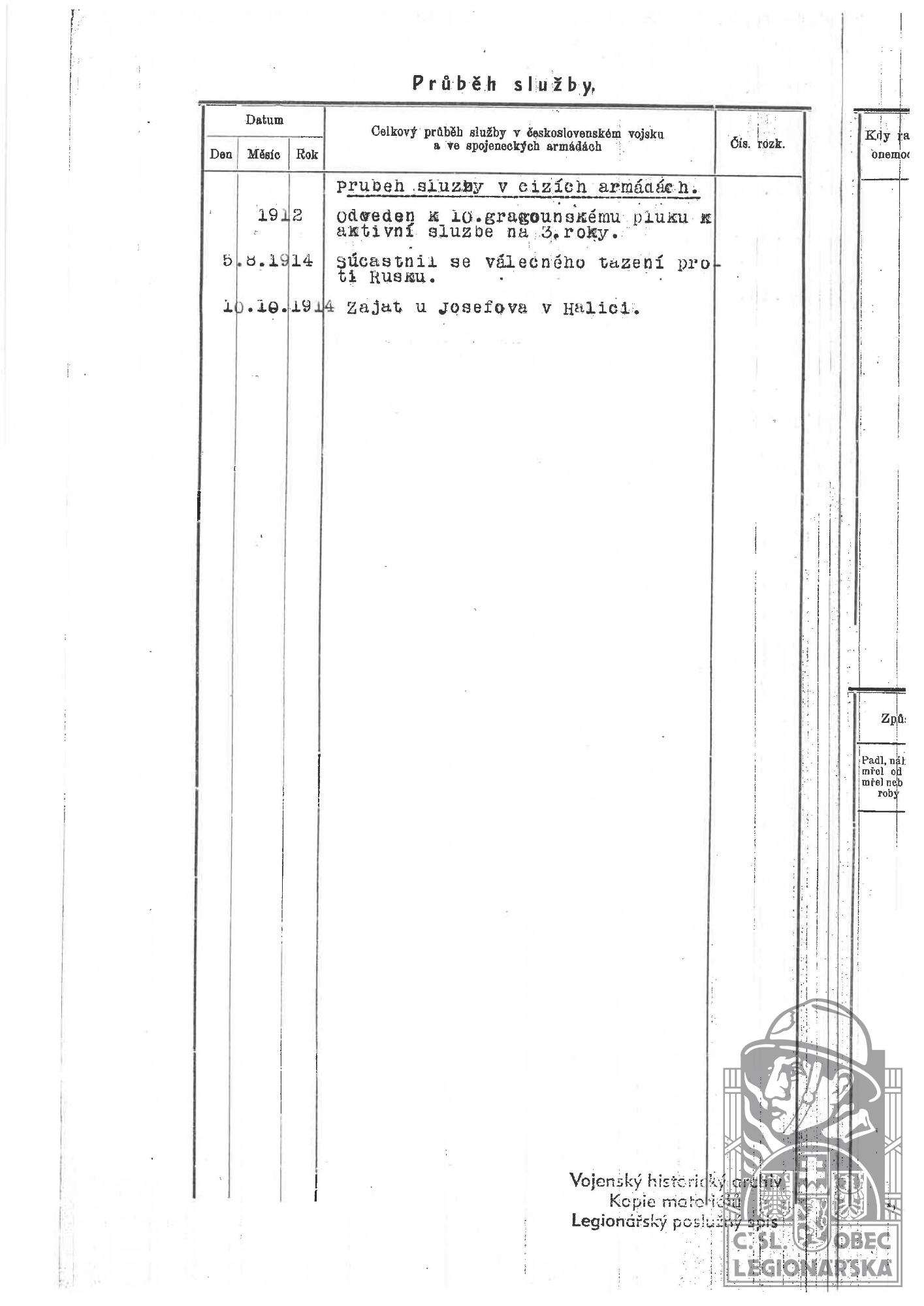 Zdroj informací: legionářský poslužný spis osobní karta legionáře rodinný archiv