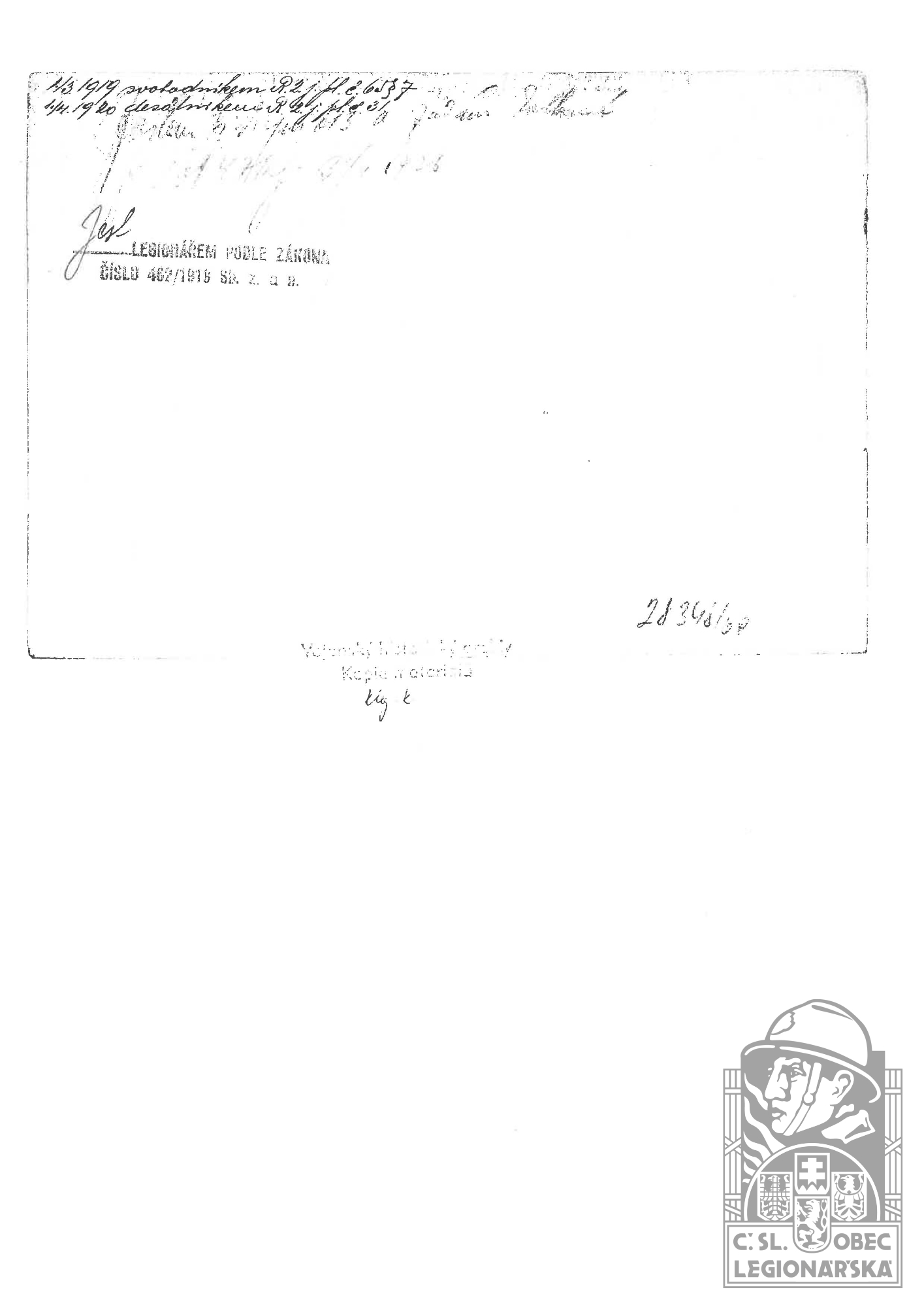 dokumenty spojené s osobou legionáře