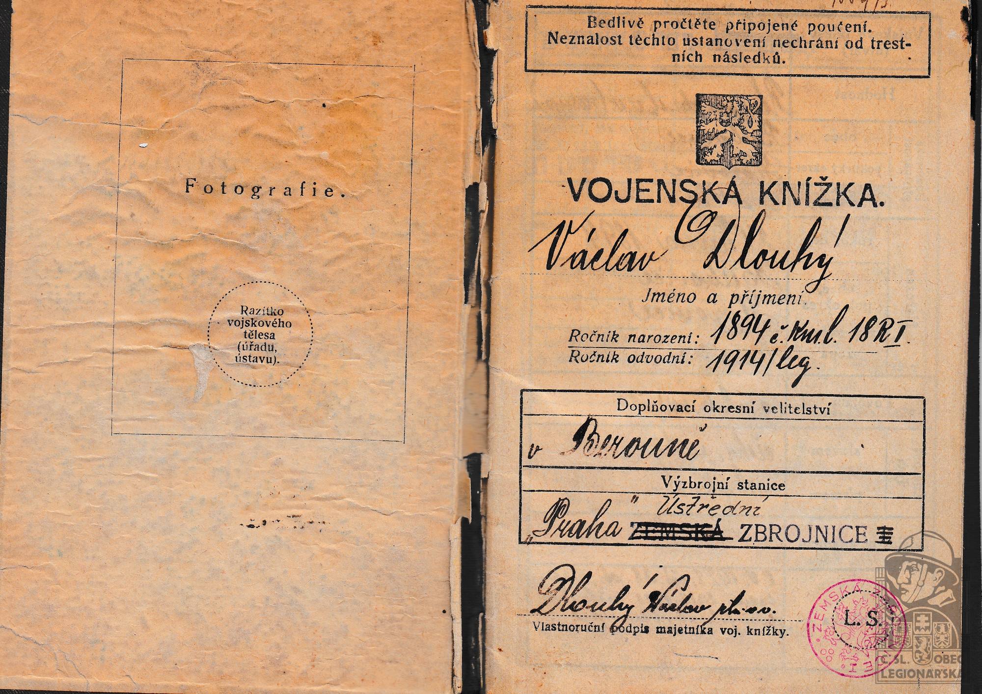 dokumenty spojené s osobou legionáře