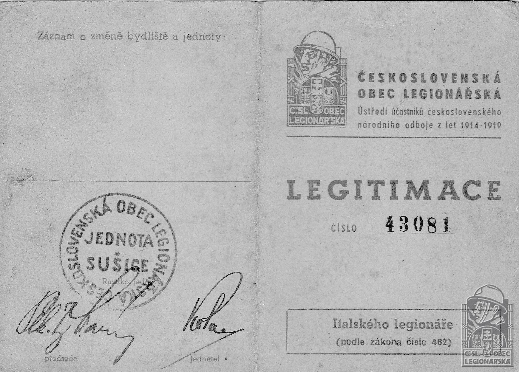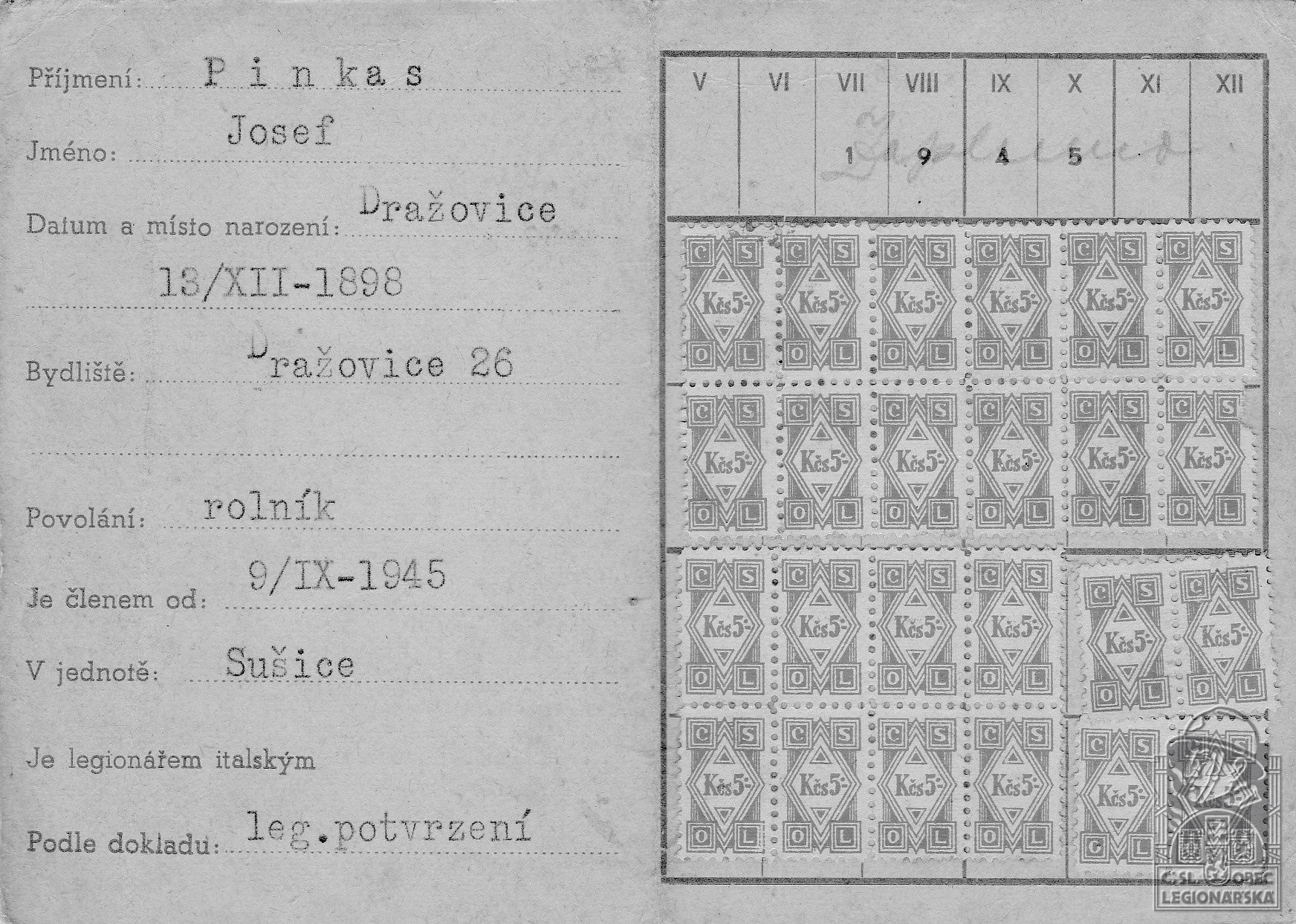 dokumenty spojené s osobou legionáře