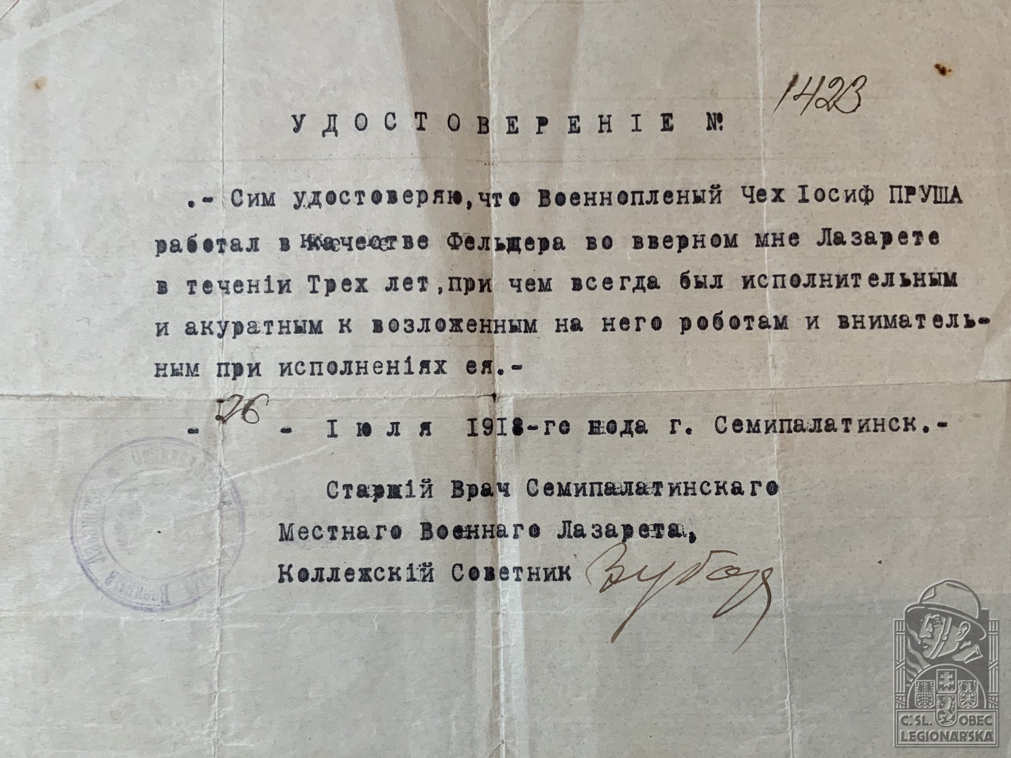 Misto podání přihlášky do legií:Semipalatinsk