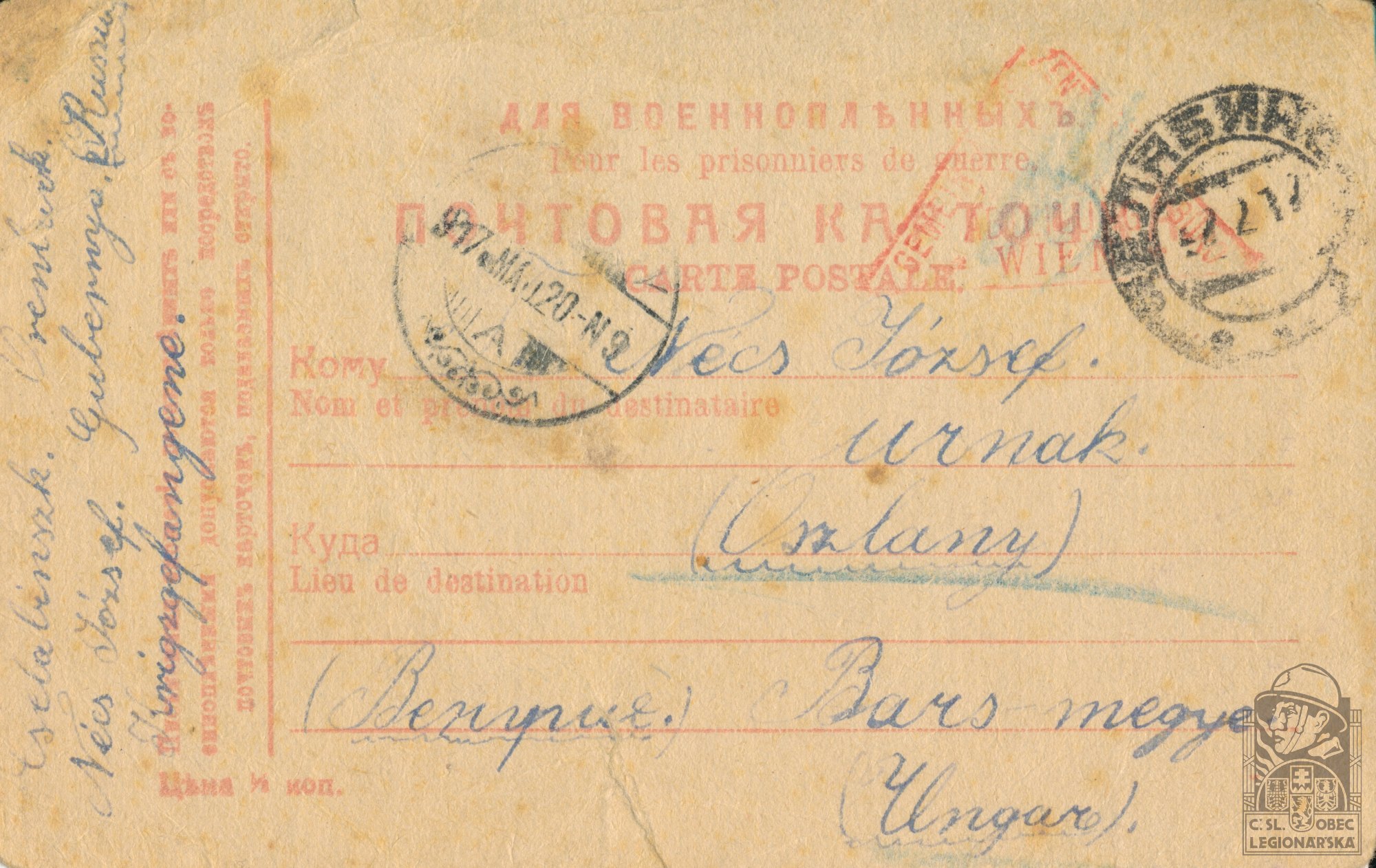 Jednotka v době zařazení:1.jízd.pl. ( Čs. legie v Rusku )