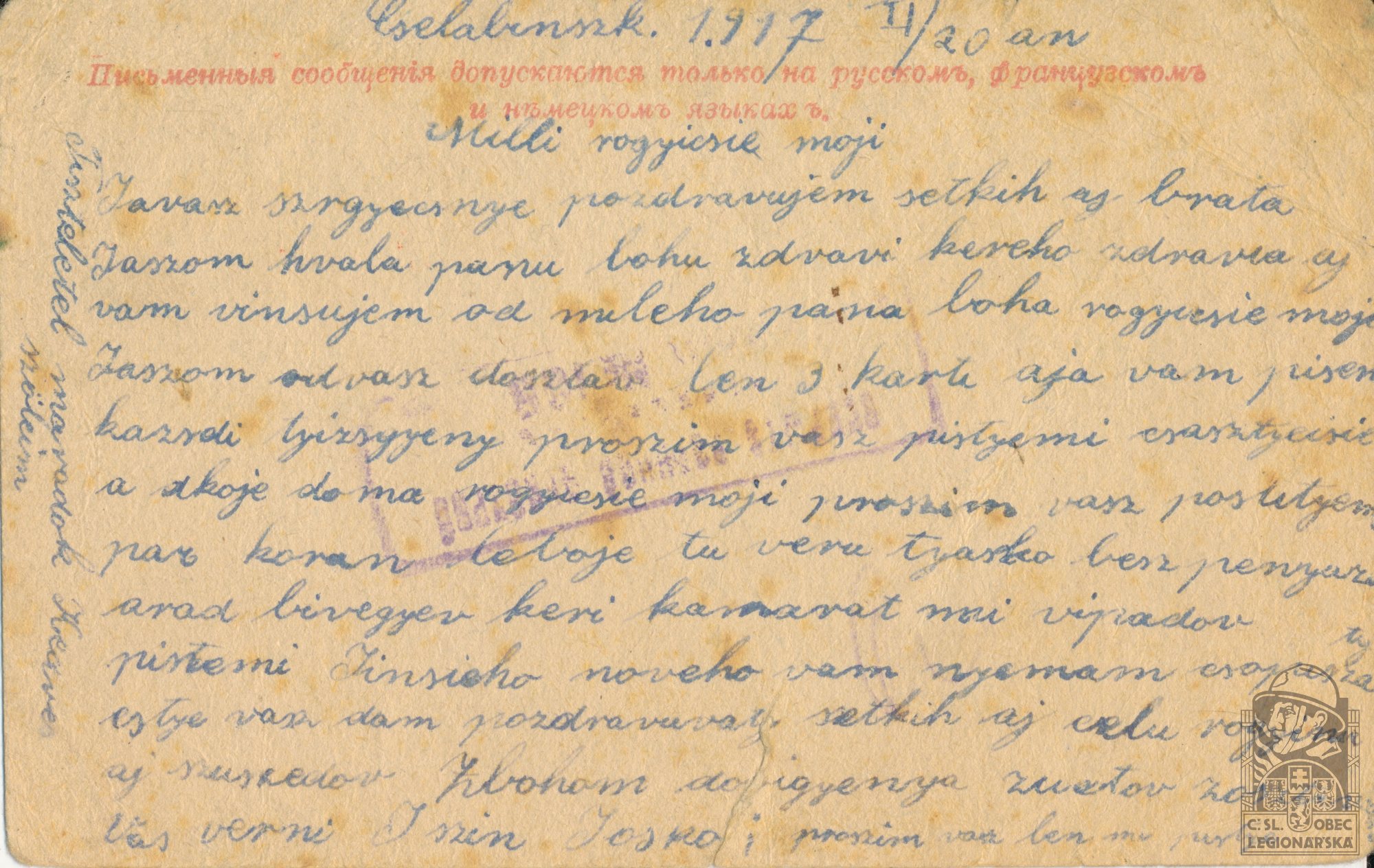 Datum podání přihlášky do legií:20.6.1917