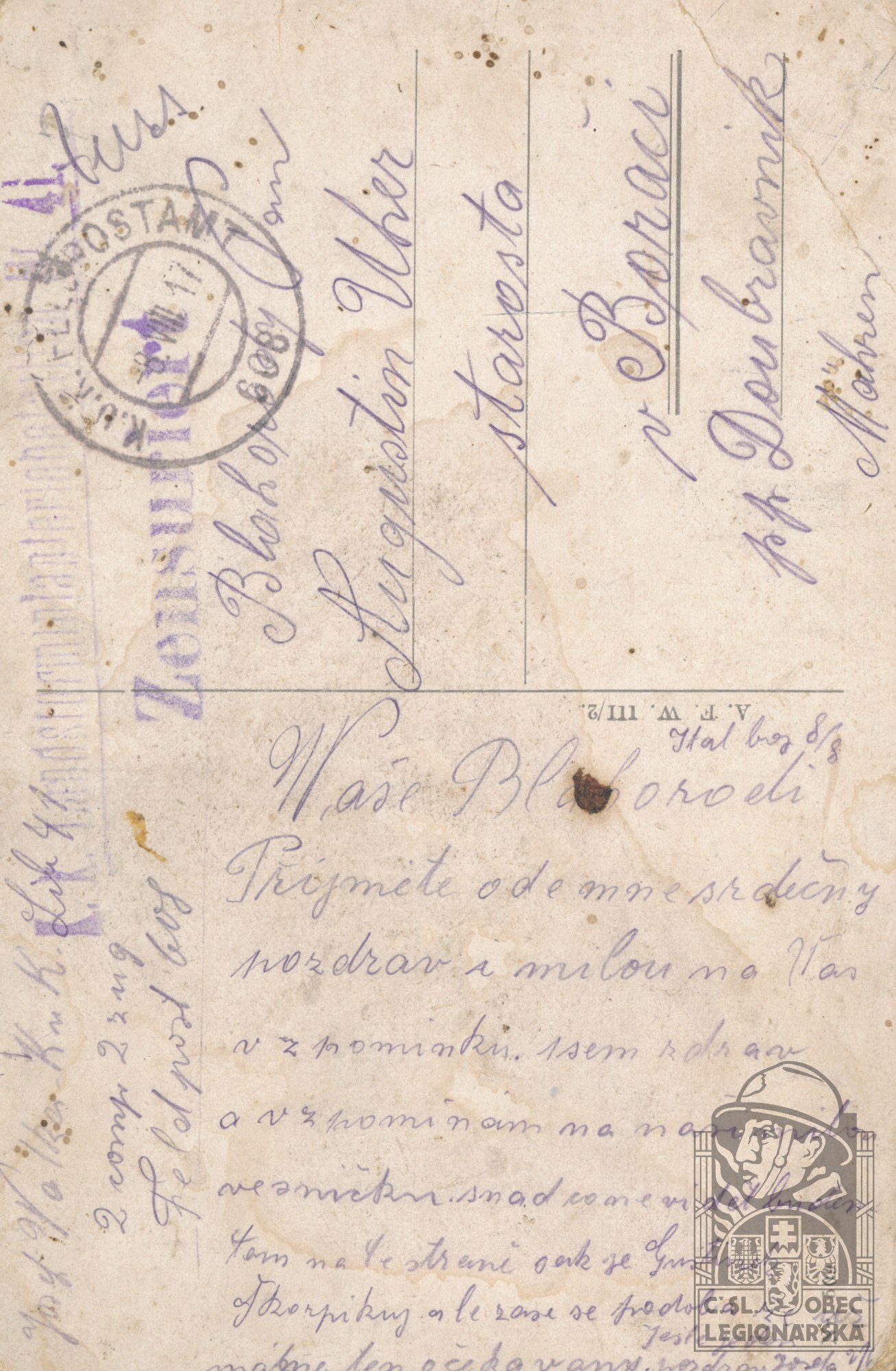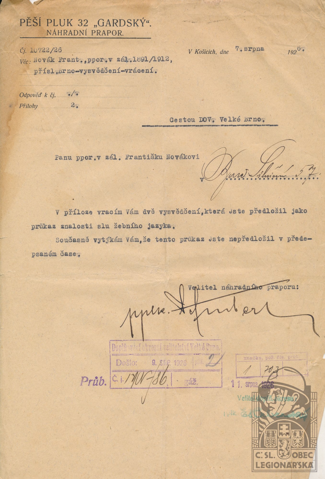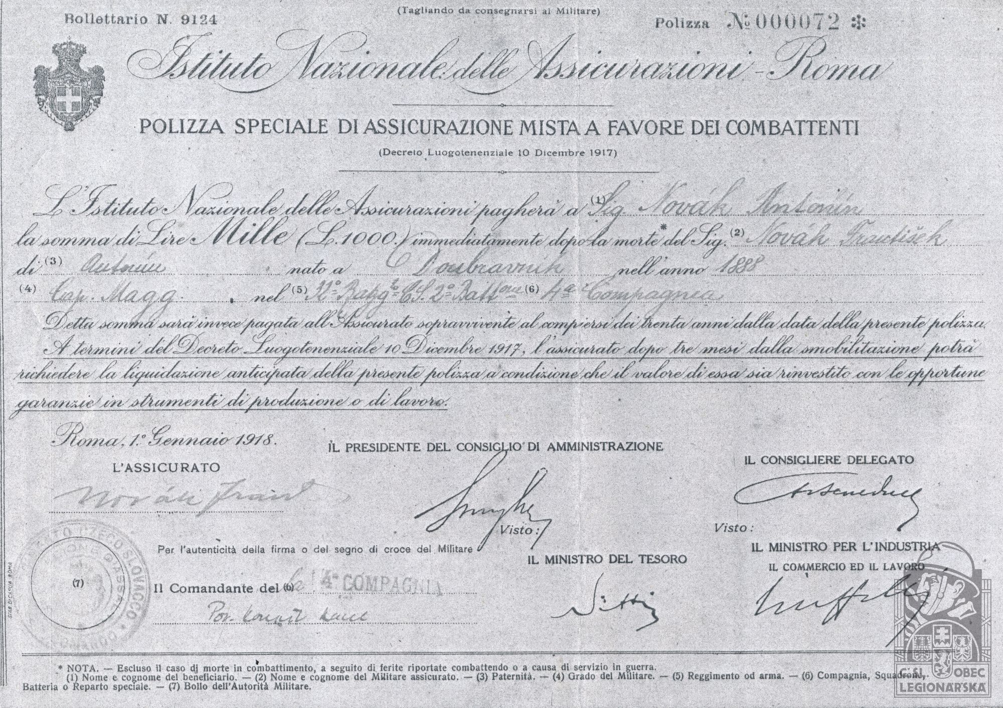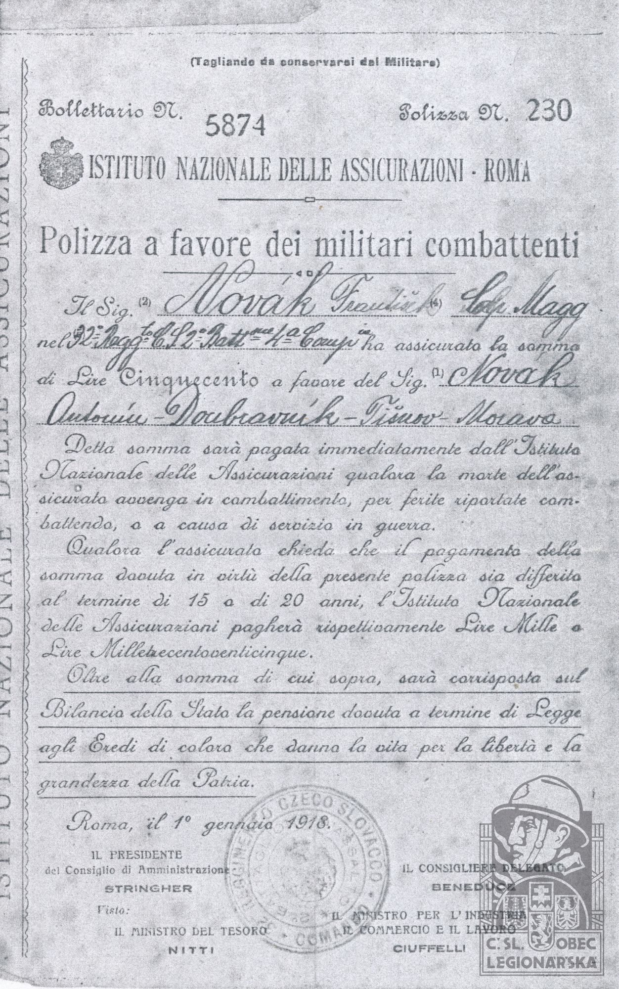 Jednotka v době zařazení:32.stř.pl. ( Čs. legie v Itálii )