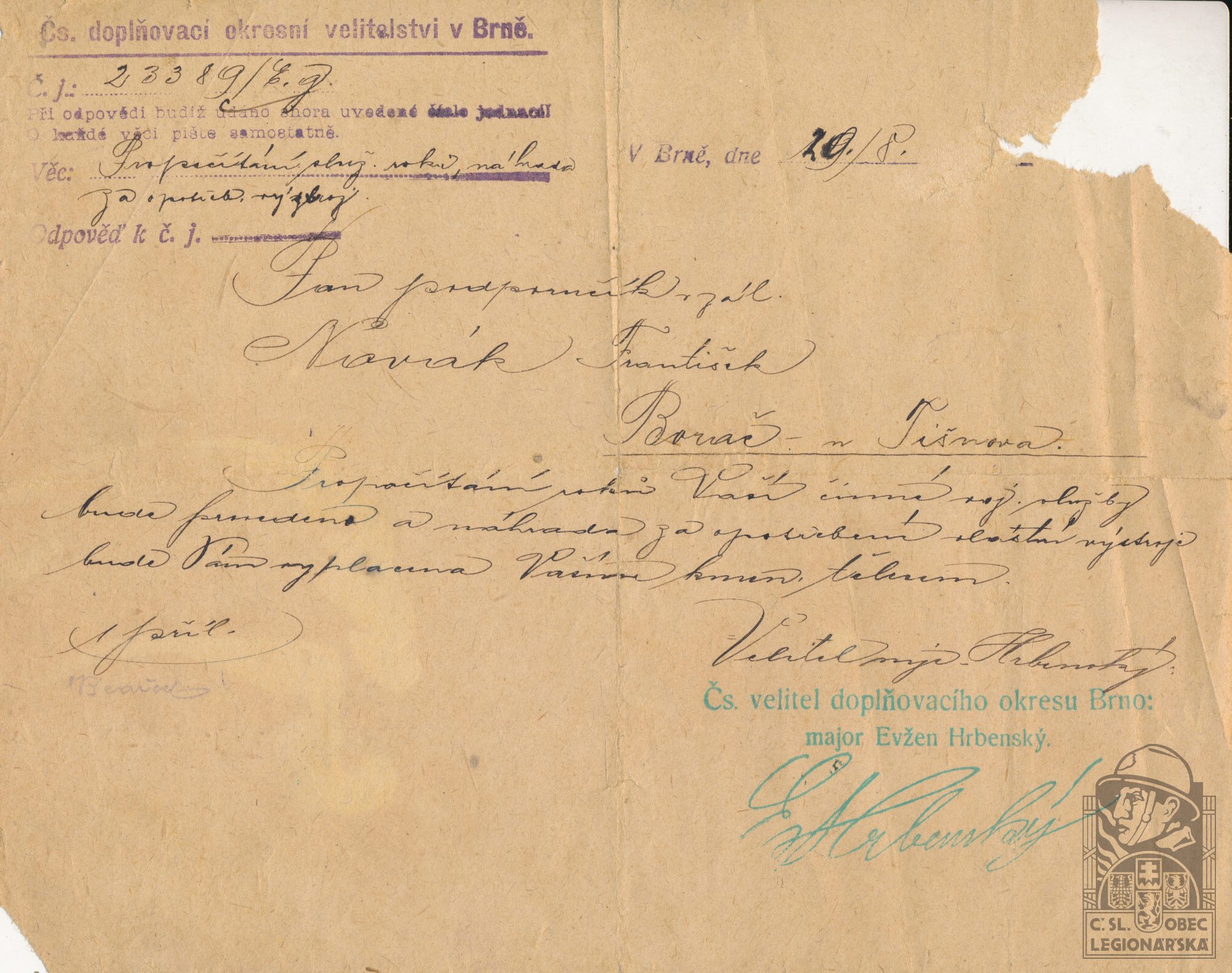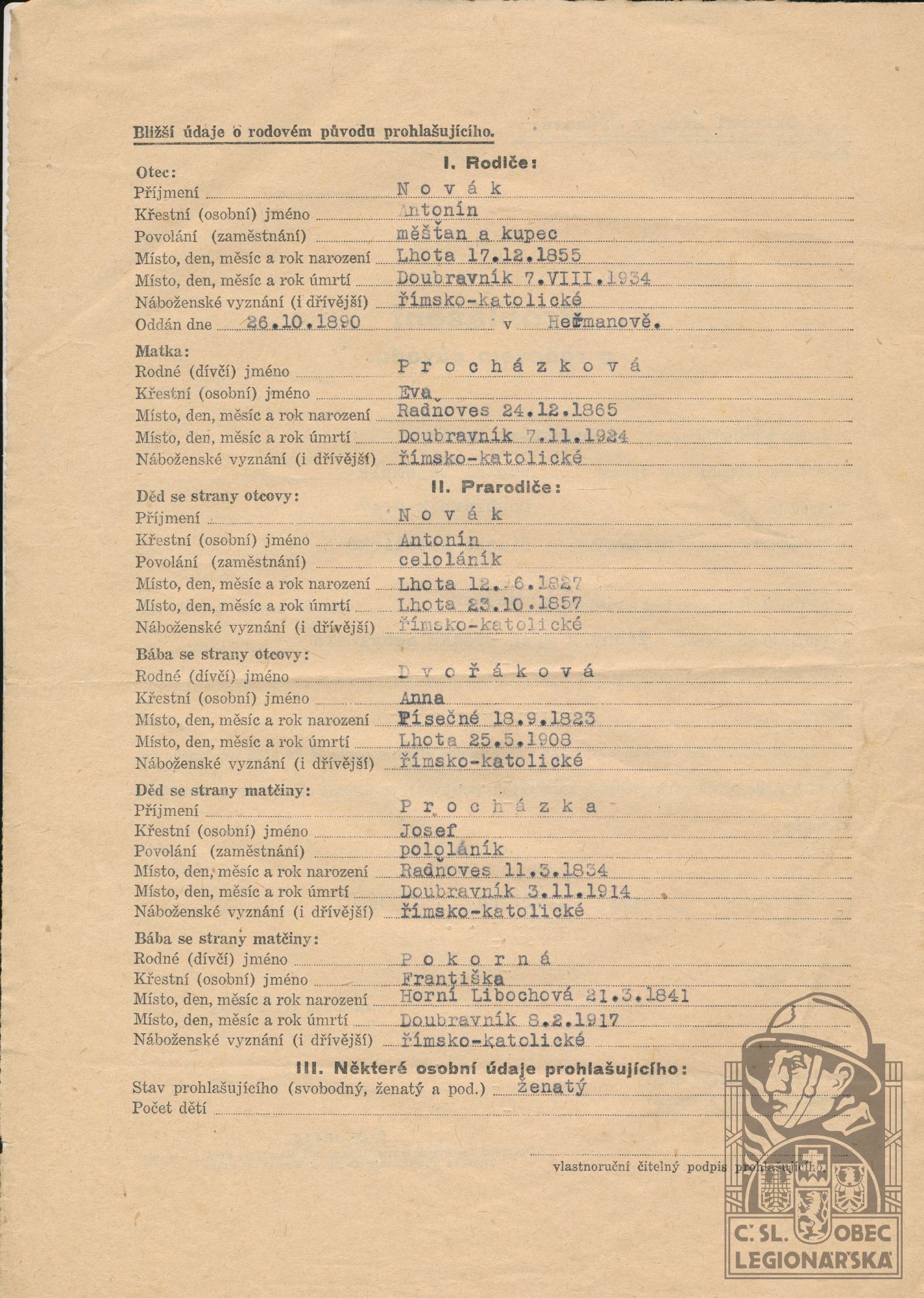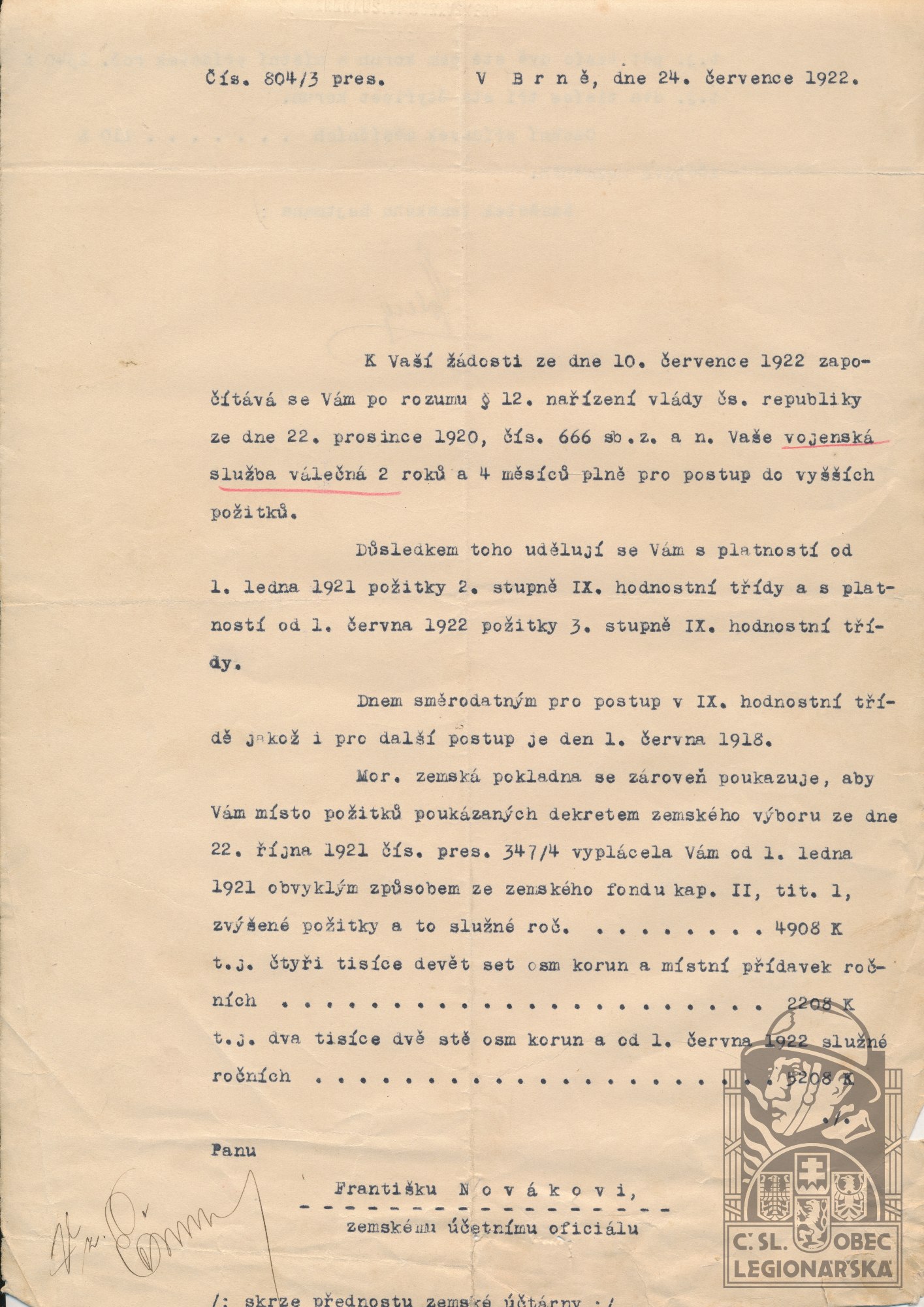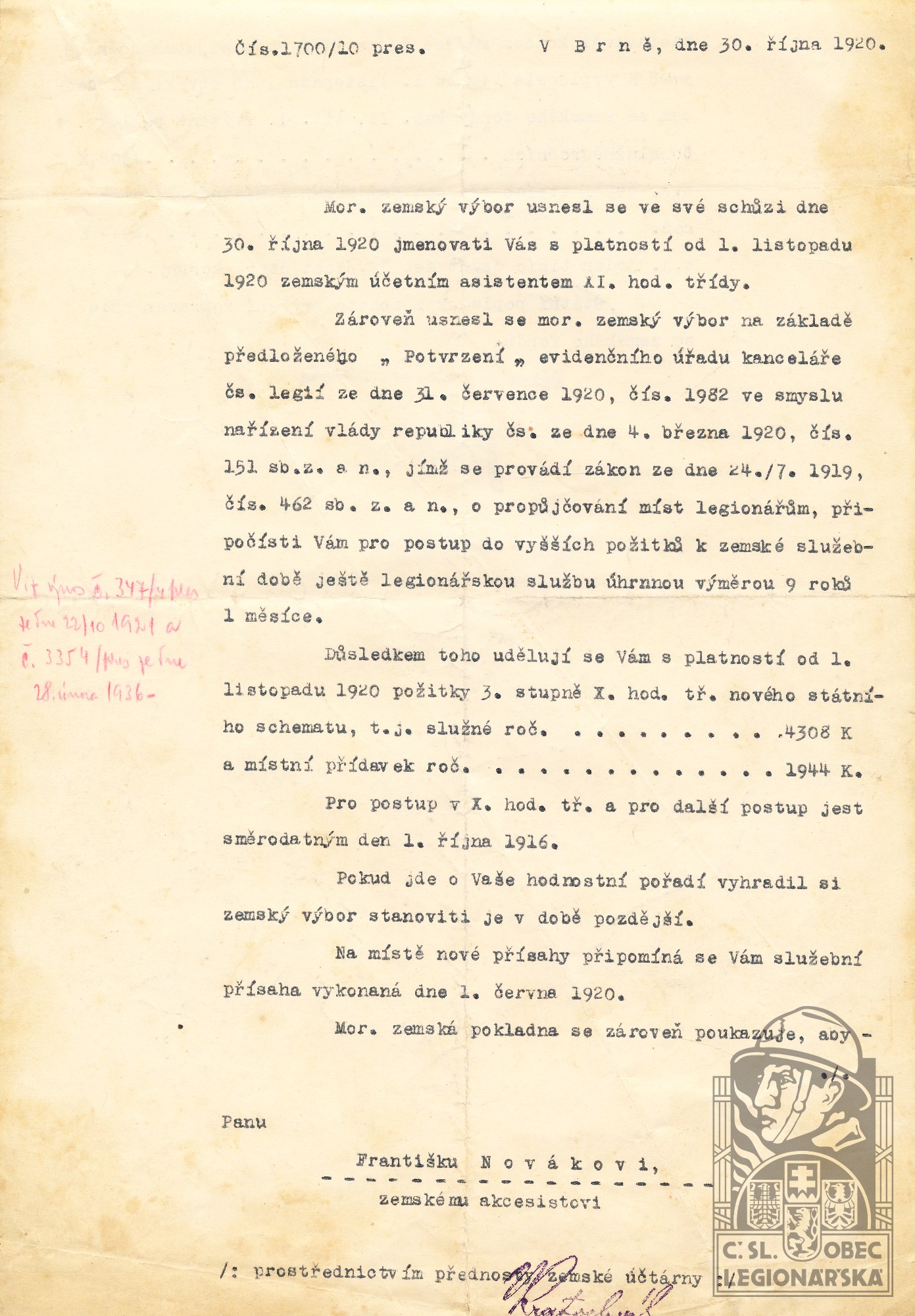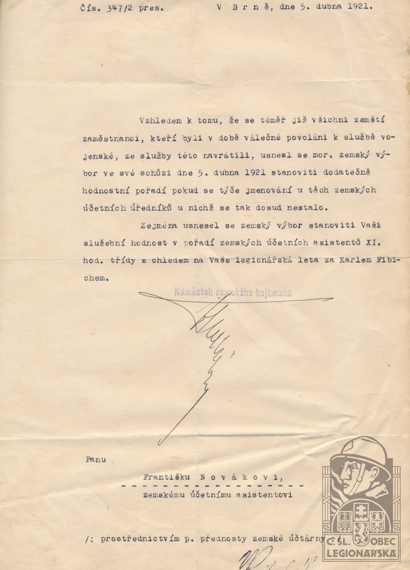Konec v legiích:30.11.1919 ( Demobilizován )