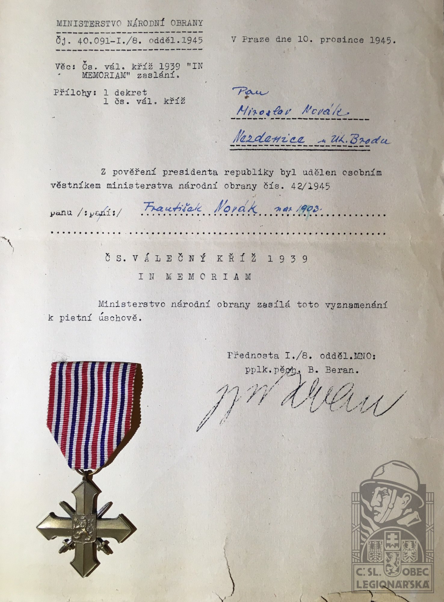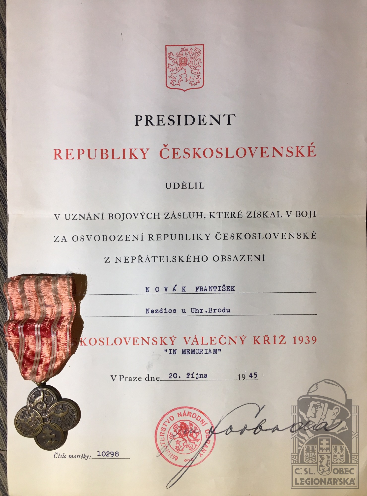 Jednotka v době zařazení:21.stř.pl. ( Čs. legie v Francii )