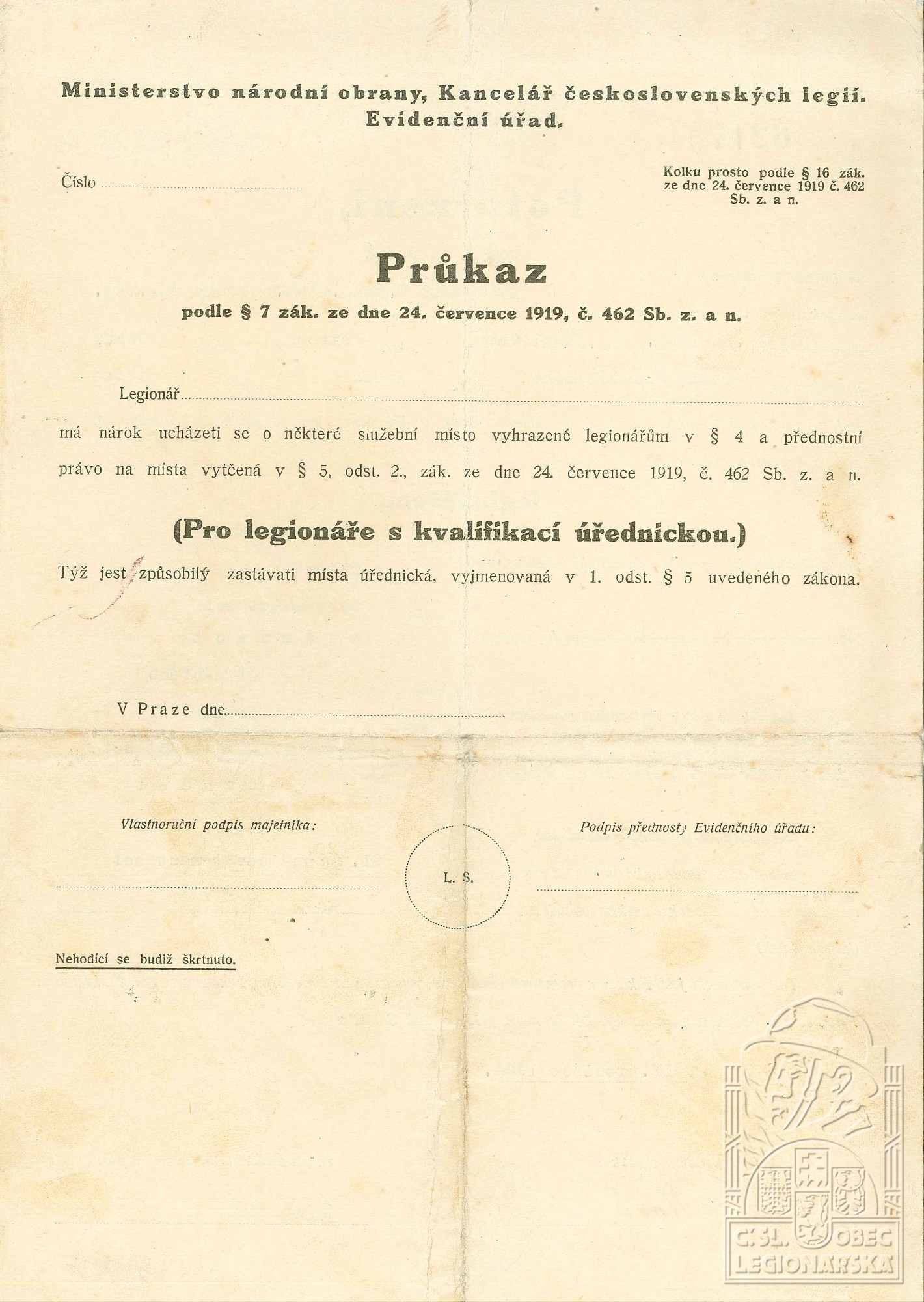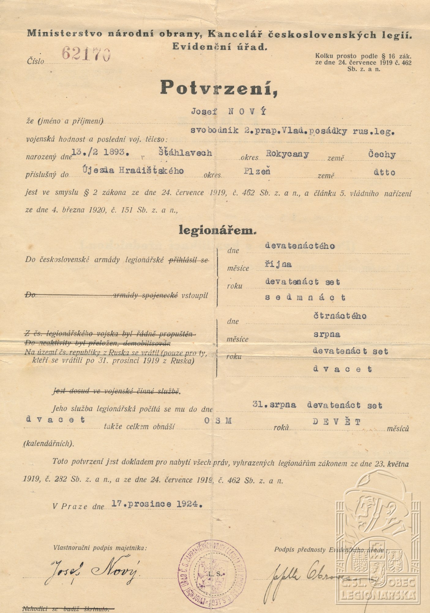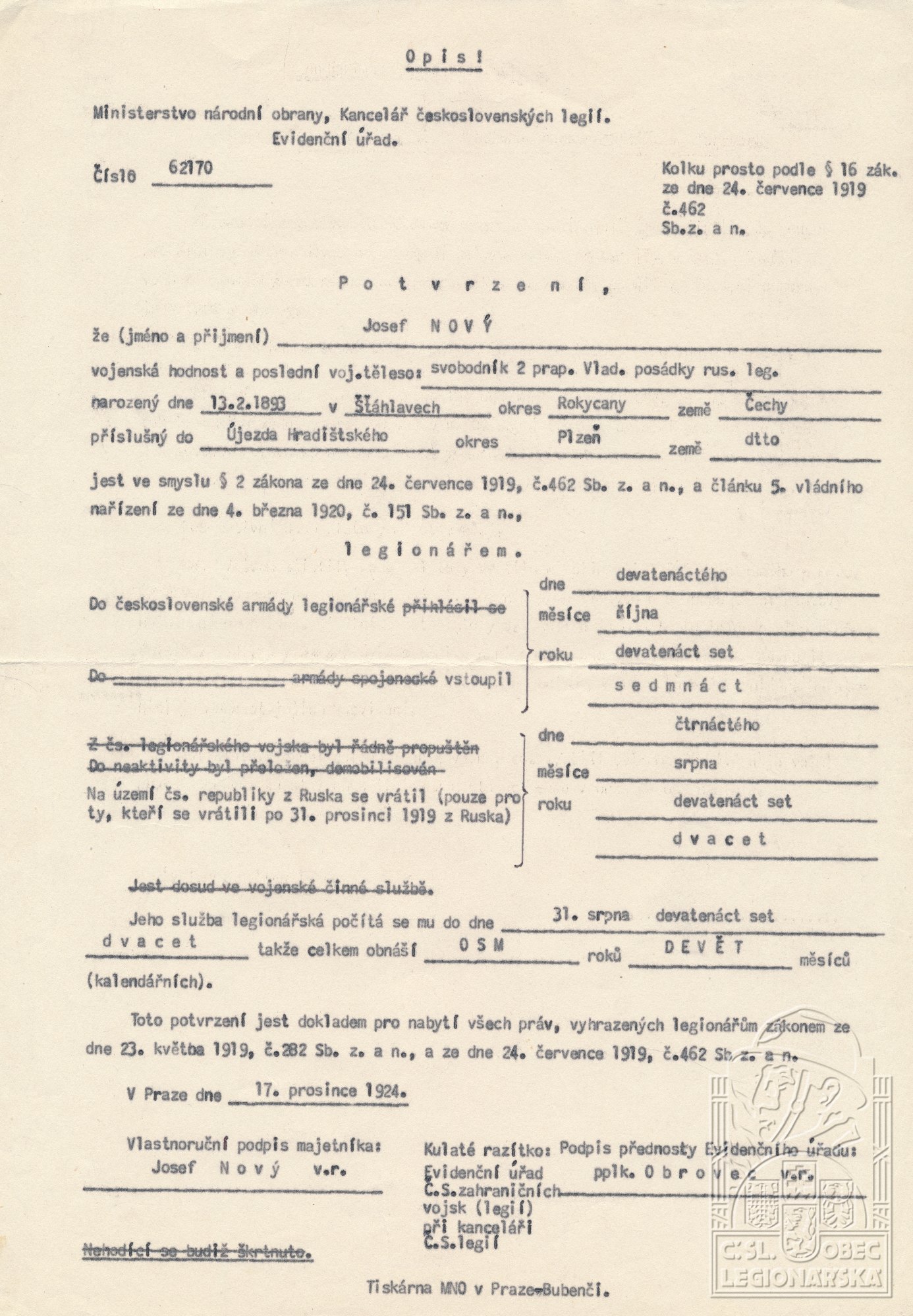 dokumenty spojené s osobou legionáře