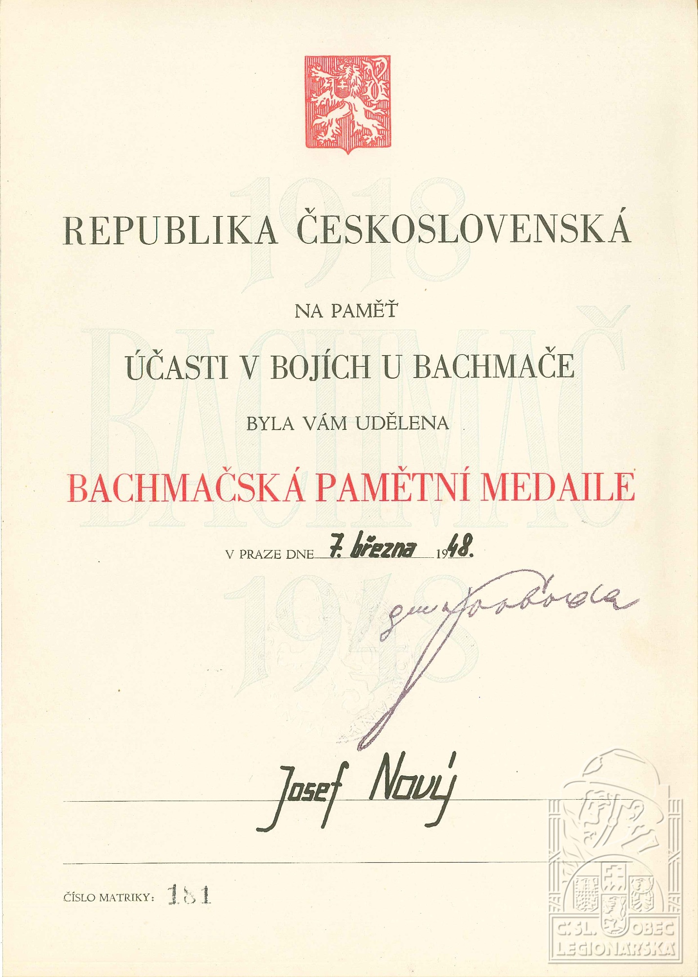 Pomozte nám budovat databázi československých legionářů.