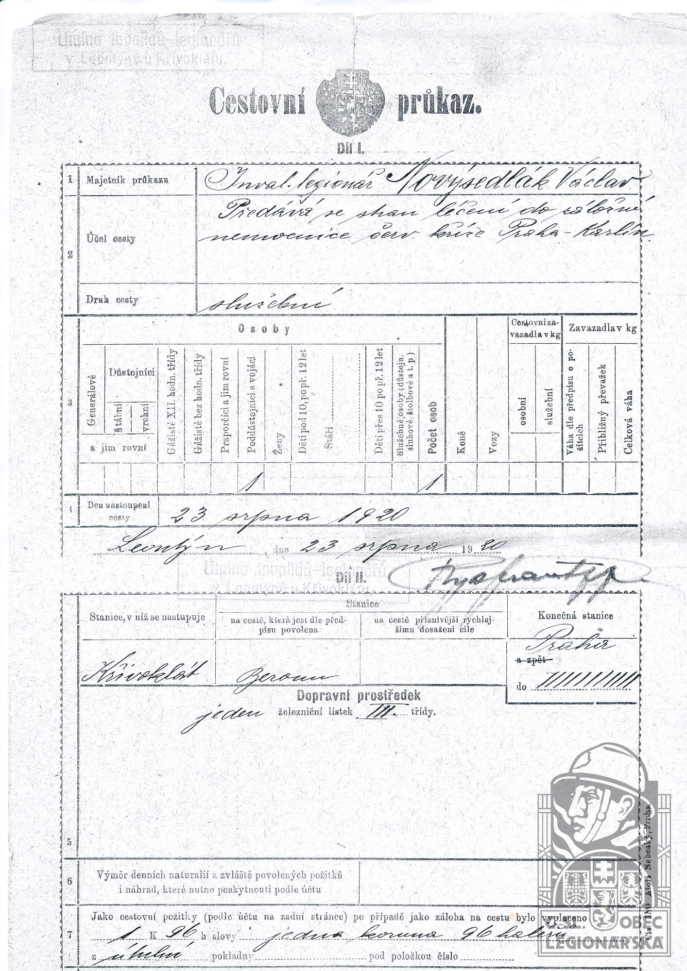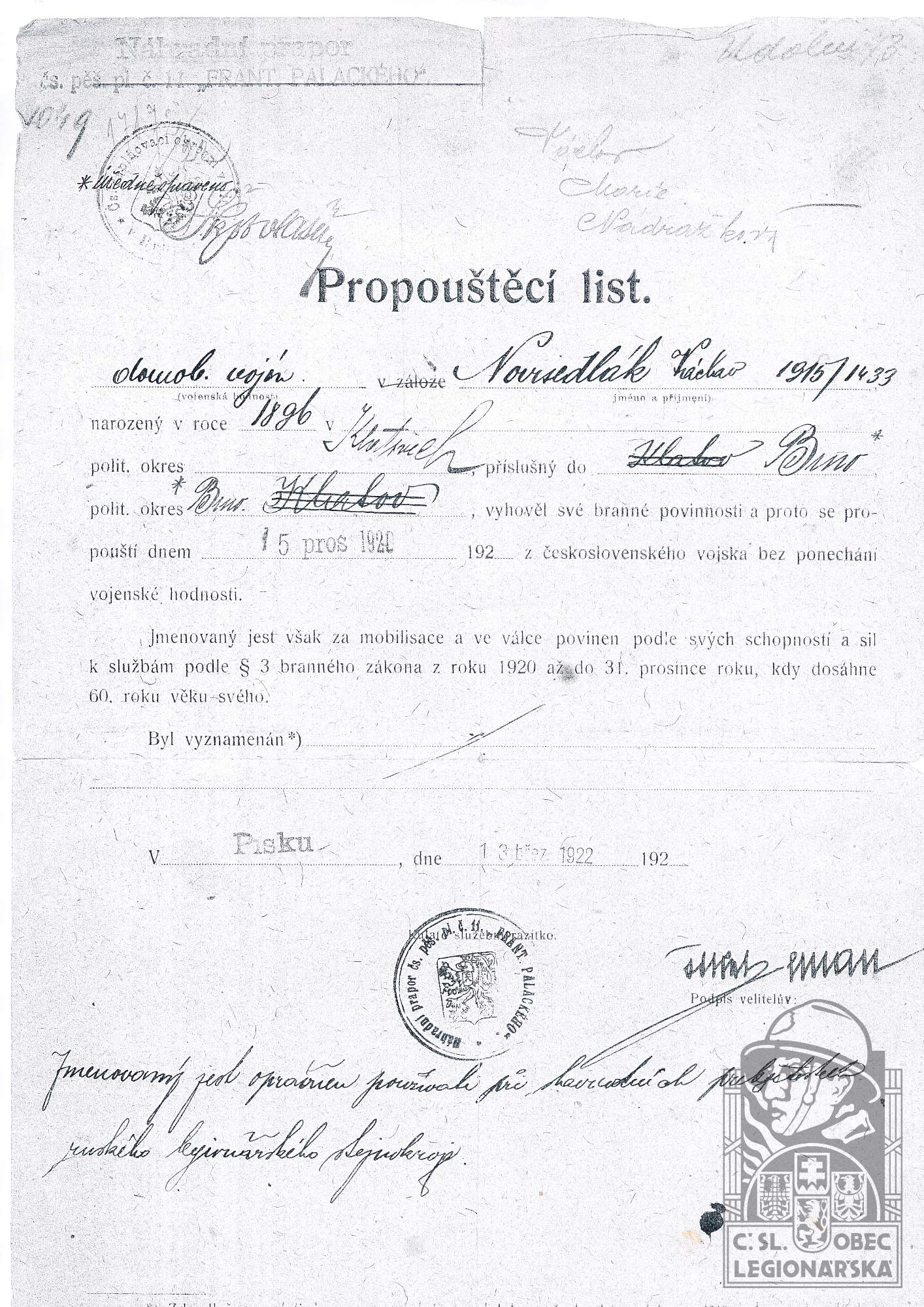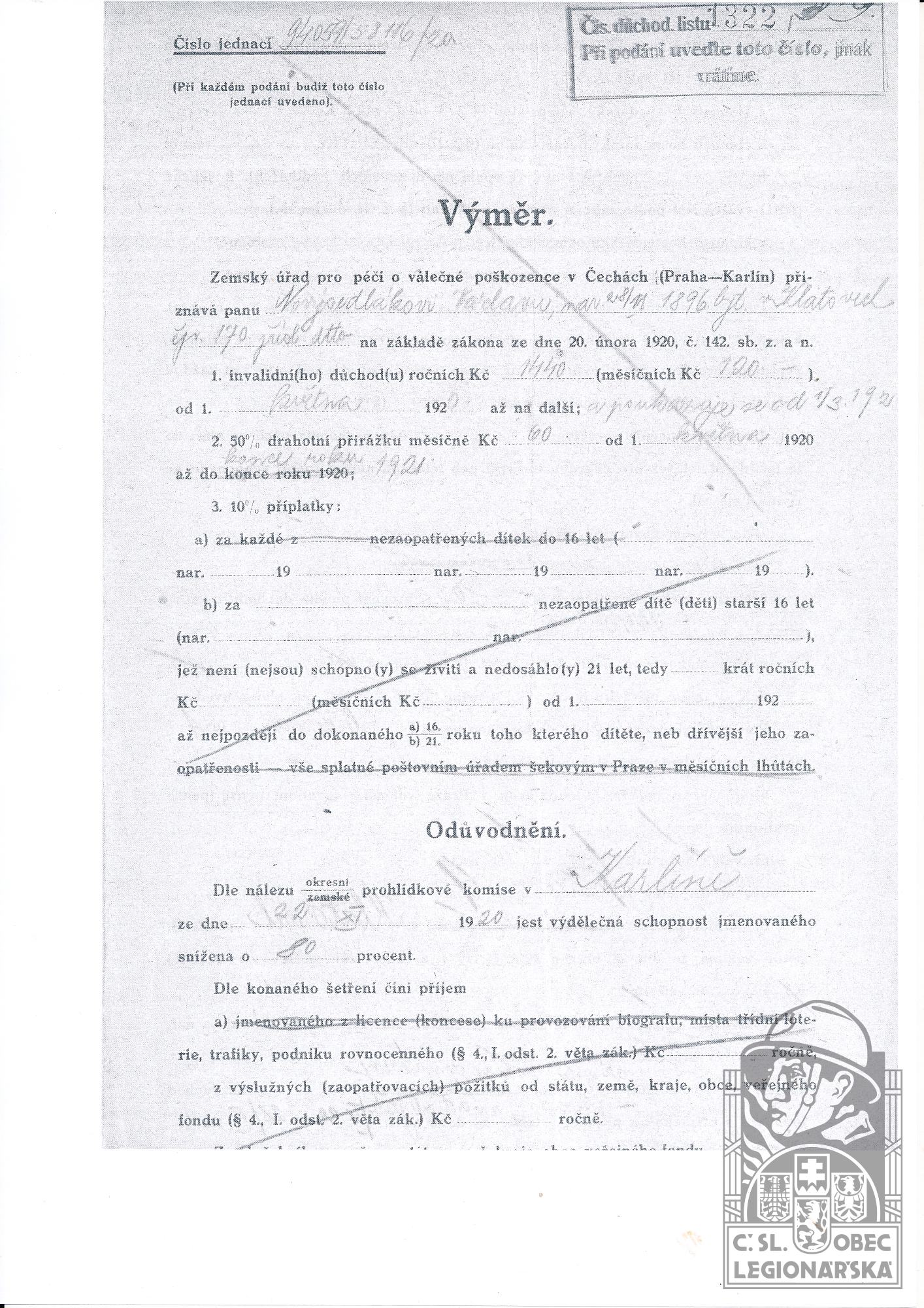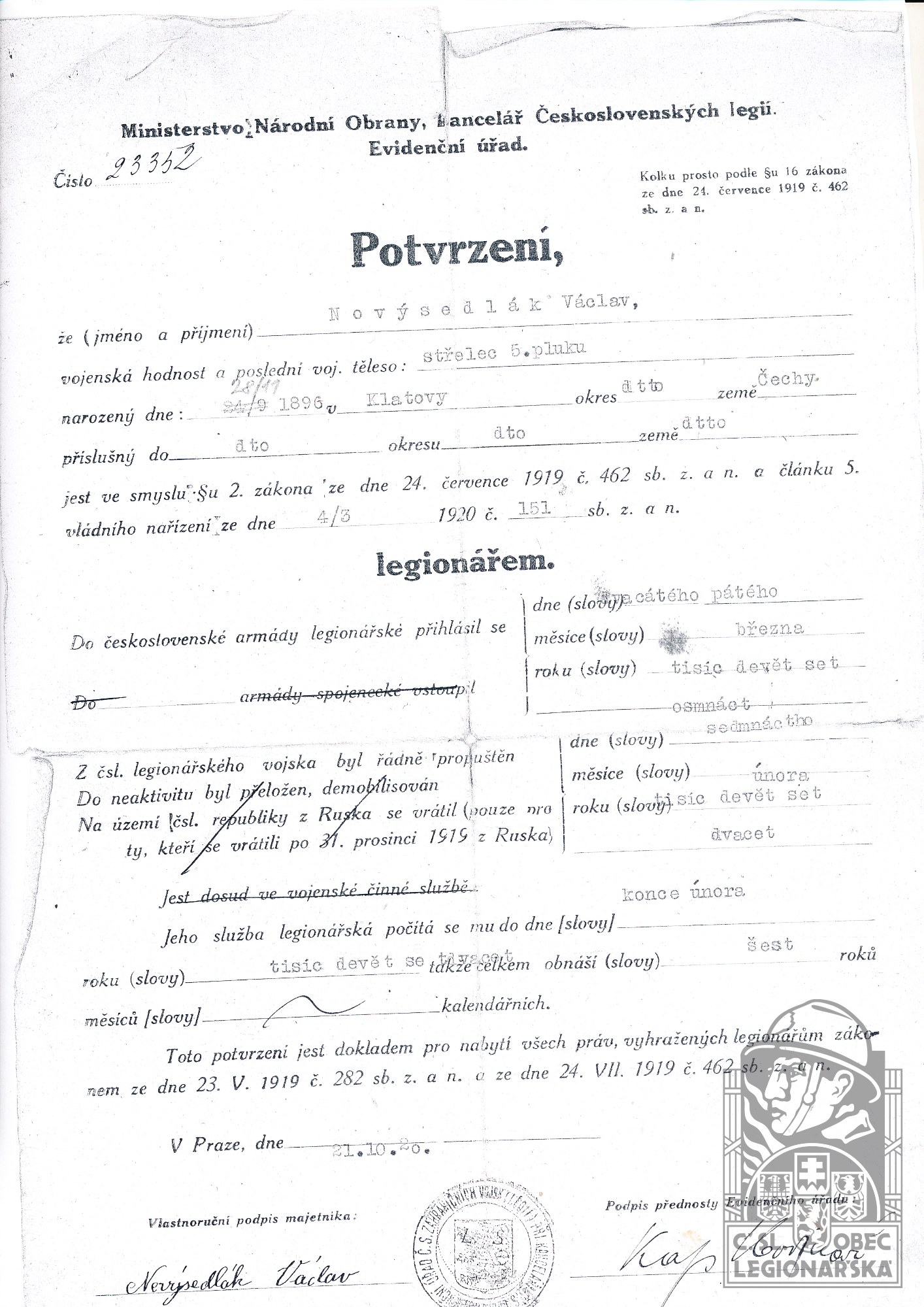 Zdroj informací: legionářský poslužný spis osobní karta legionáře