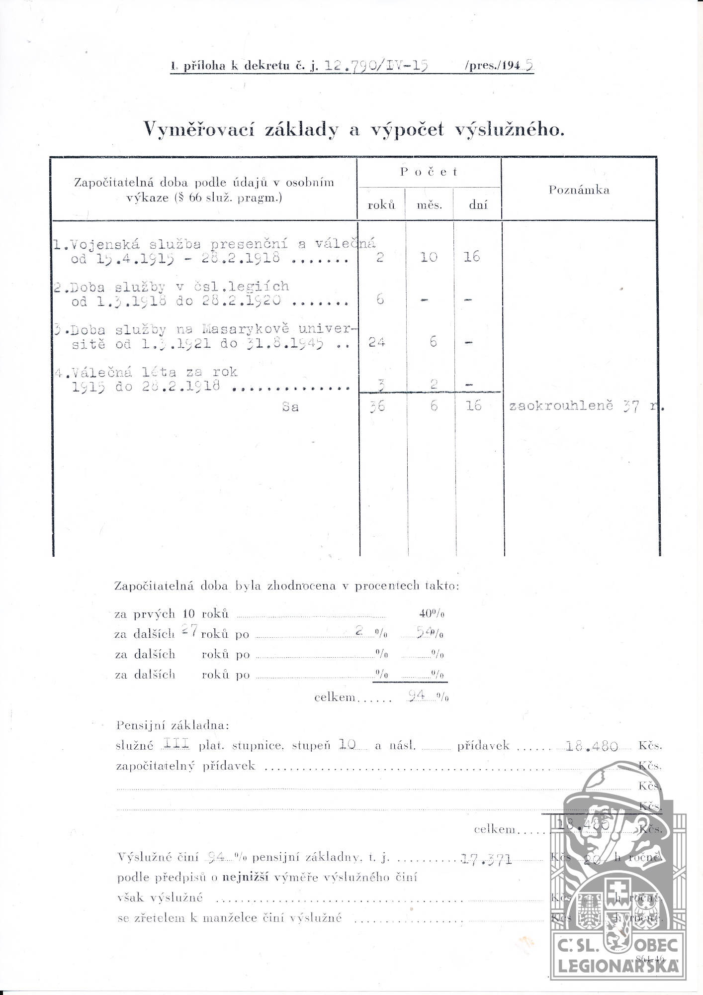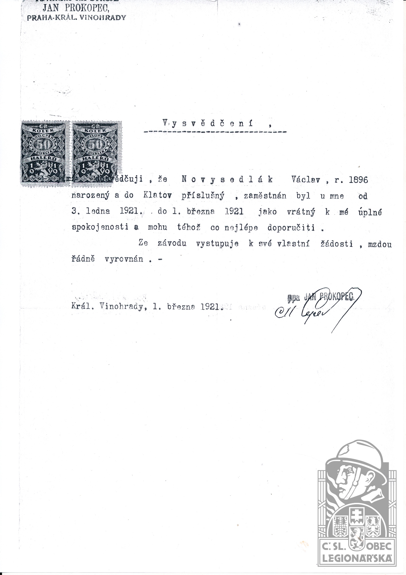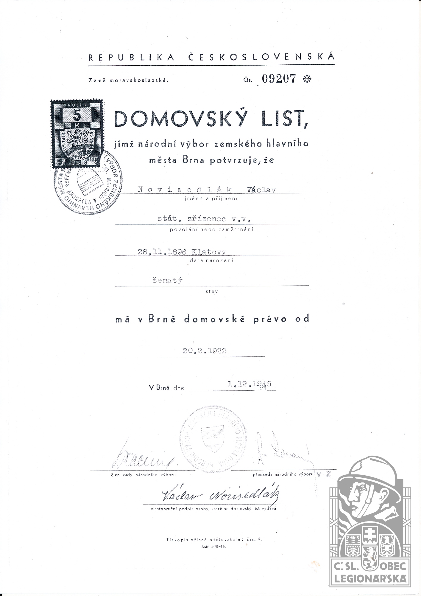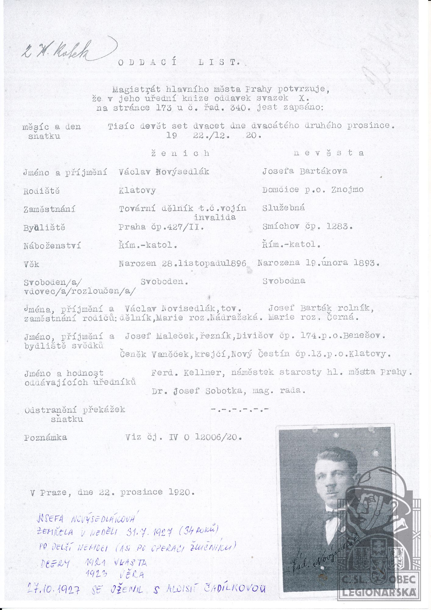 Zdroj informací: legionářský poslužný spis osobní karta legionáře