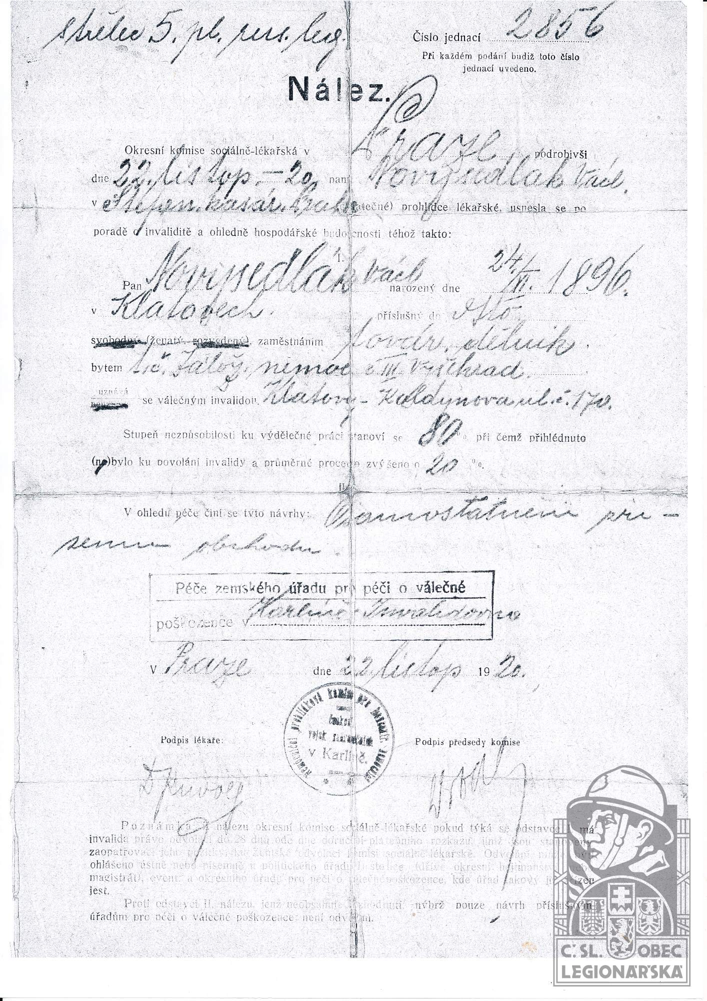 Konec v legiích:1.11.1919 ( Neschopen služby )