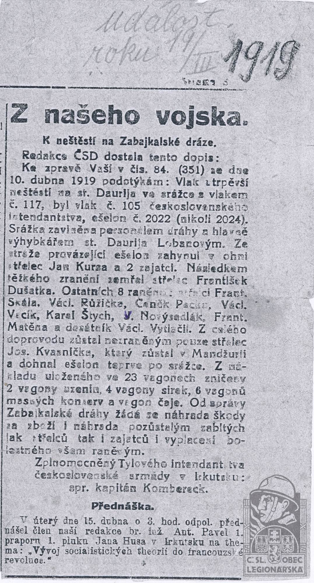 Jednotka v době zařazení:5.stř.pl. ( Čs. legie v Rusku )