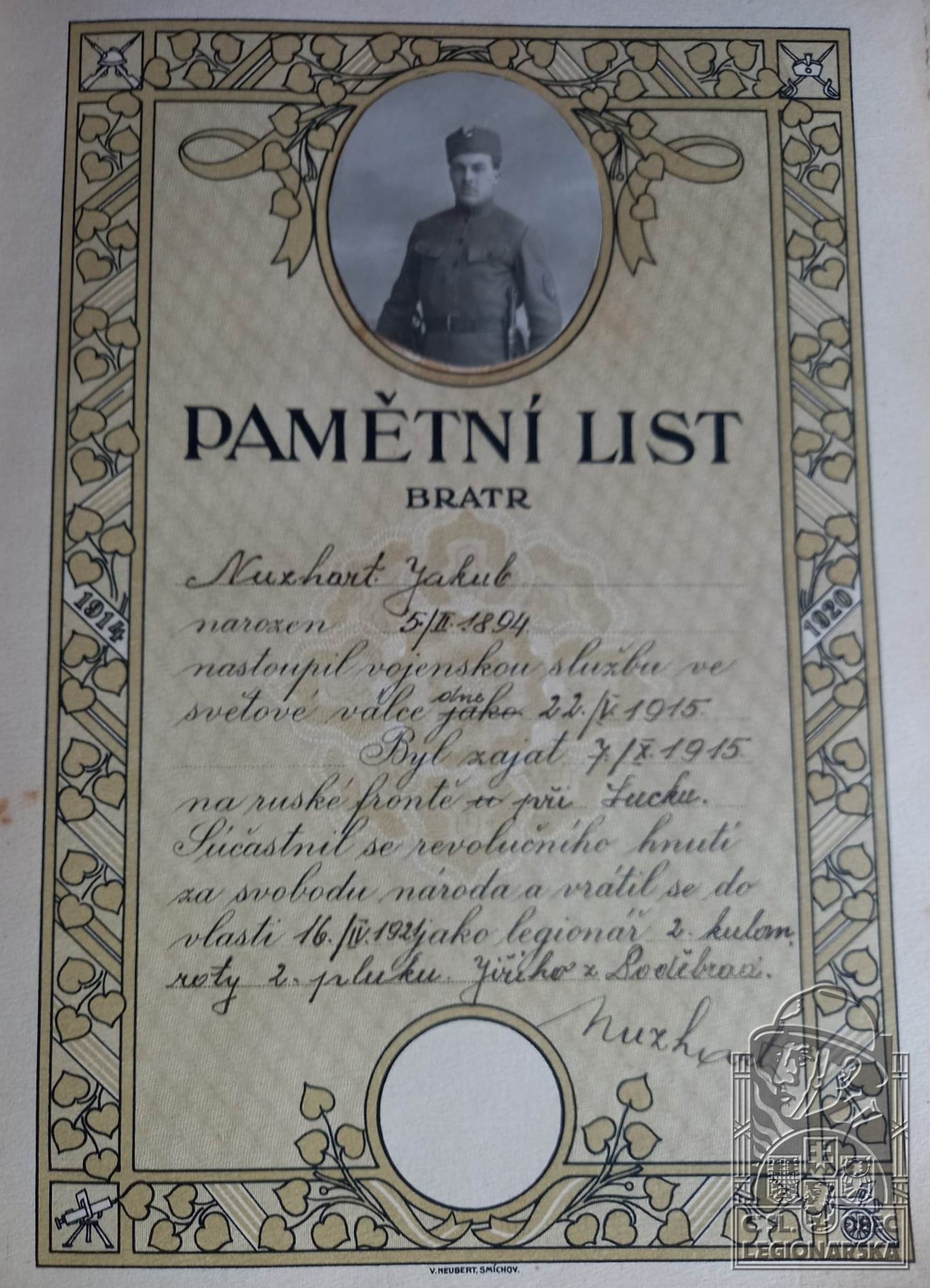 Zdroj informací: legionářský poslužný spis