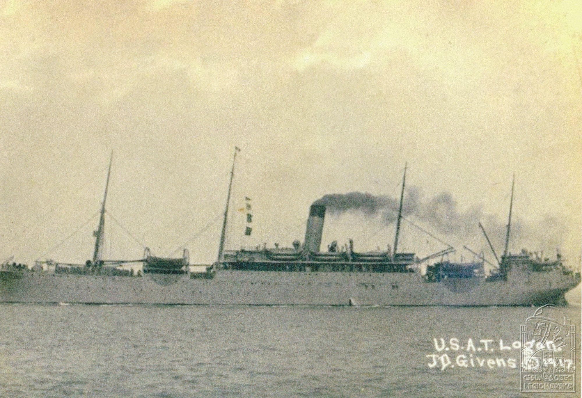 Číslo transportu do vlasti a název lodi:33. transport, loď USAT Logan