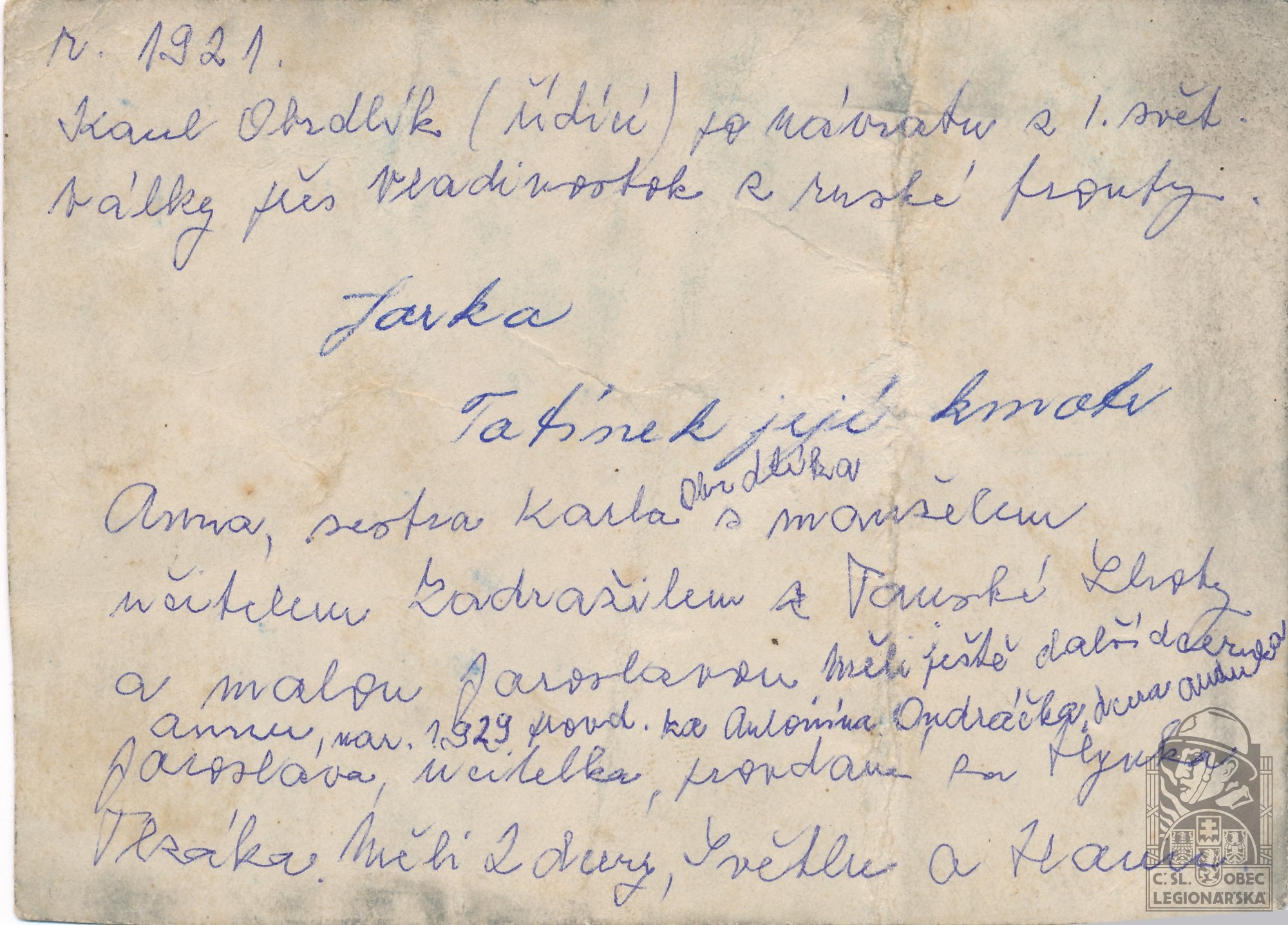 dokumenty spojené s osobou legionáře