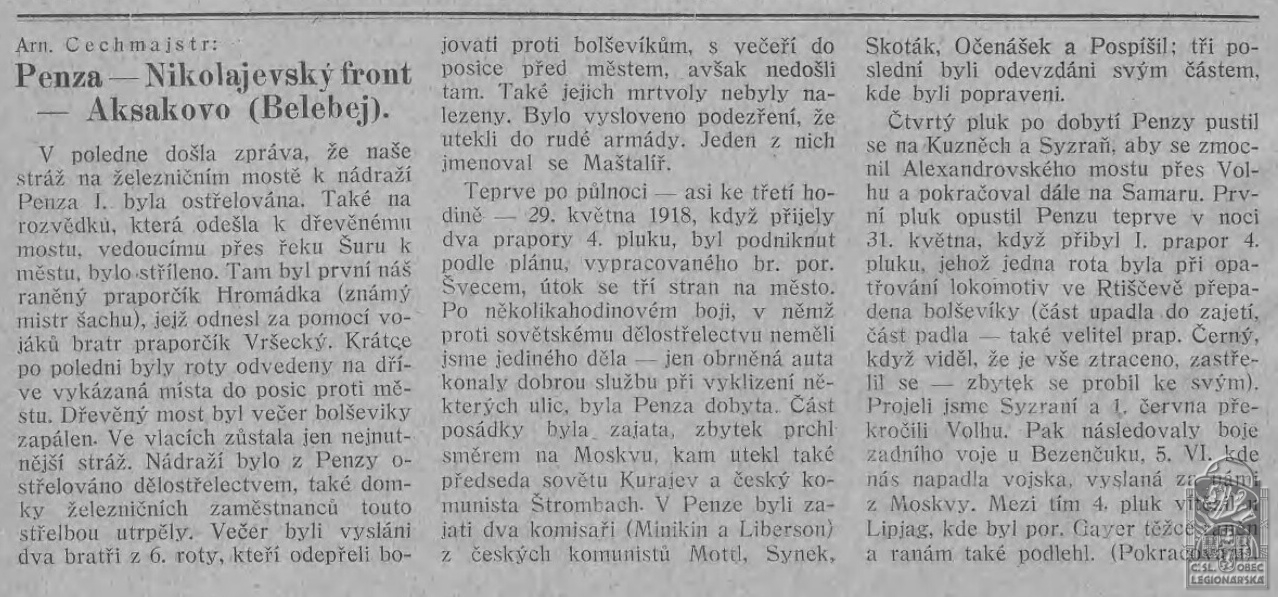 Poznámka:Dezertoval k Rudé armádě, naposledy sloužil u: 1. Penzenský čs. revoluční pluk, zajt 29.5.1918, zlynčován 5.5.1918 legionáři u Lipjag; není legionářem podle zákona