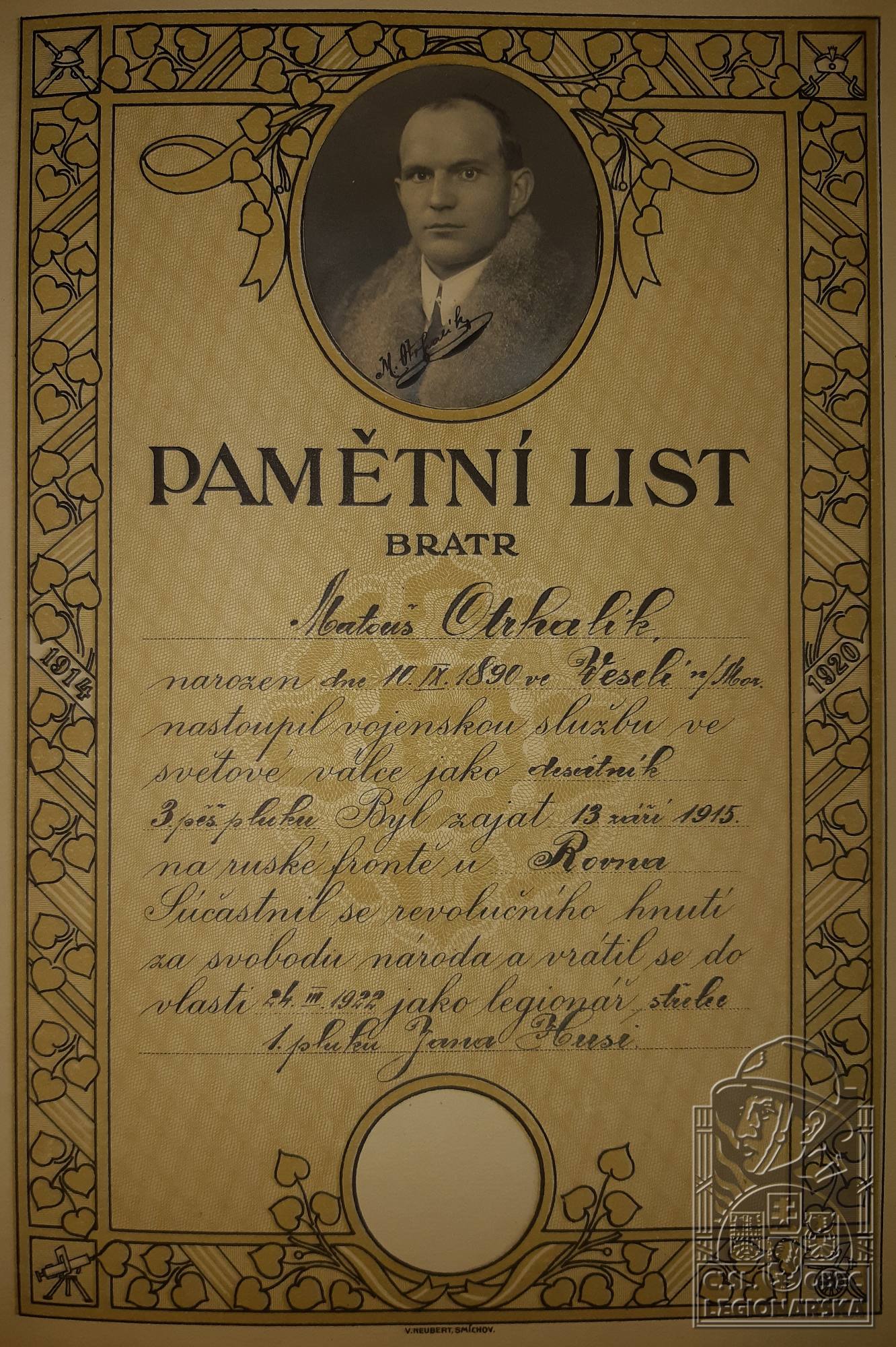 Zdroj informací: legionářský poslužný spis osobní karta legionáře
