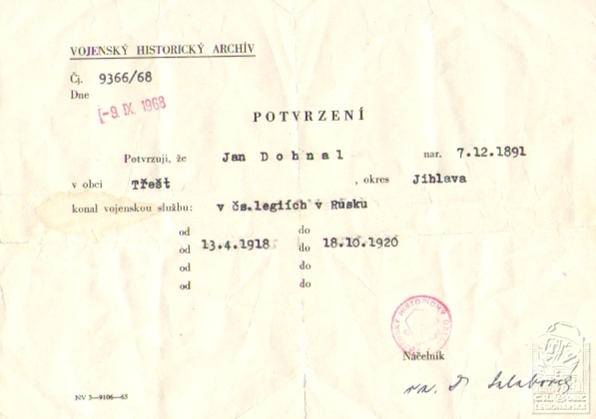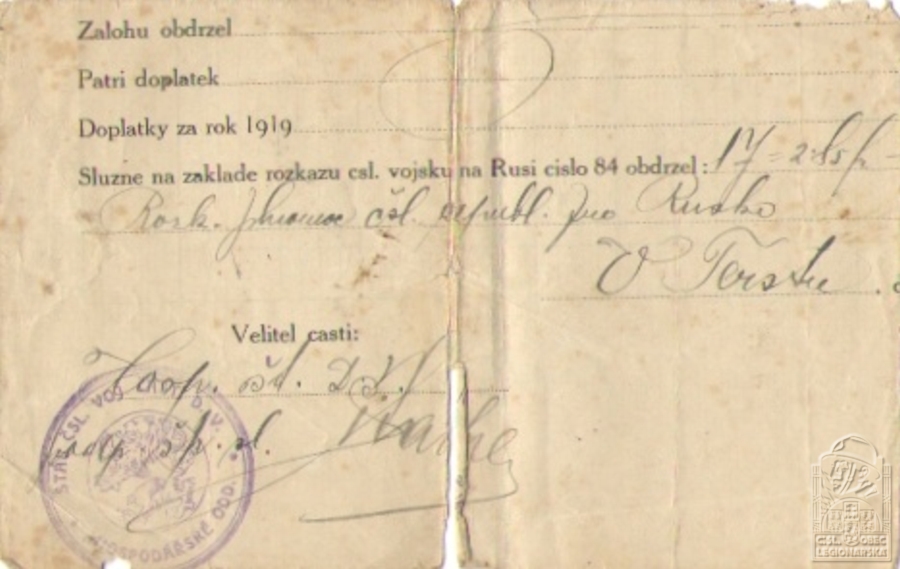 Jednotka v době zařazení:9.stř.pl. ( Čs. legie v Rusku )