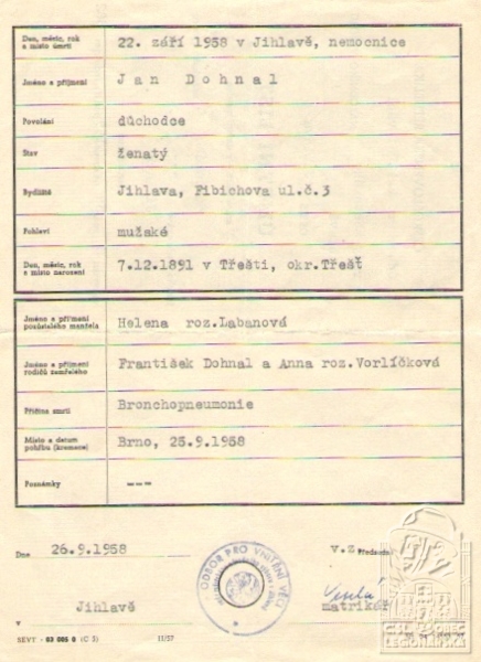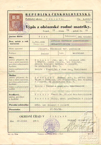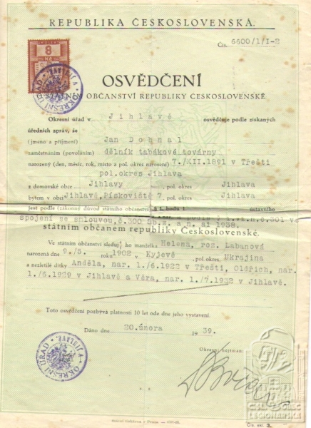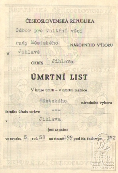 Zdroj informací: legionářský poslužný spis osobní karta legionáře