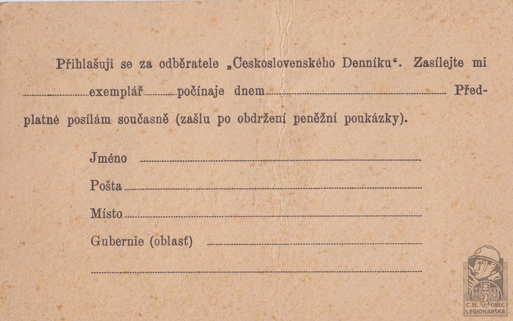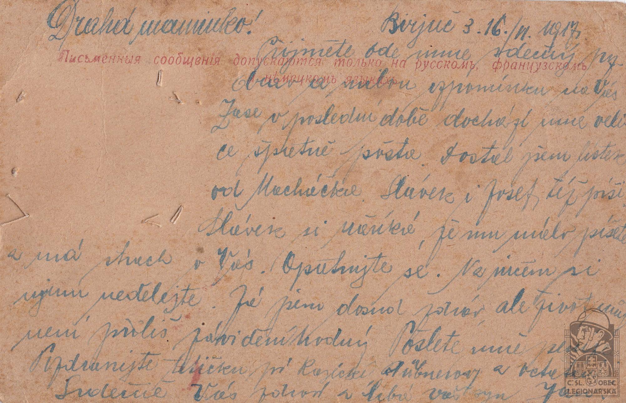 Datum podání přihlášky do legií:9.3.1917