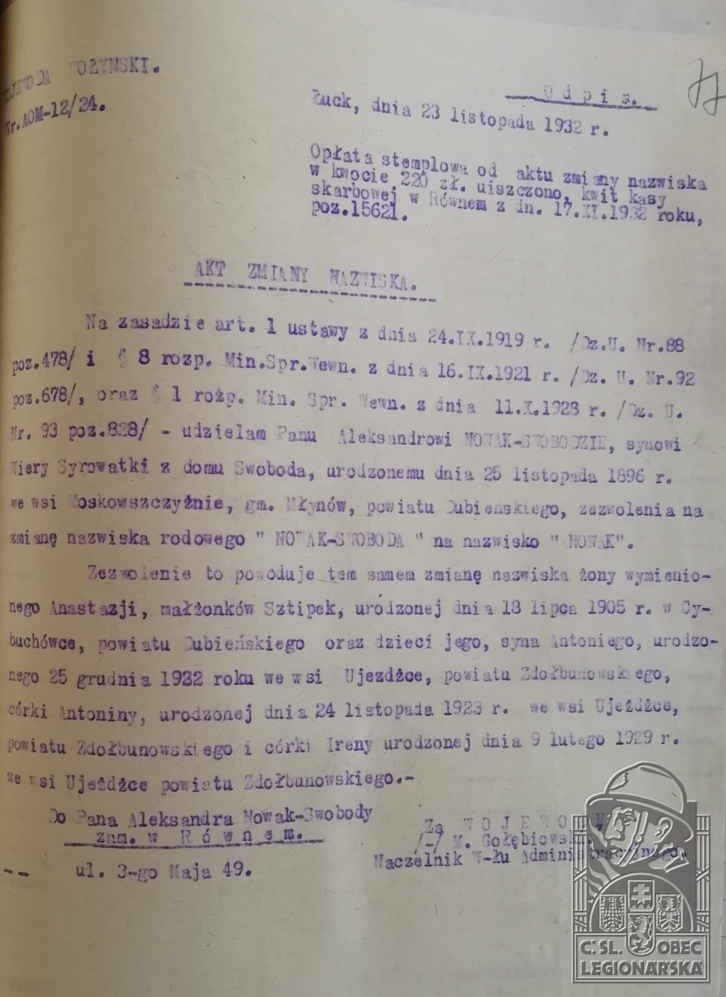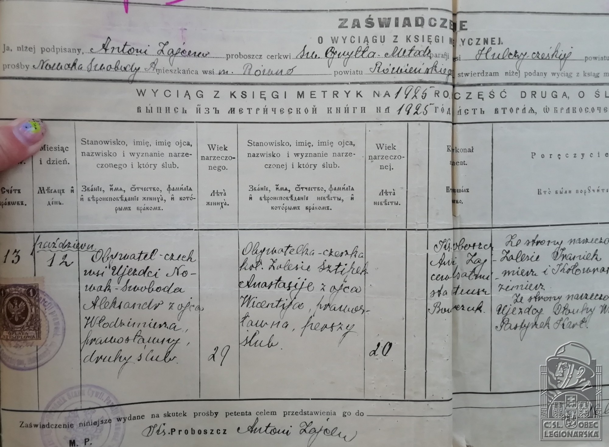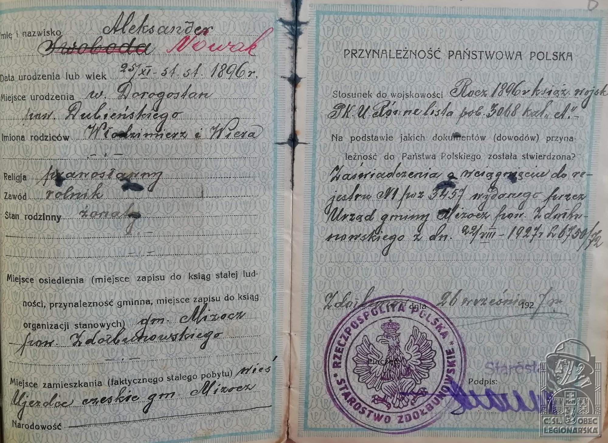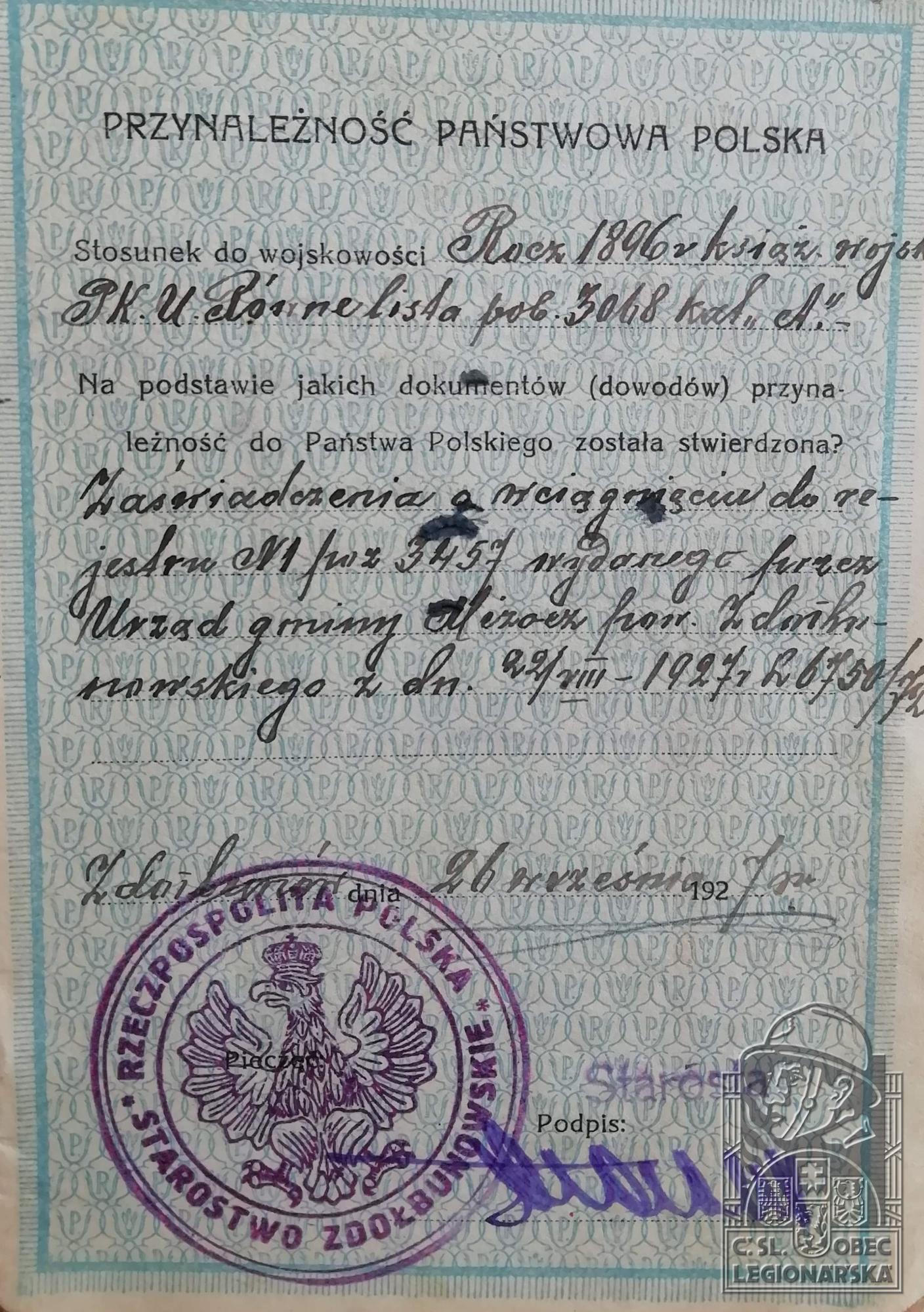 Poznámka:Odešel z legií. Působil jako rotmistr u pěšího pluku č. 16 v Tornale na Slovensku. Po návratu Volyňských Čechů po roce 1945 se usadil v Údlicích.