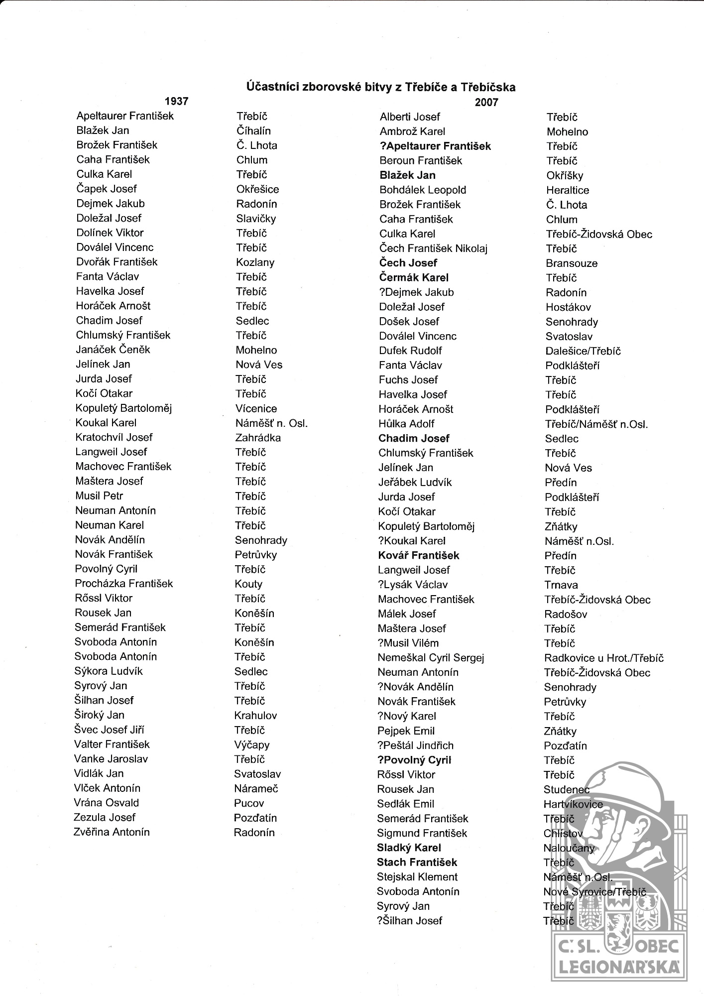 Databázi spravuje Československá obec legionářská