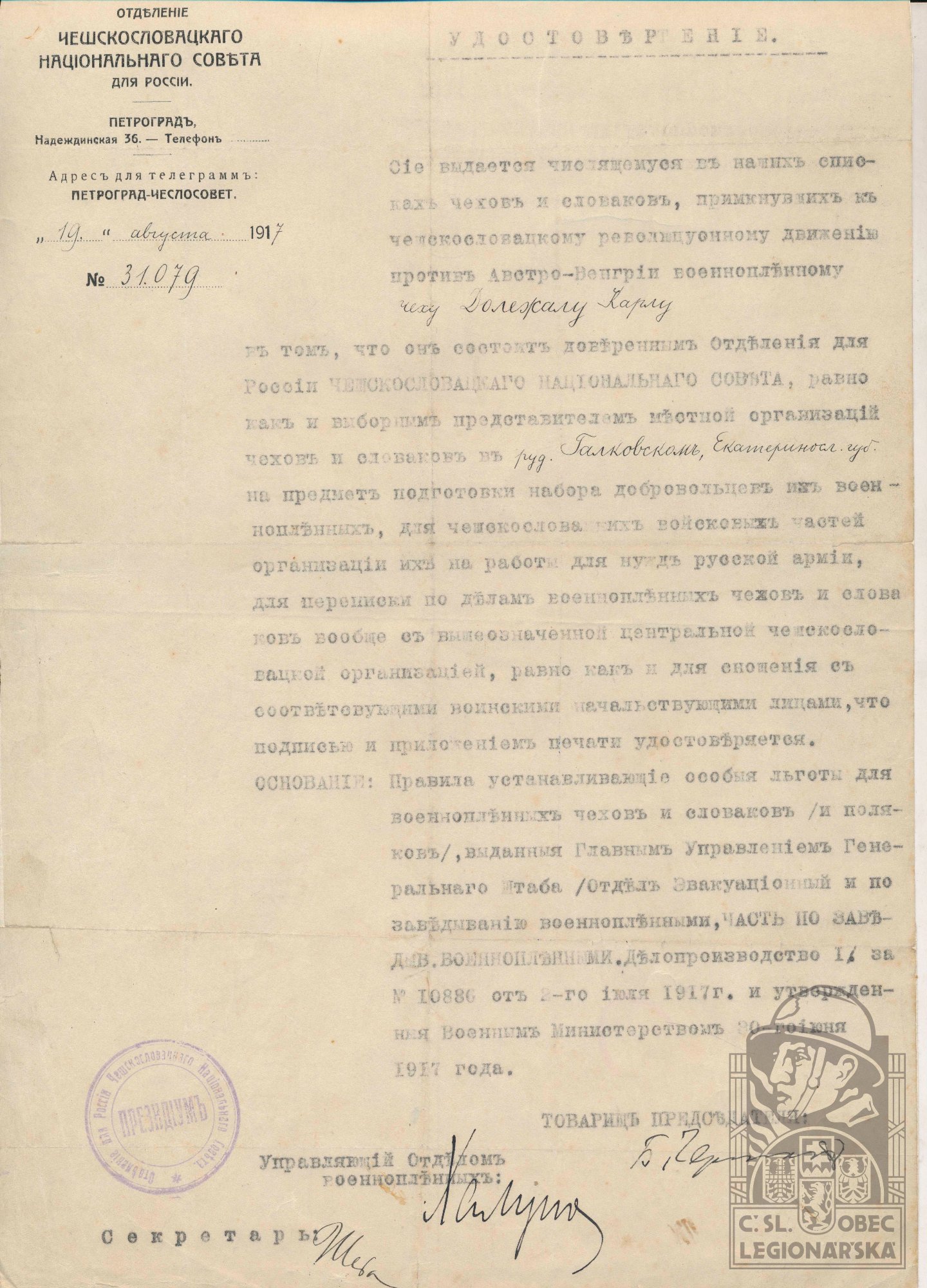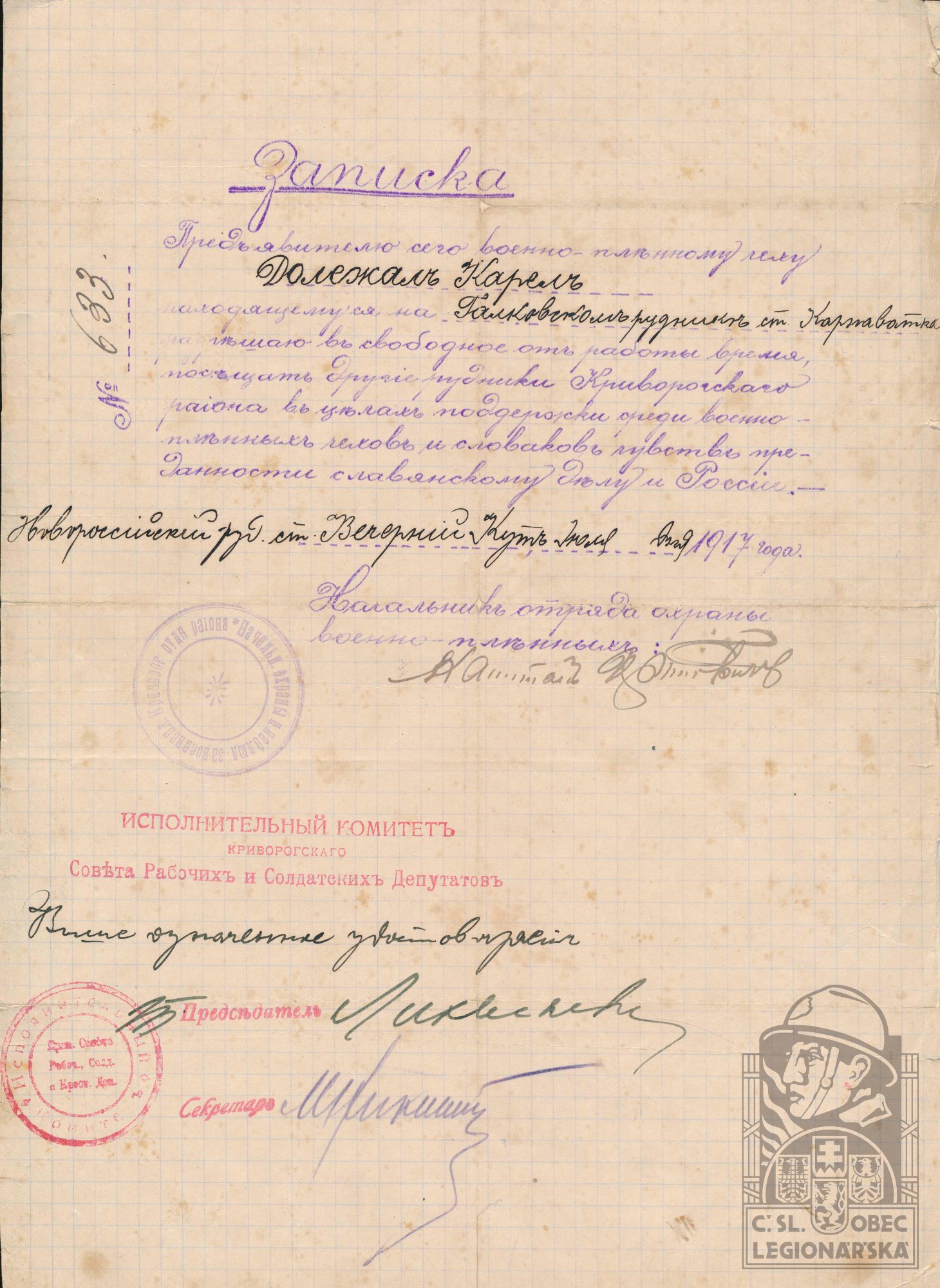 Jednotka v době zařazení:5.stř.pl. ( Čs. legie v Rusku )