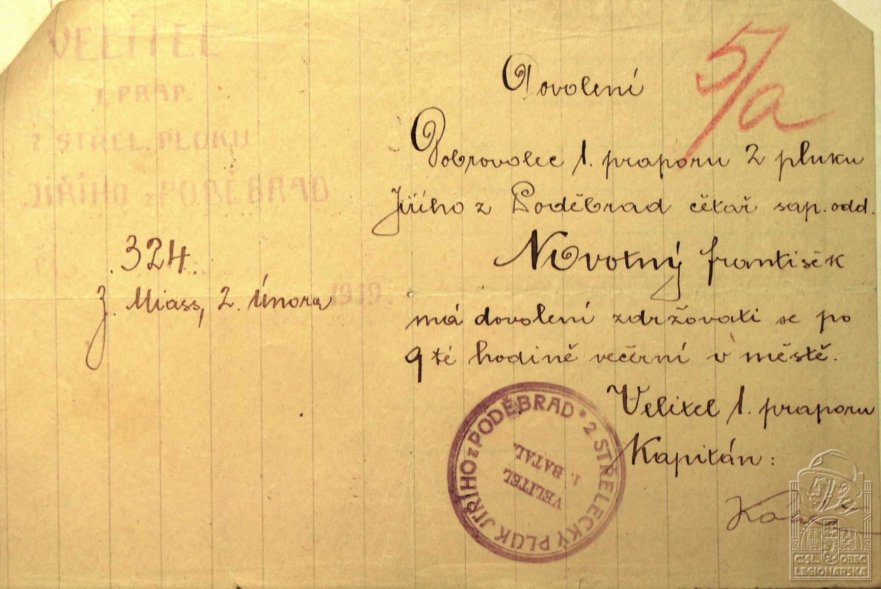 Jednotka v době zařazení:2.stř.pl. ( Čs. legie v Rusku )