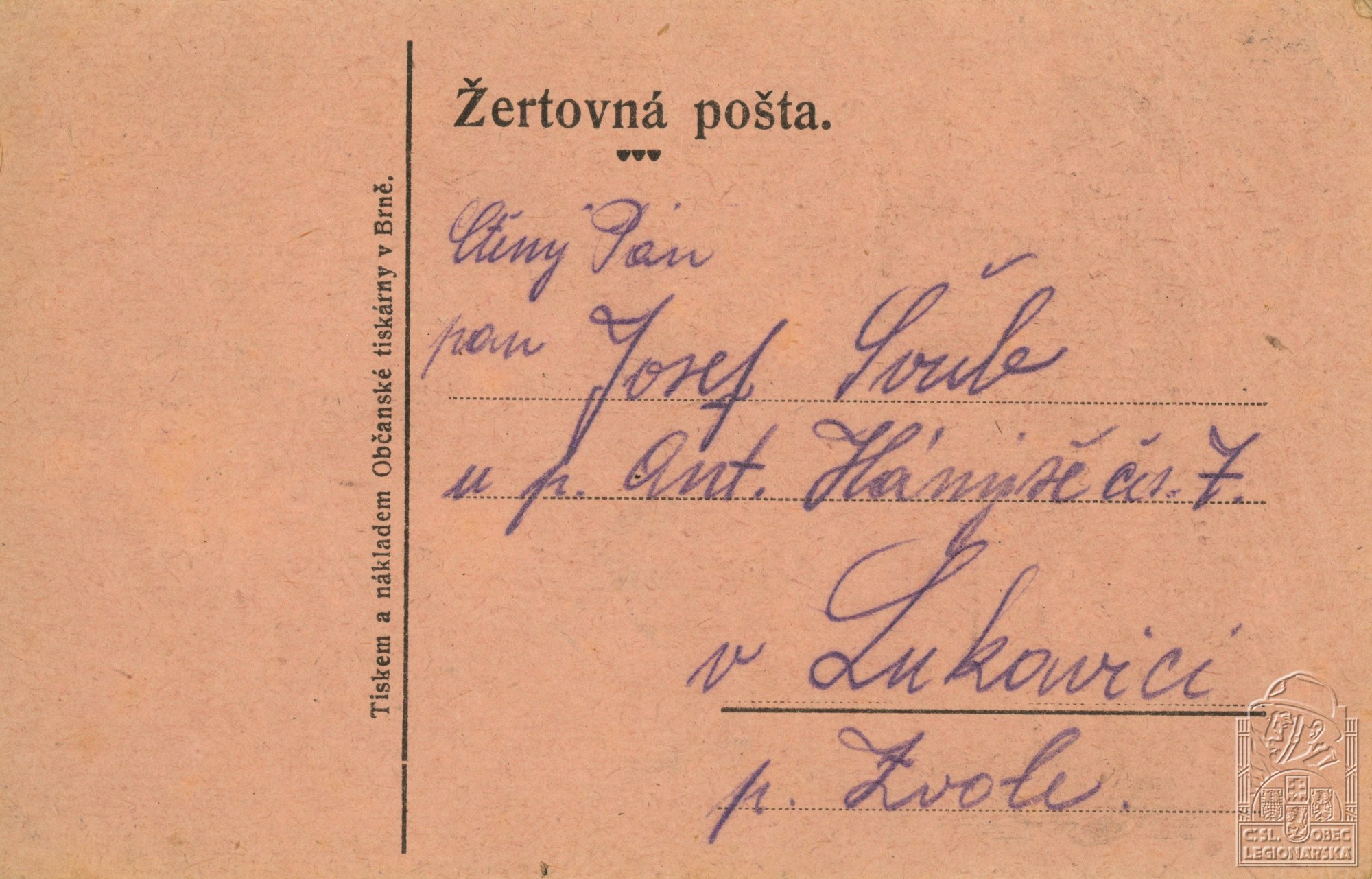 Zdroj informací: legionářský poslužný spis osobní karta legionáře