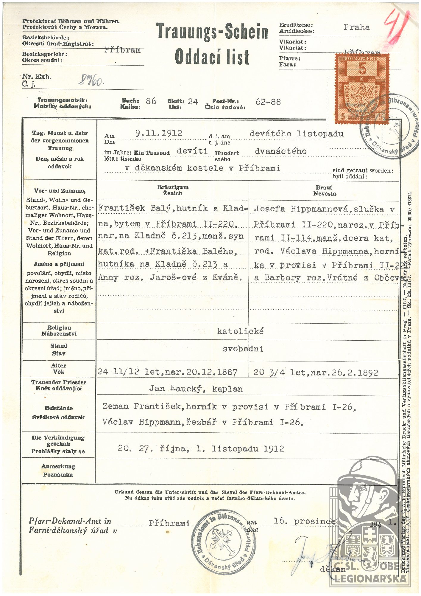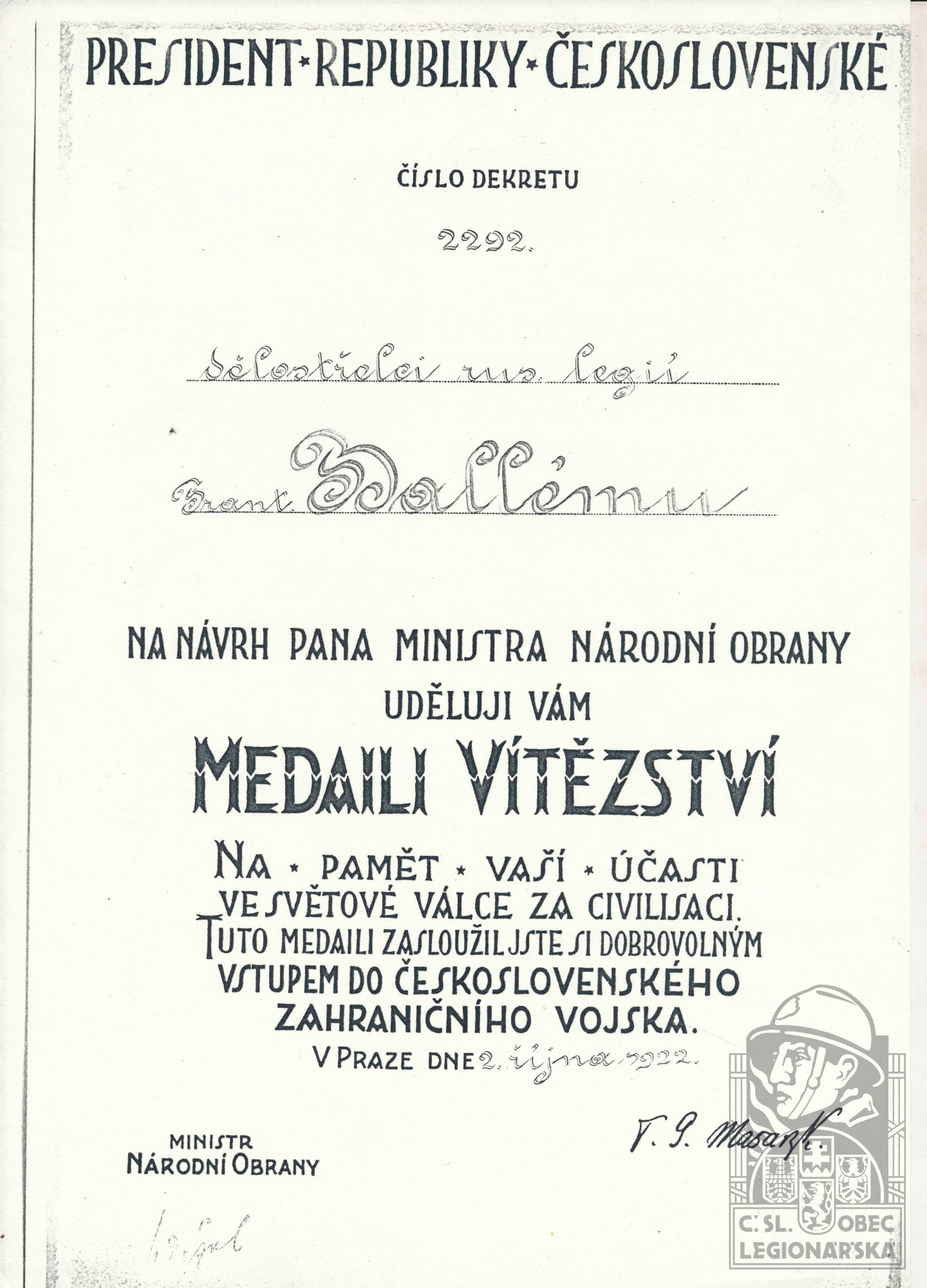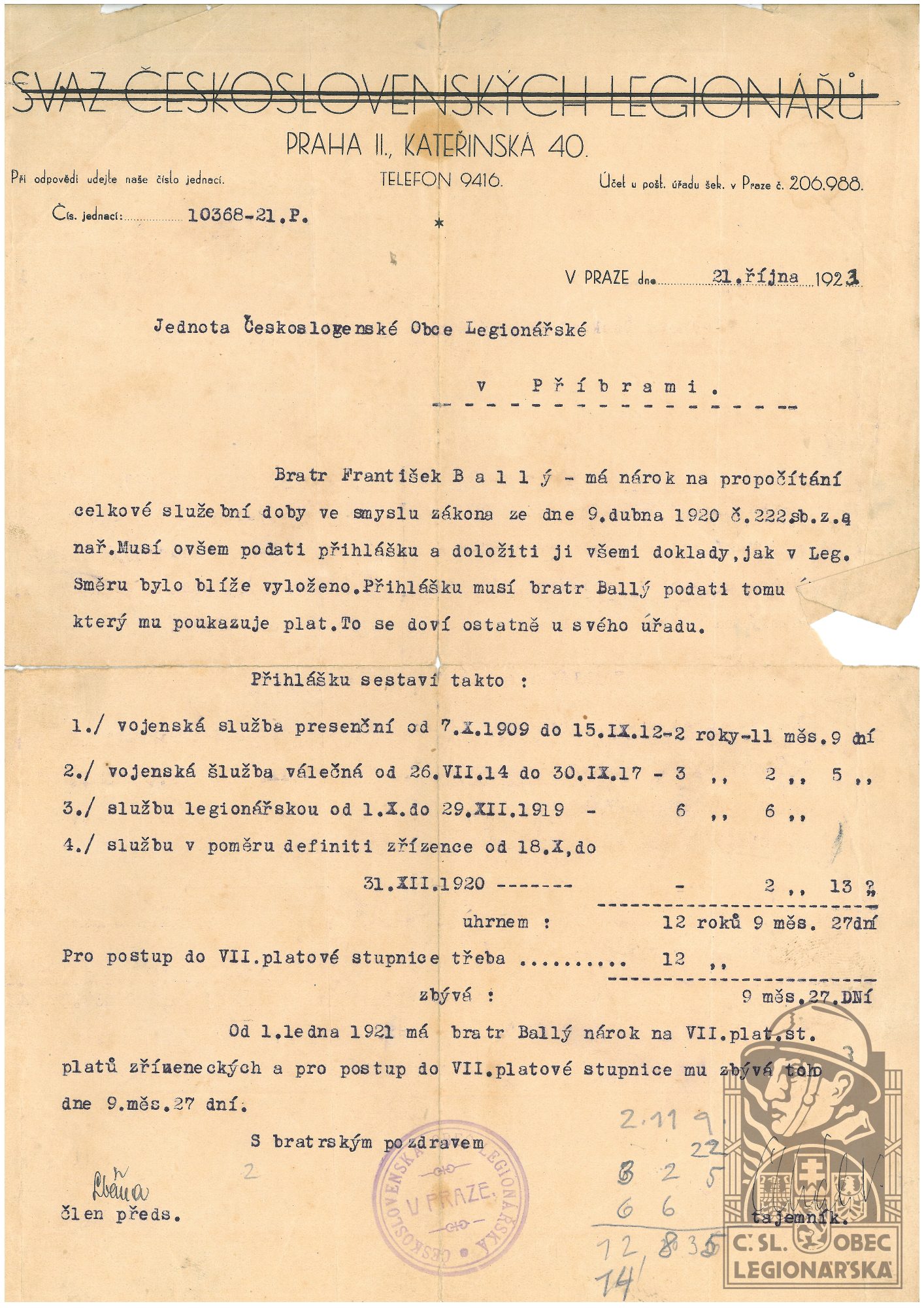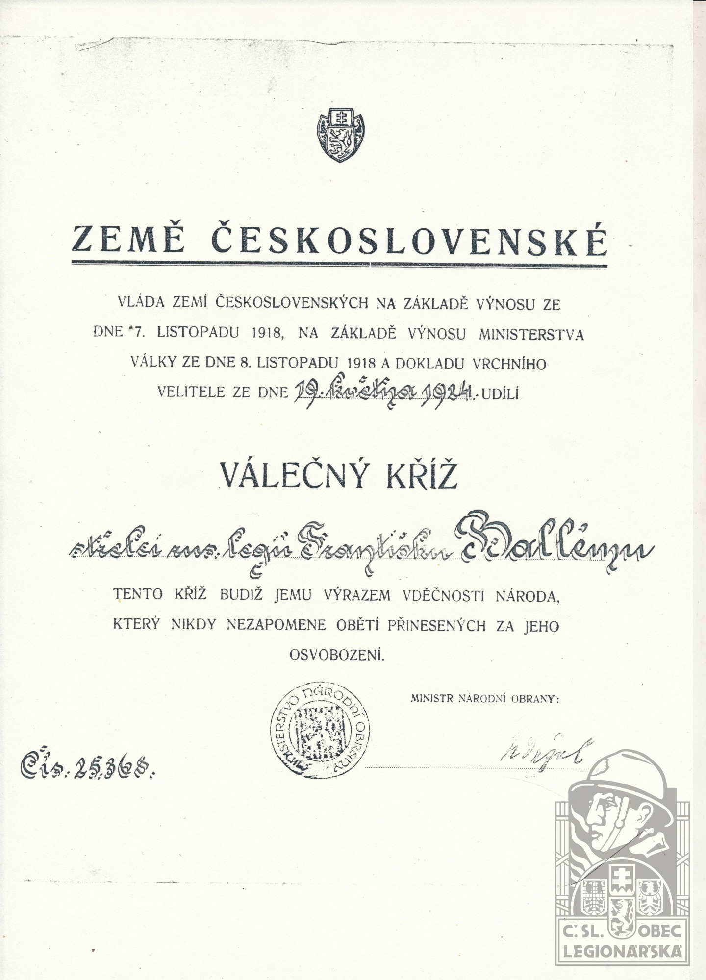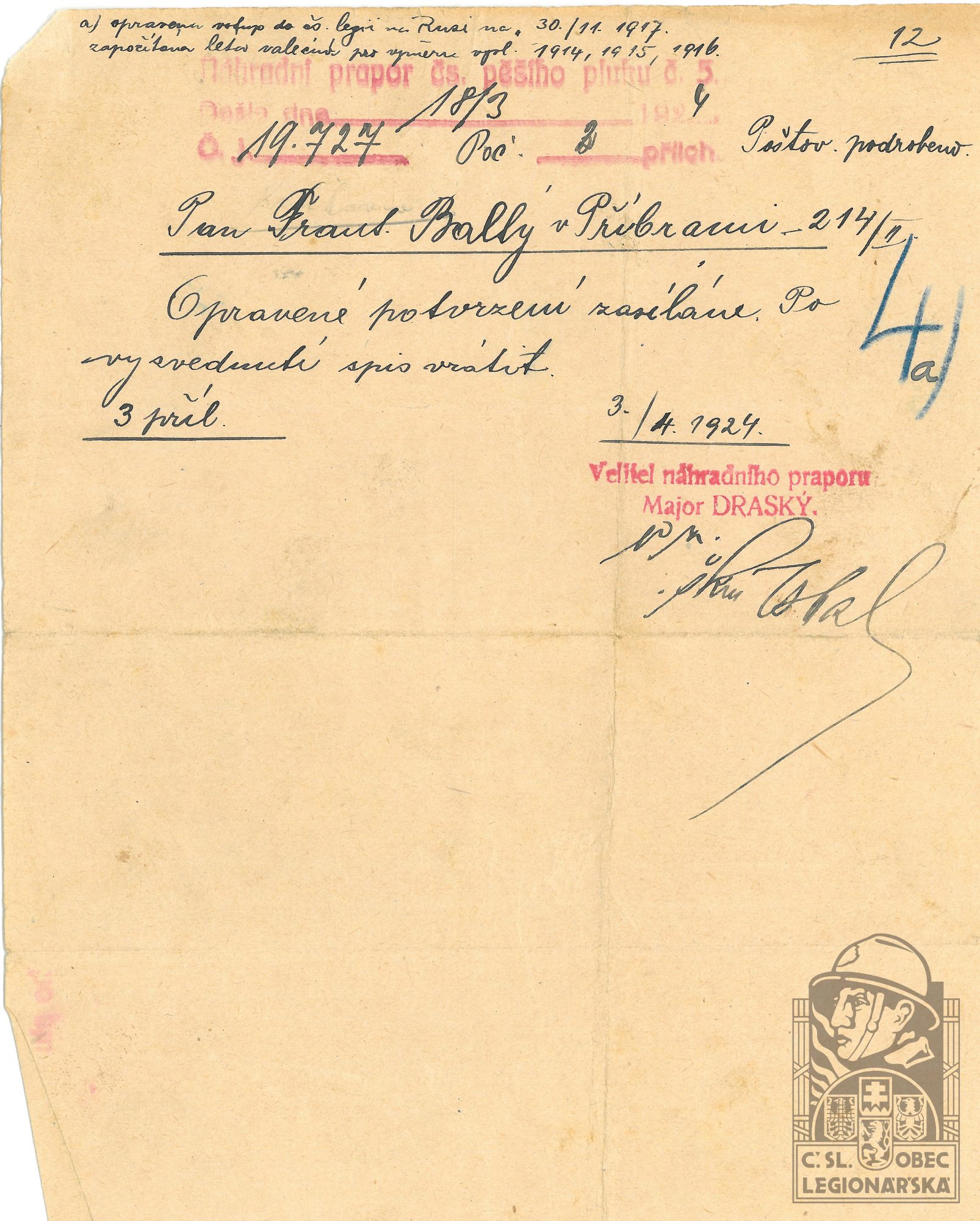 Poznámka:V legiích od 30.11.1917 do 31.12.1919.