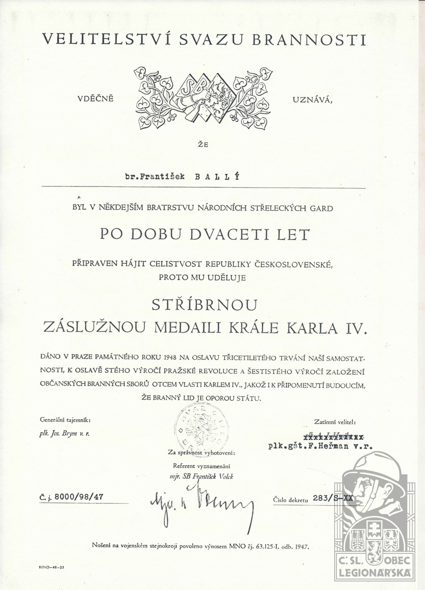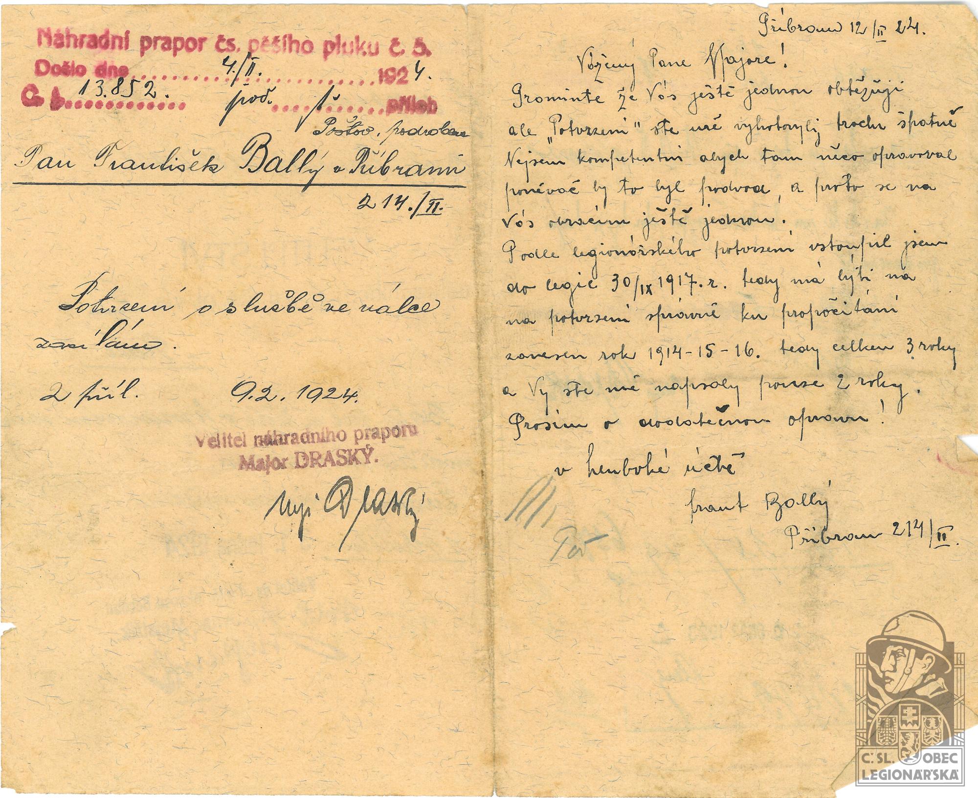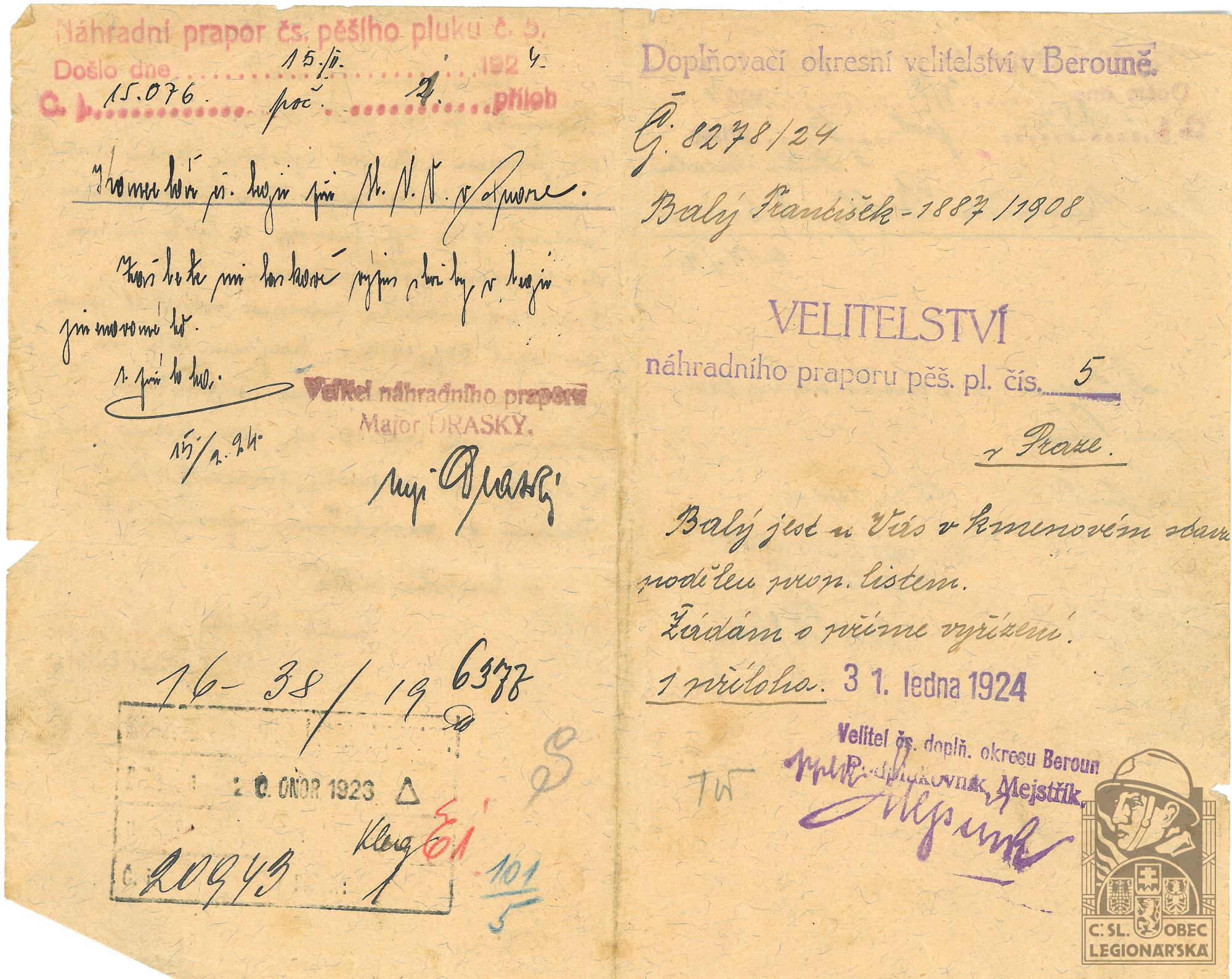 dokumenty spojené s osobou legionáře