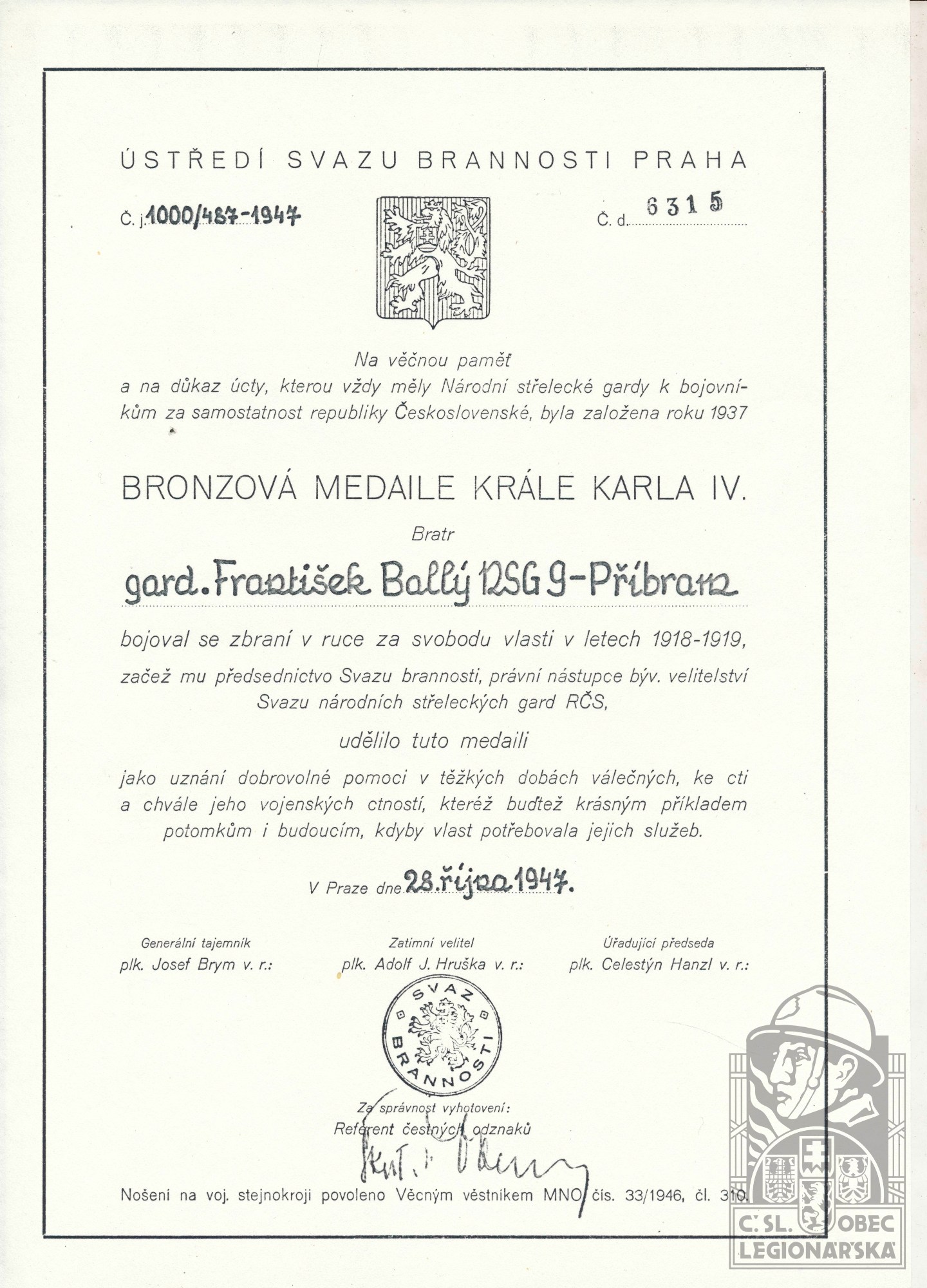 Databázi spravuje Československá obec legionářská