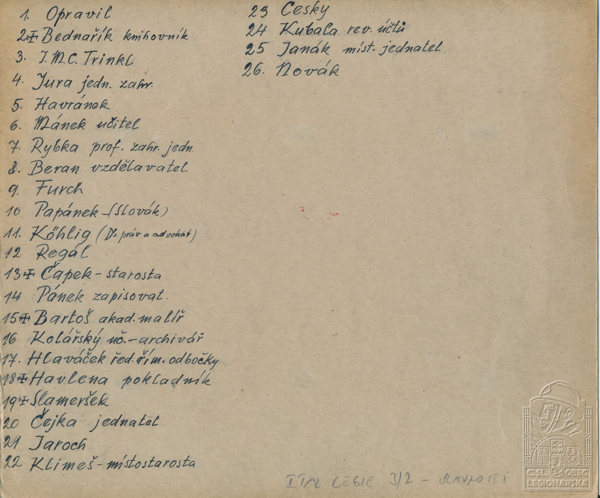Zdroj informací: legionářský poslužný spis osobní karta legionáře