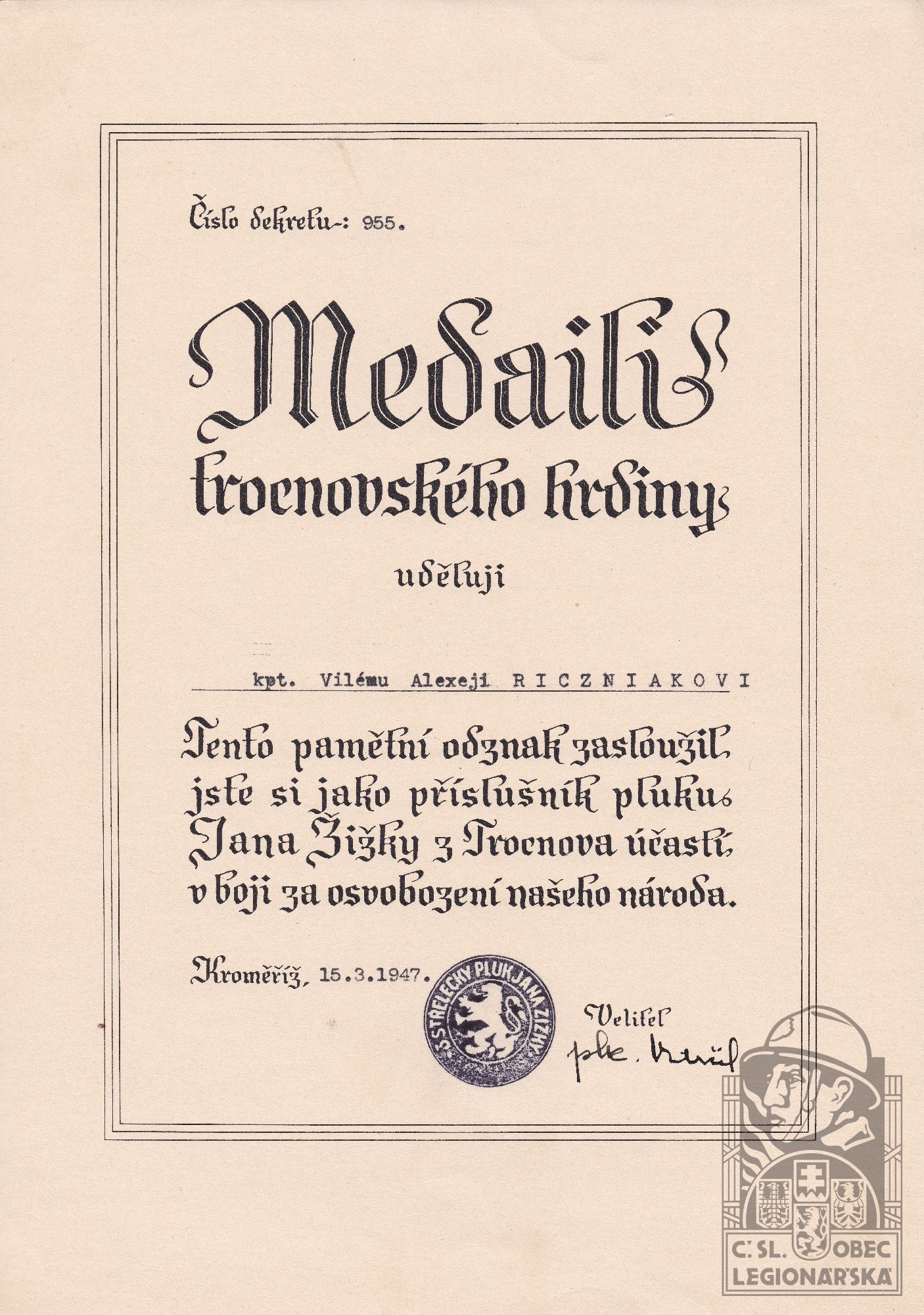 Jednotka v době zařazení:3.stř.pl. ( Čs. legie v Rusku )