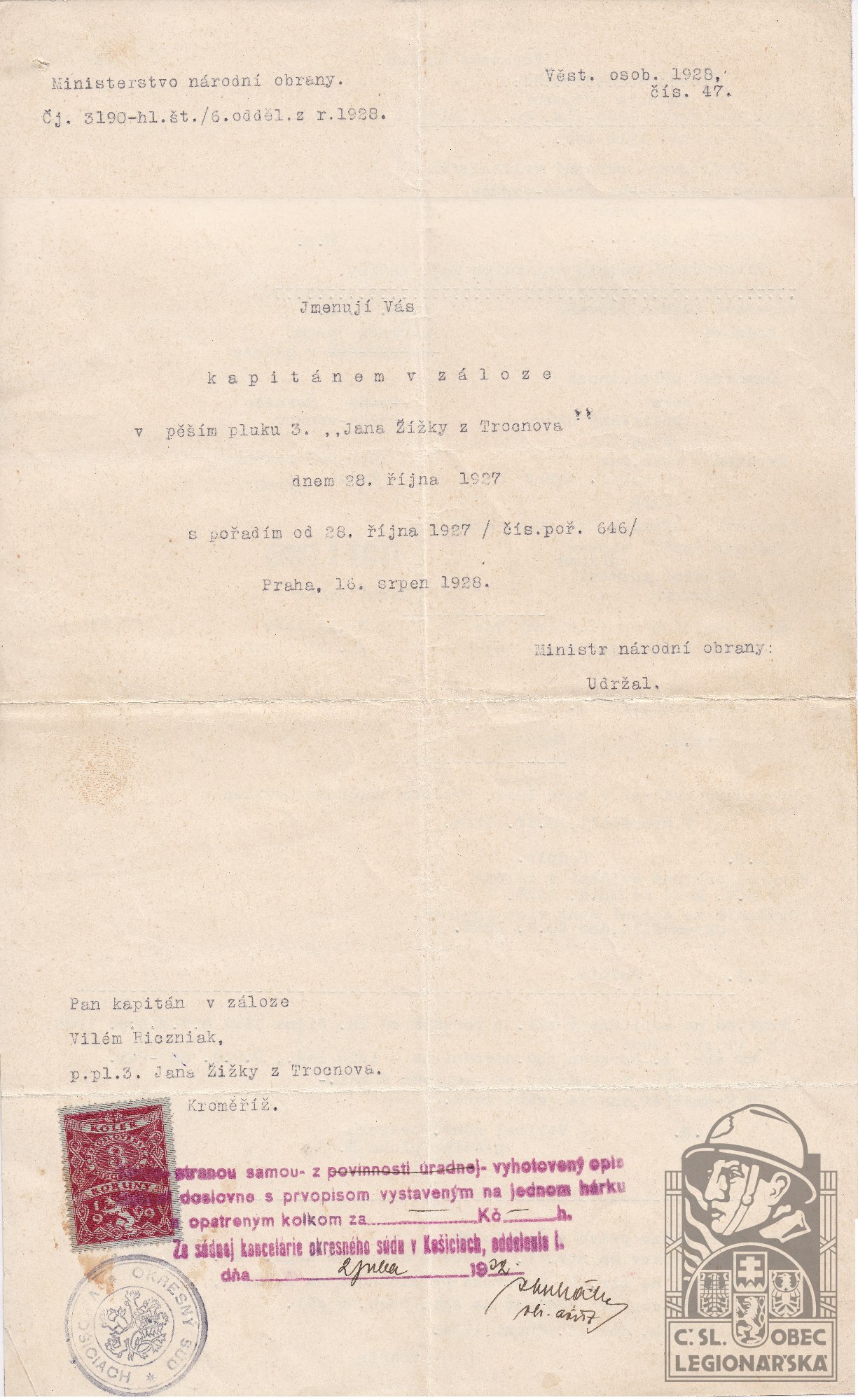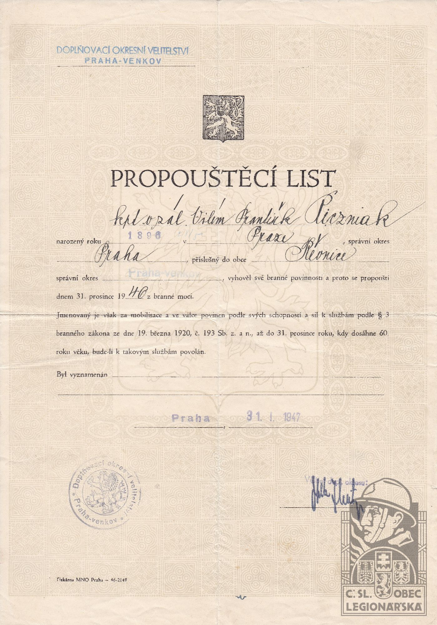 Konec v legiích:13.8.1920 ( Demobilizován )