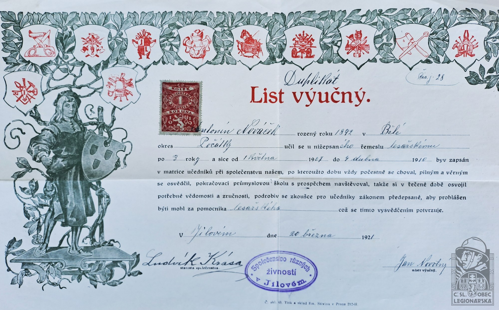 Poznámka:Dle vzpomínek Antonínova vnuka vedla trasa návratu tzv. americkou cestou přes USA a Kanadu - Antonín byl demobilizován 4. listopadu 1920 ve svých osmadvaceti letech. O necelý rok později, v říjnu 1921, se ve Štiříně žení s Boženou Píglovou - po svatbě mají Antonín s Boženou čtyři děti, tři dcery a syna. Syn Antonín se narodí na podzim 1929 už jako pohrobek. Otec totiž zkraje roku umírá, válečné útrapy se silně podepsaly na jeho zdraví. Bylo mu pouhých 37 let. - Antonín s manželkou jsou pohřbeni v rodinném hrobě č. 330 ve Velkých Popovicích