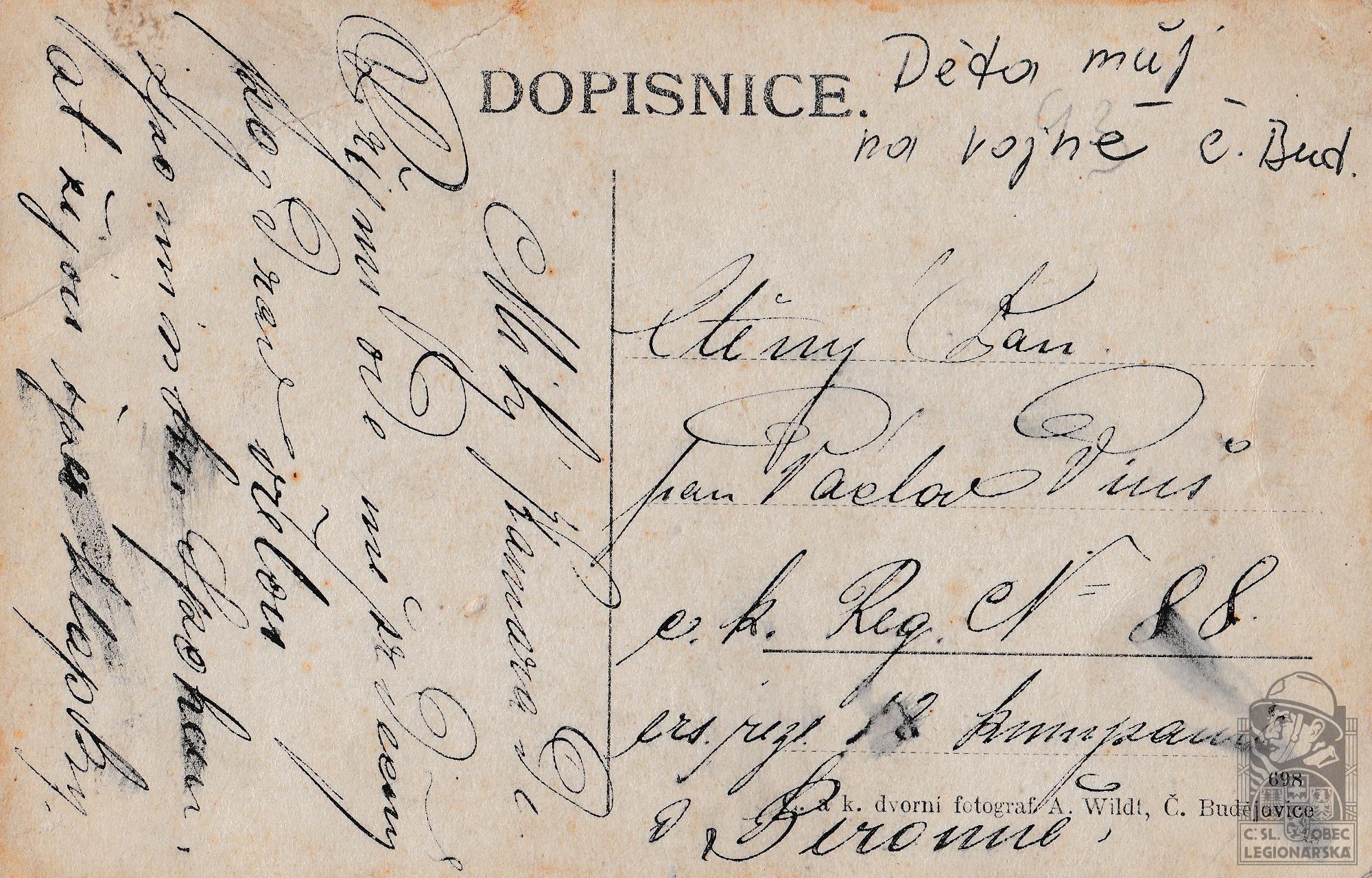 Zdroj informací: legionářský poslužný spis osobní karta legionáře KRŮTA, Václav, CINGEROVÁ, Jana, HOROVÁ, Jitka, NOVÁKOVÁ, Monika, VEVERKOVÁ, Irena. Českoslovenští legionáři. Okres Kladno. Kladno: OkÚ, SOkA, 2002.