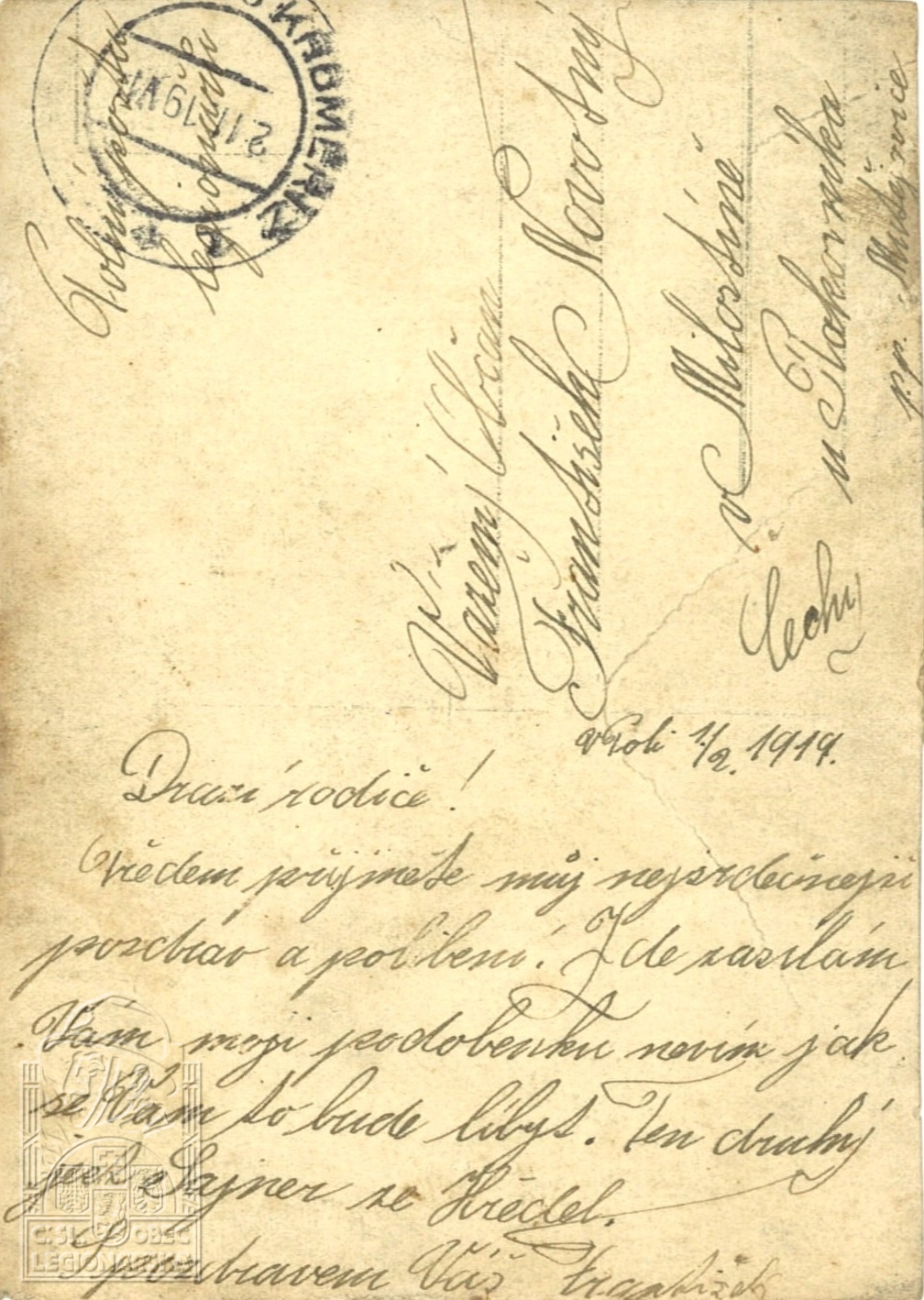 Jednotka v době zařazení:35.p.pl. ( Čs. legie v Itálii )