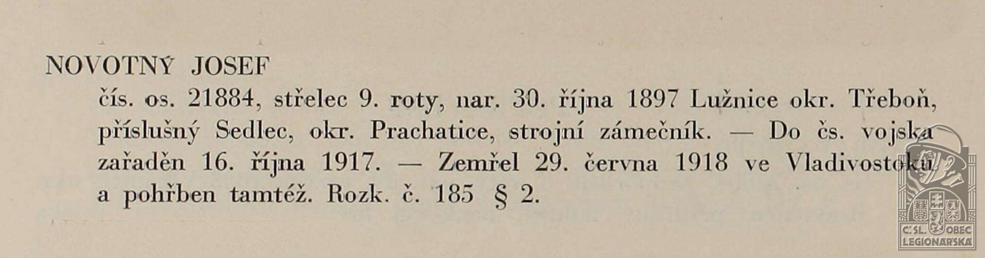 Jednotka v době zařazení:5.stř.pl. ( Čs. legie v Rusku )