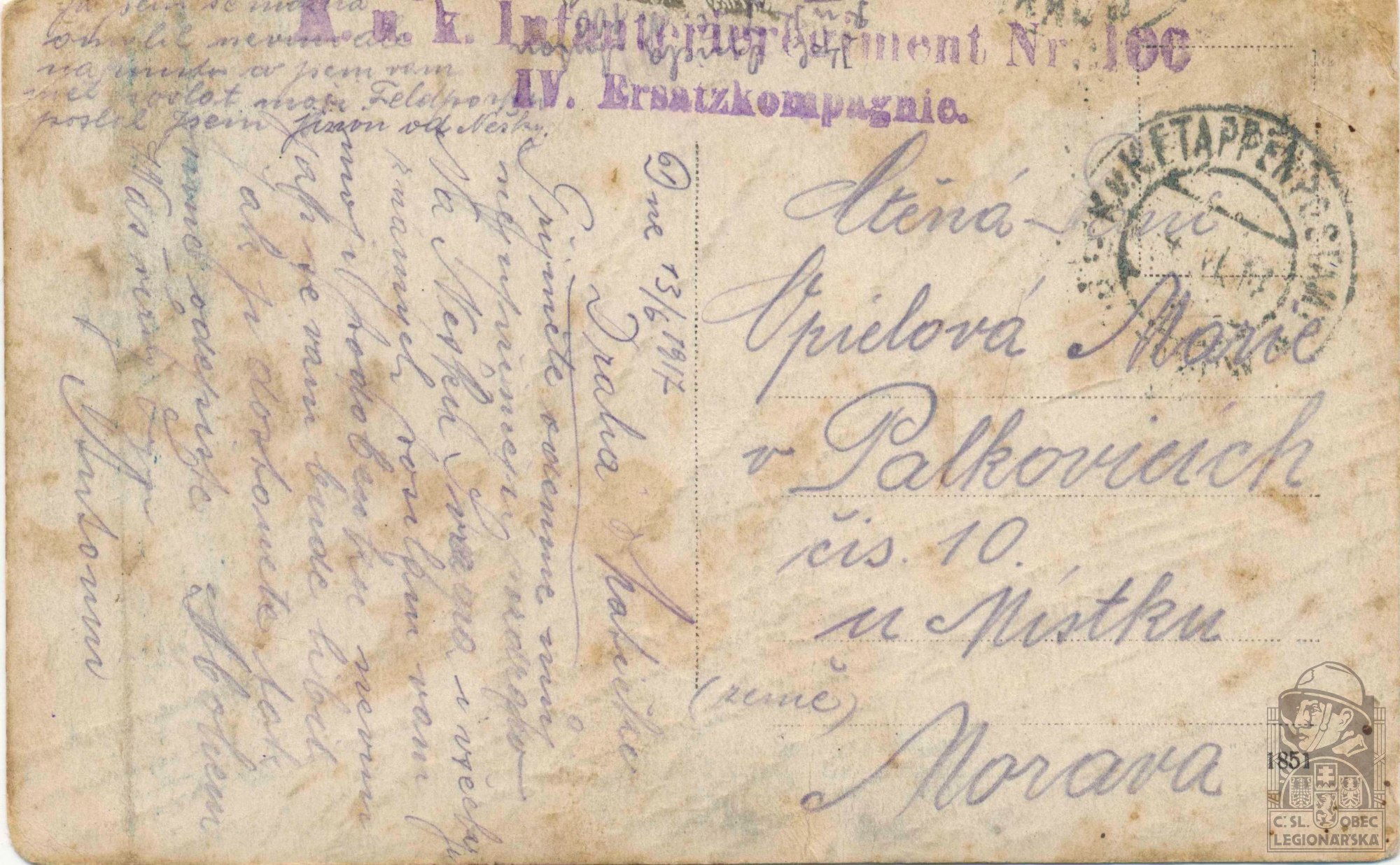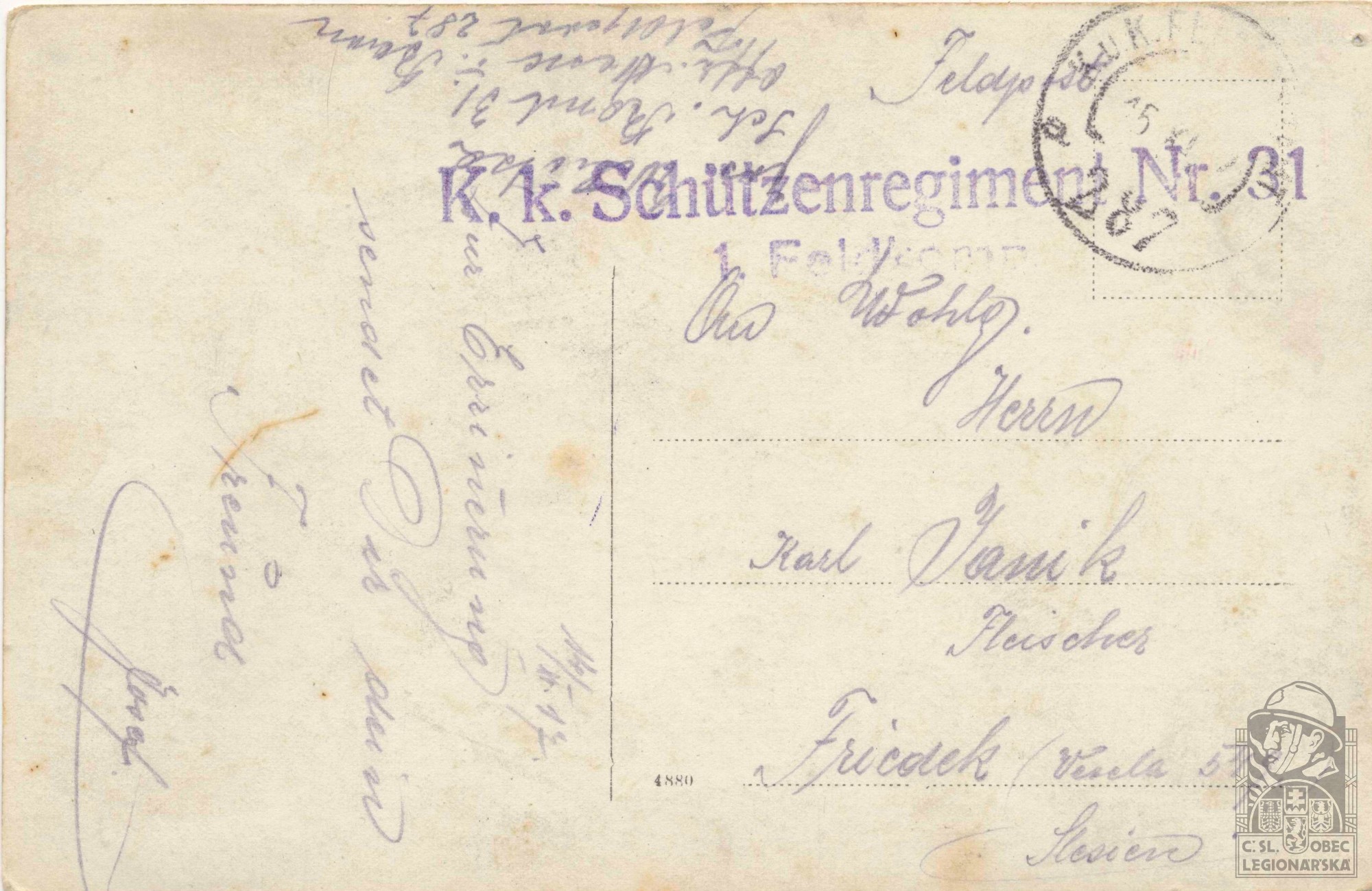 Jednotka v době zařazení:35.p.pl. ( Čs. legie v Itálii )