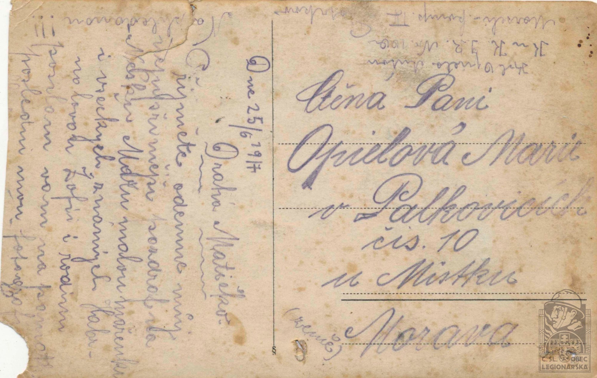 Zdroj informací: legionářský poslužný spis osobní karta legionáře